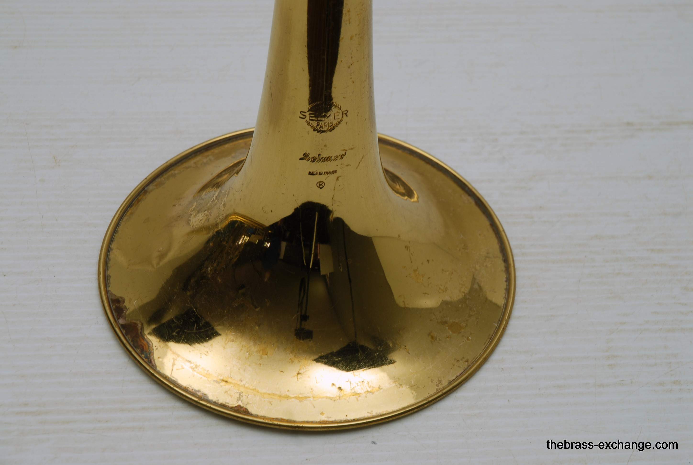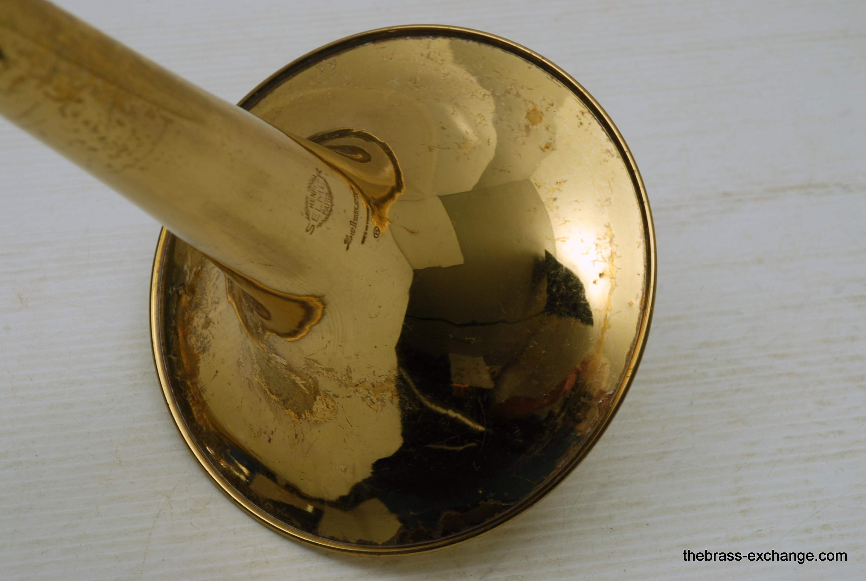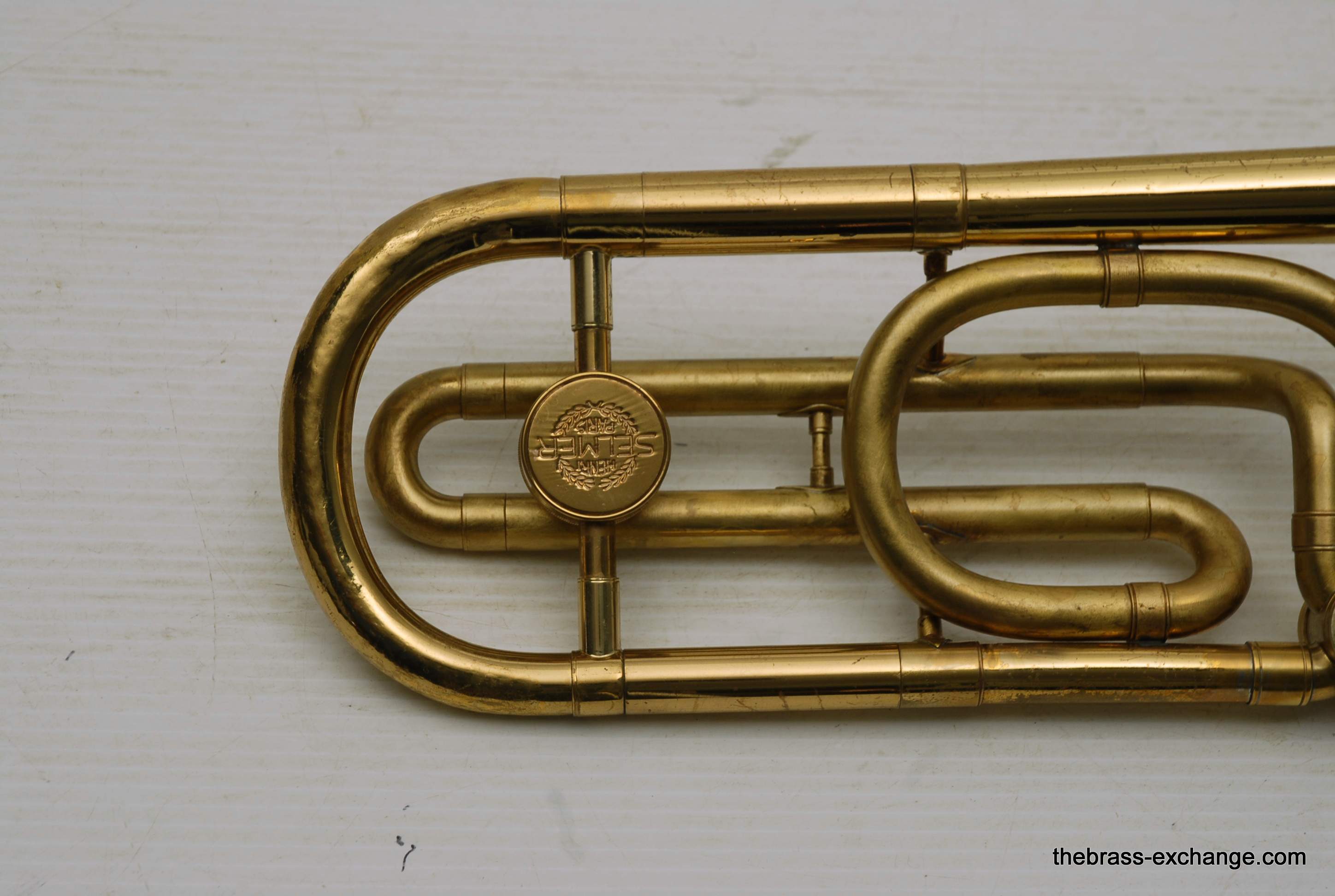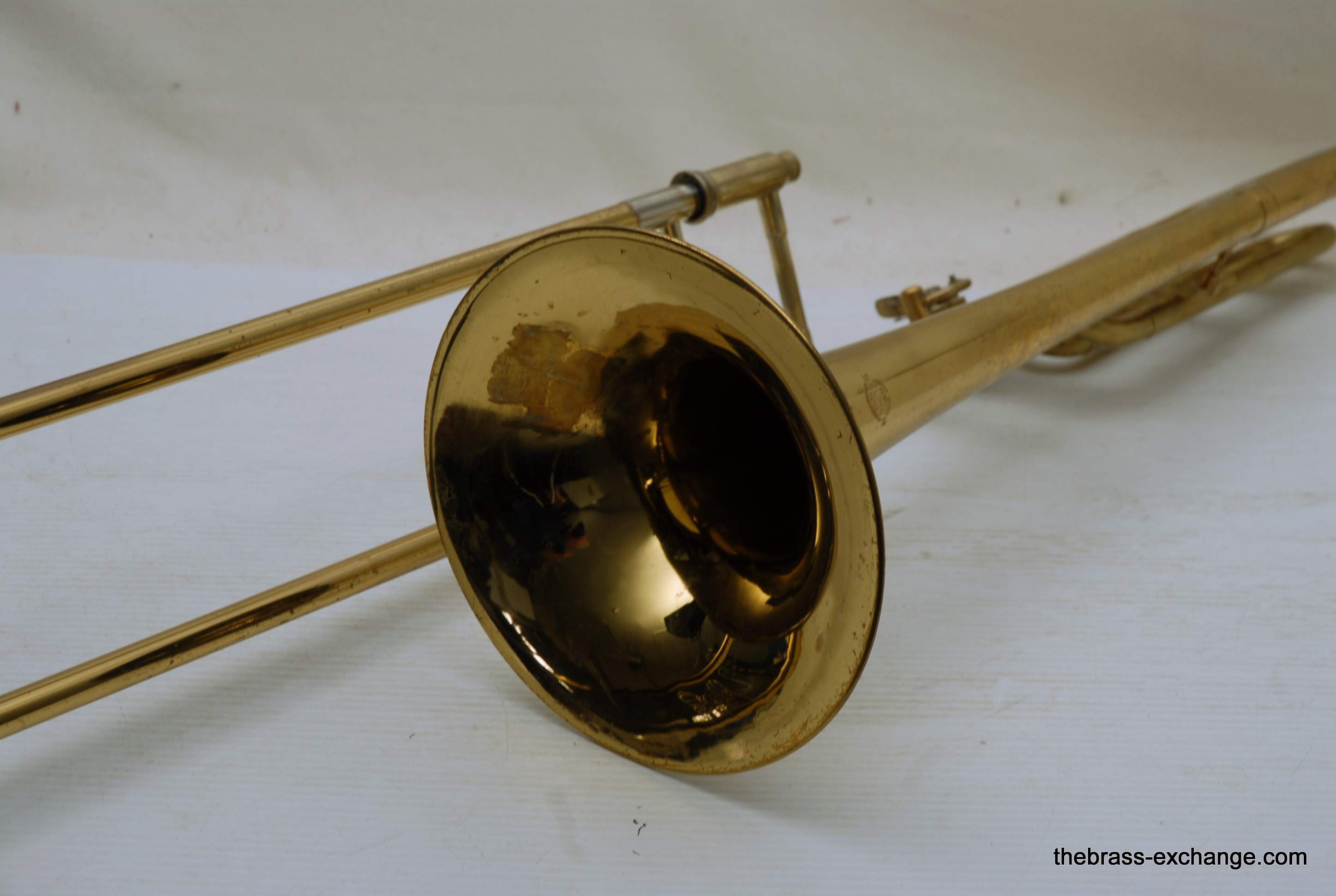 Selmer Largo Large Bore Tenor Trombone. Paris France make 1960's model with 8.5" Yellow Brass Bell, Takes large shank tenor mouthpiece. Bore size is similar to Bach/Conn .547. Has wide slide similar to Bach 42. This is a very nice playing professional level tenor. Is all original parts and lacquer. Has had full shop service including chemical bath and once over. No issues with slide or valve section. Is ready to play. Would be an ideal tenor for anyone looking for a nice vintage high quality pro level horn, plays fantastic and very well made, has decades of useful life left in it. Comes with a new Marco Magi Case. In-stock for immediate delivery.
