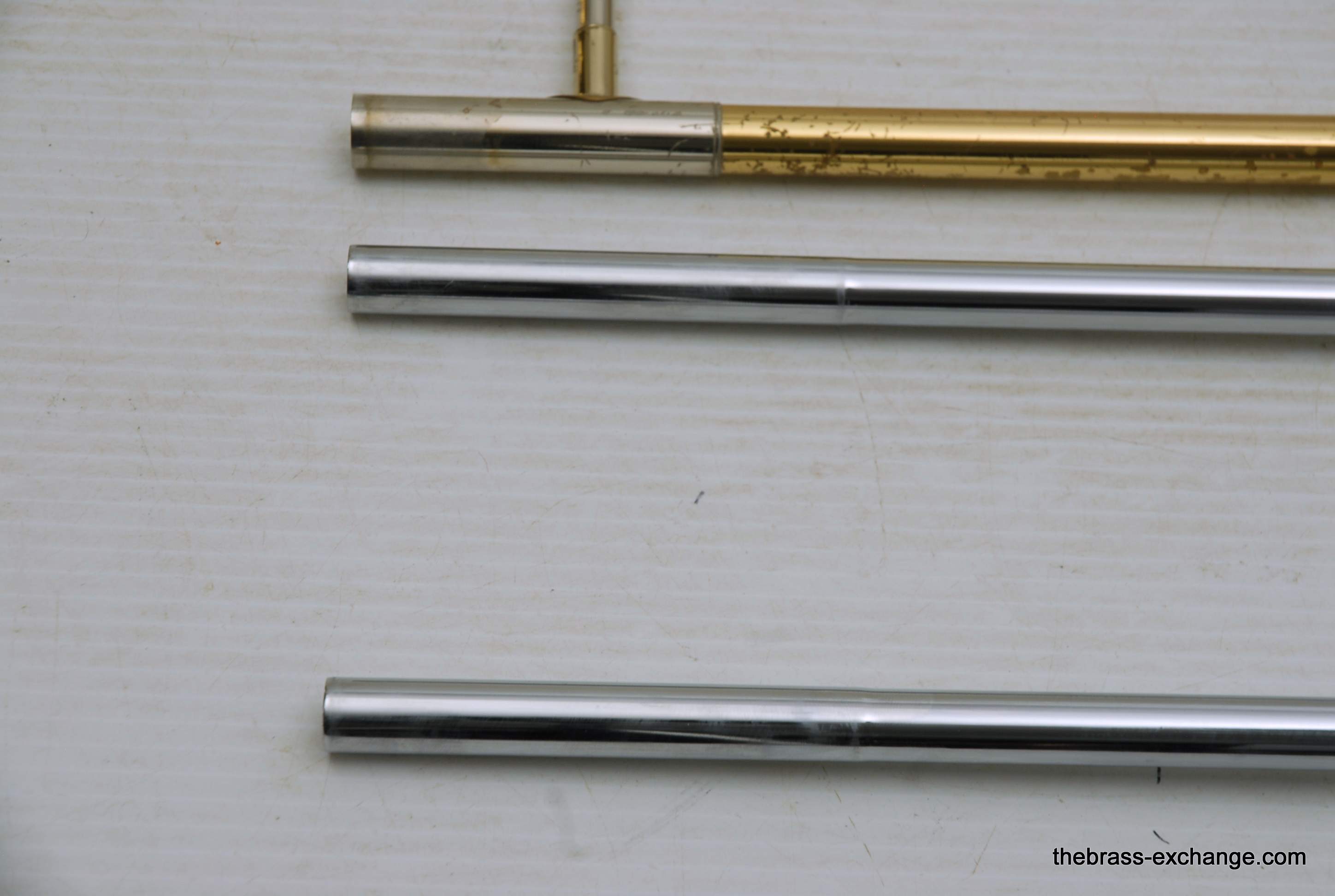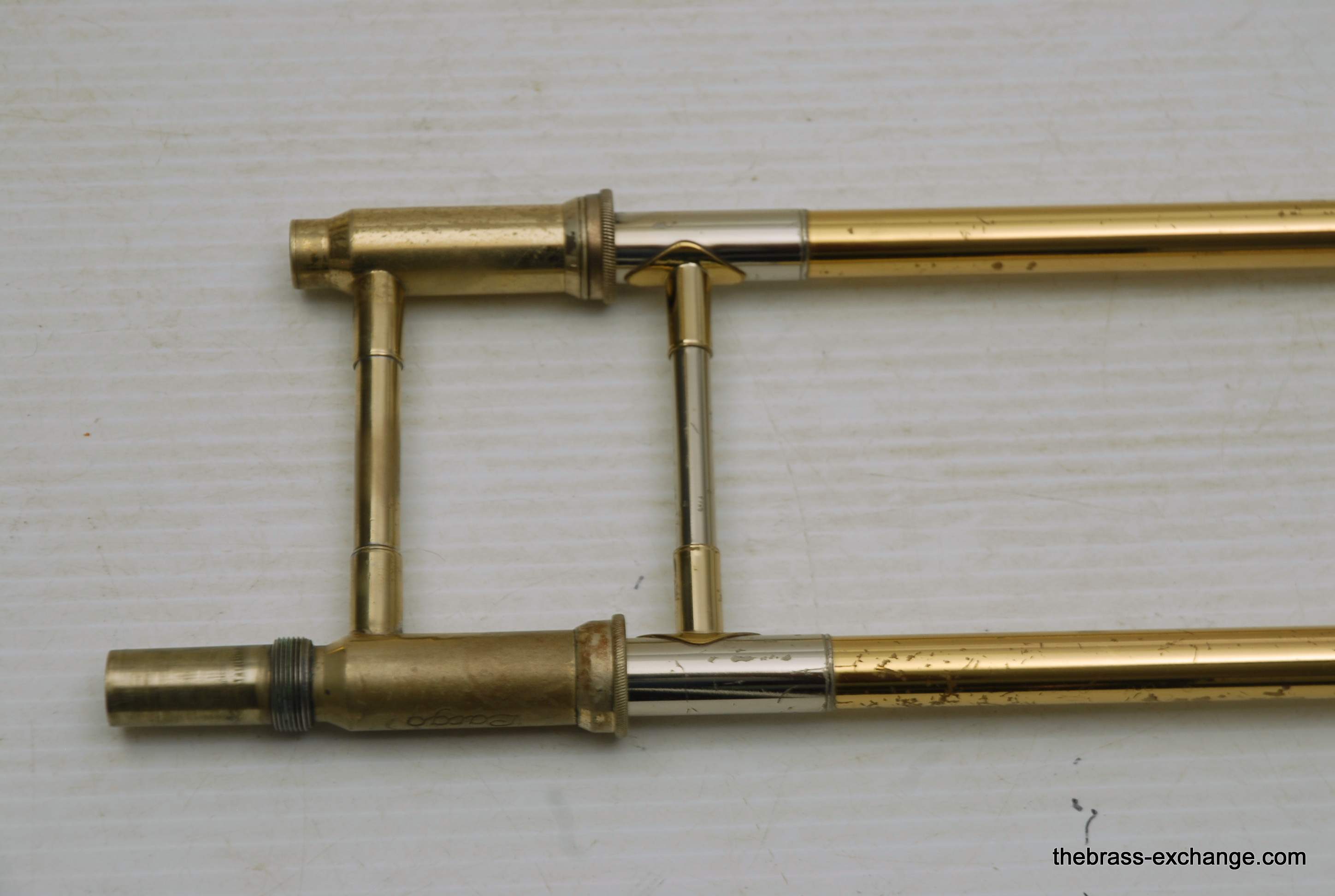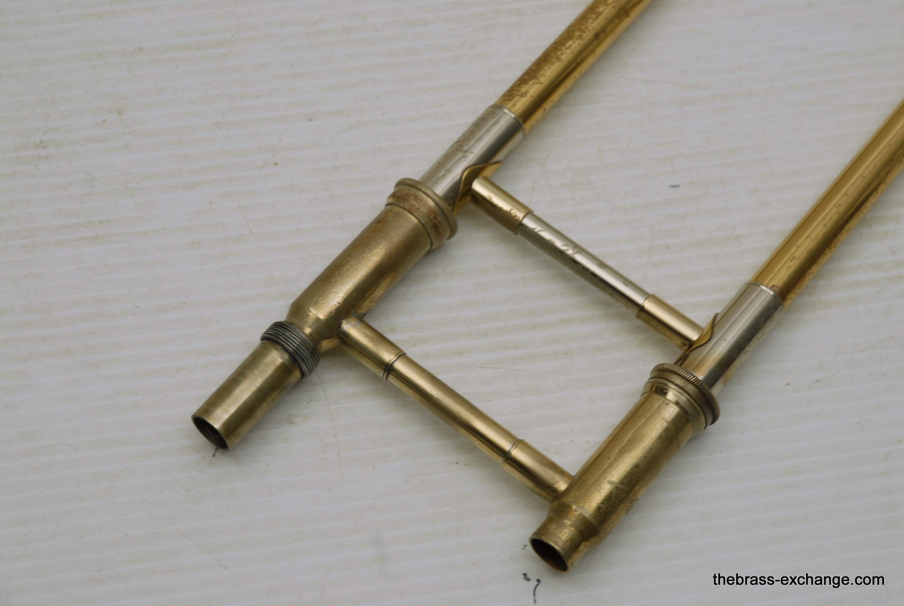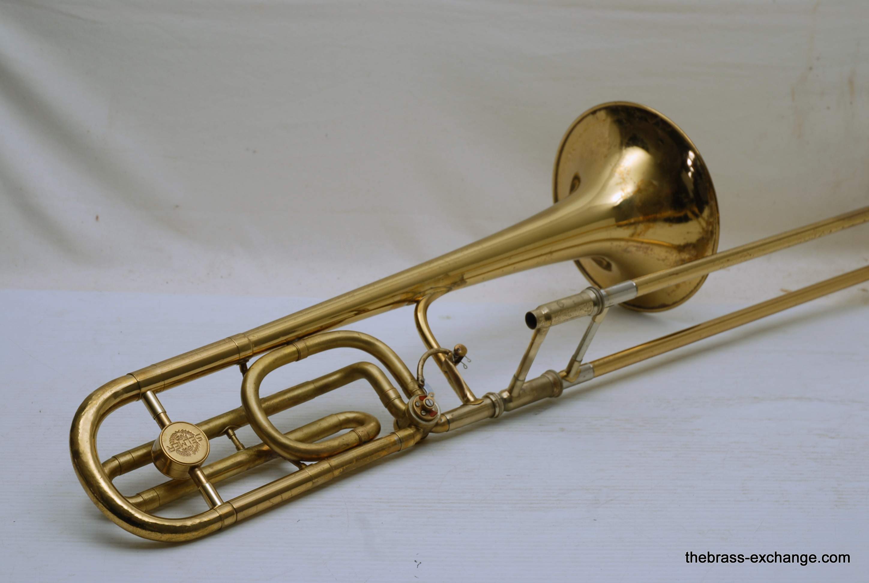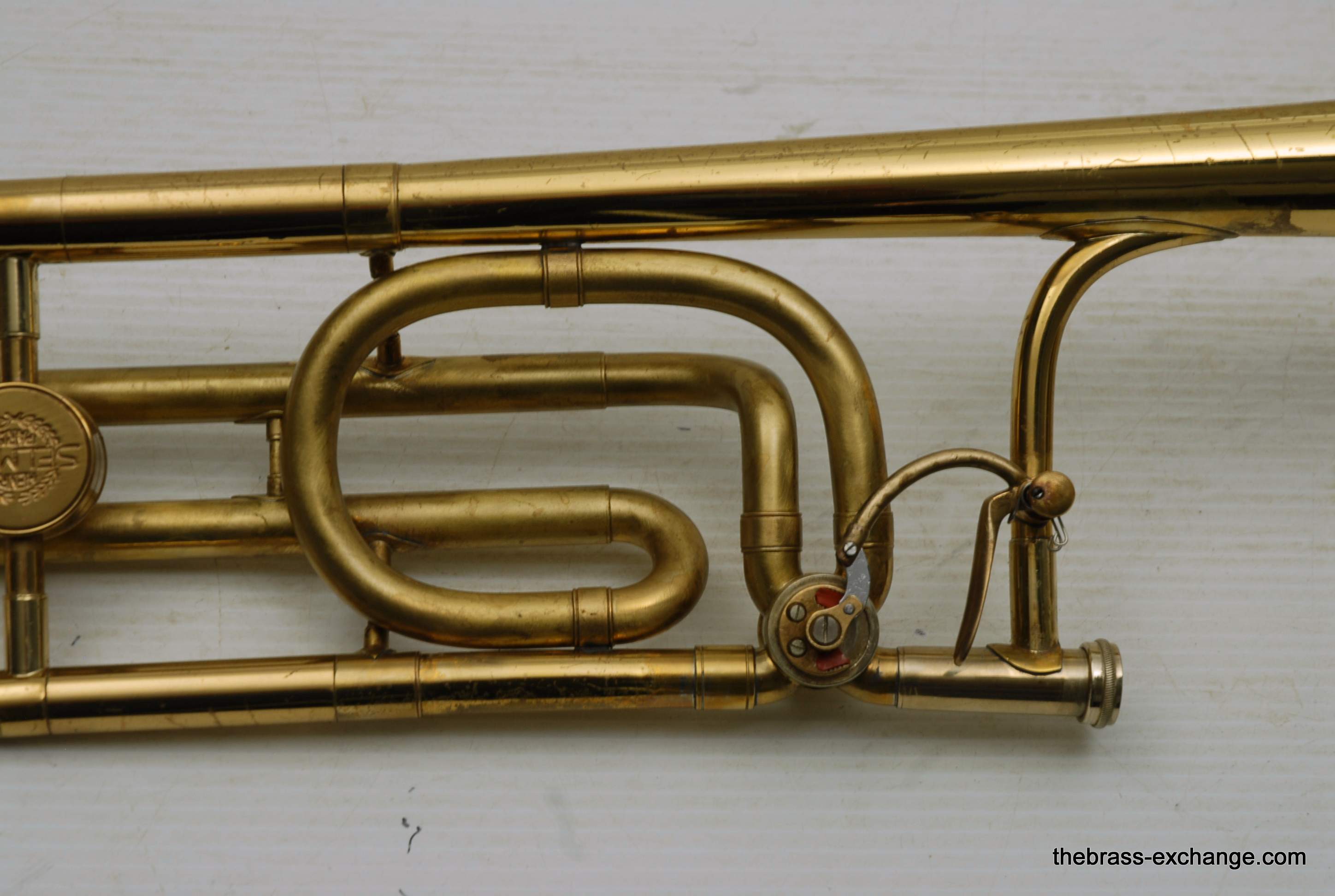 Selmer Largo Large Bore Tenor Trombone. Paris France make 1960's model with 8.5" Yellow Brass Bell, Takes large shank tenor mouthpiece. Bore size is similar to Bach/Conn .547. Has wide slide similar to Bach 42. This is a very nice playing professional level tenor. Is all original parts and lacquer. Has had full shop service including chemical bath and once over. No issues with slide or valve section. Is ready to play. Would be an ideal tenor for anyone looking for a nice vintage high quality pro level horn, plays fantastic and very well made, has decades of useful life left in it. Comes with a new Marco Magi Case. In-stock for immediate delivery.