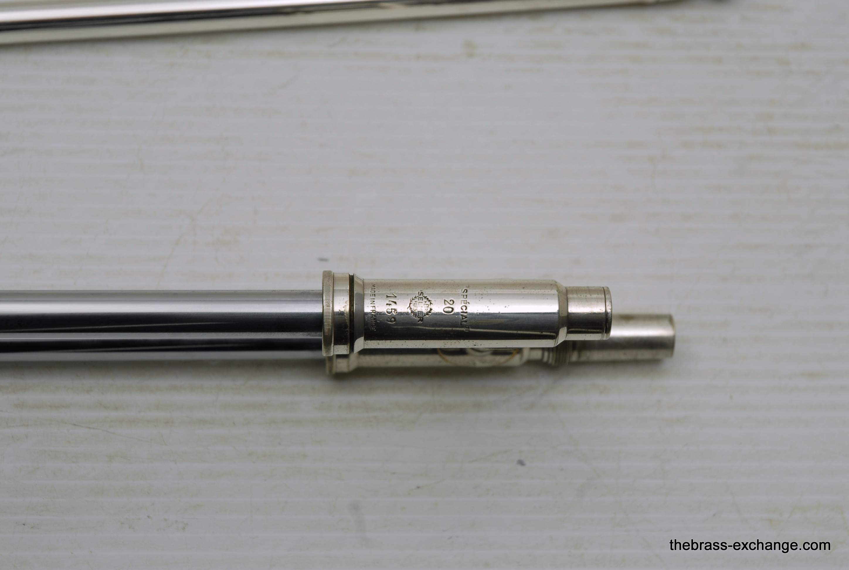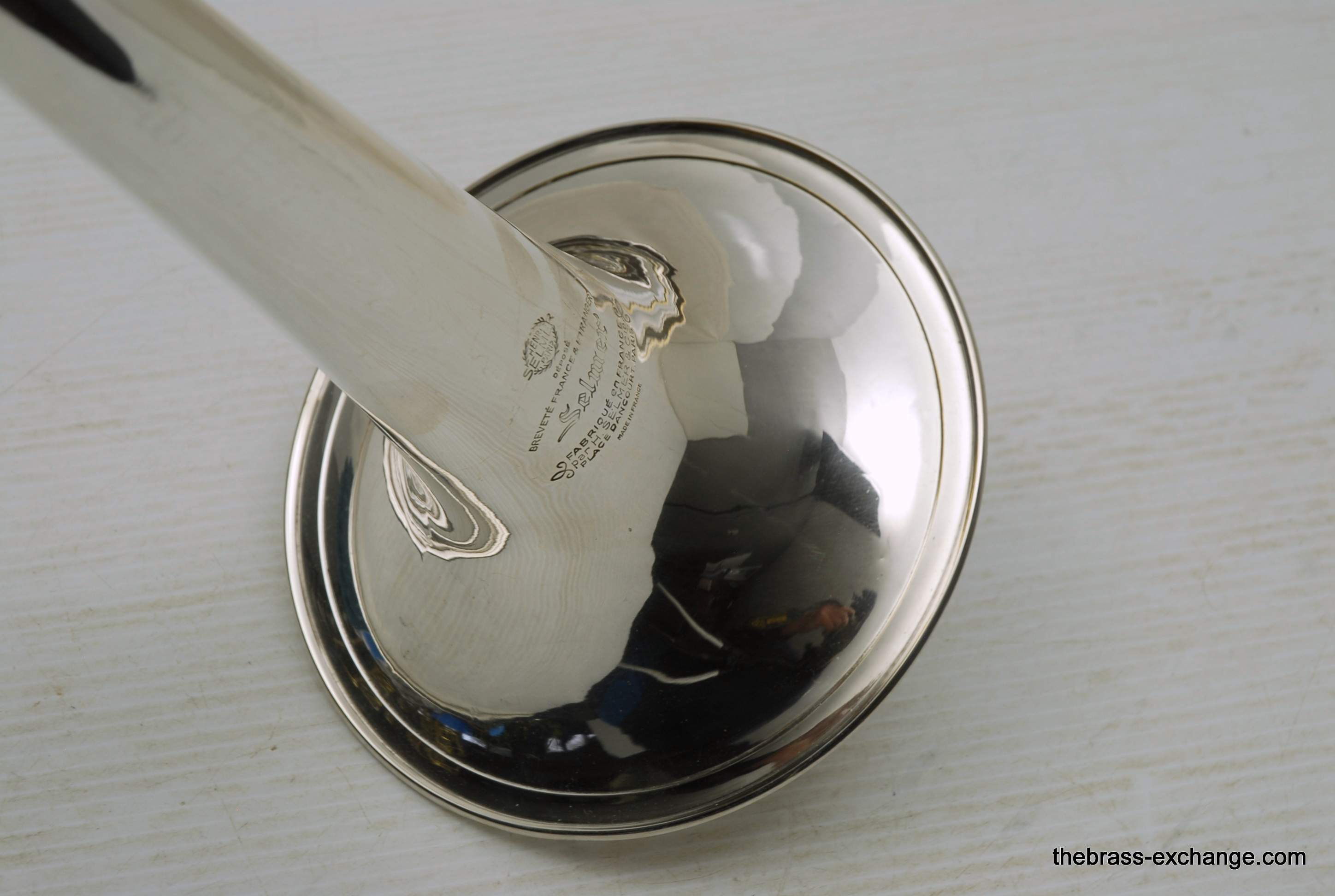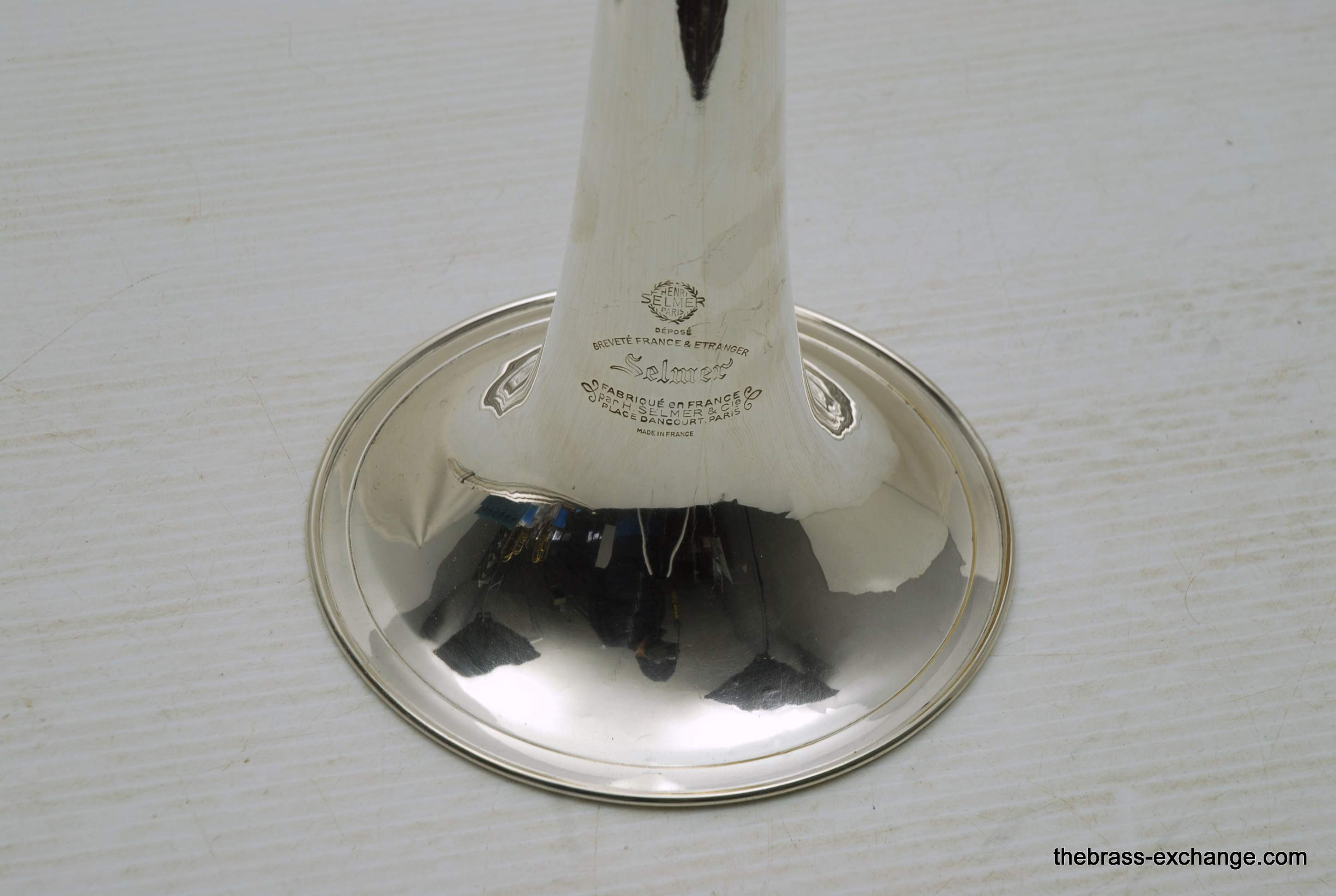 Selmer Special Model 20 Paris France SN 1459. Small bore dual bore model similar in size specs to King 2B. Has 7.25" bell with French Bead. Most likely from the 1950's. Is all original parts and silver plating. Has had full shop service including chemical bath. This is a fantastic lead/solo jazz type horn. Would be an excellent alternative for anyone looking to depart from the typical 2B type instrument. Case not included.