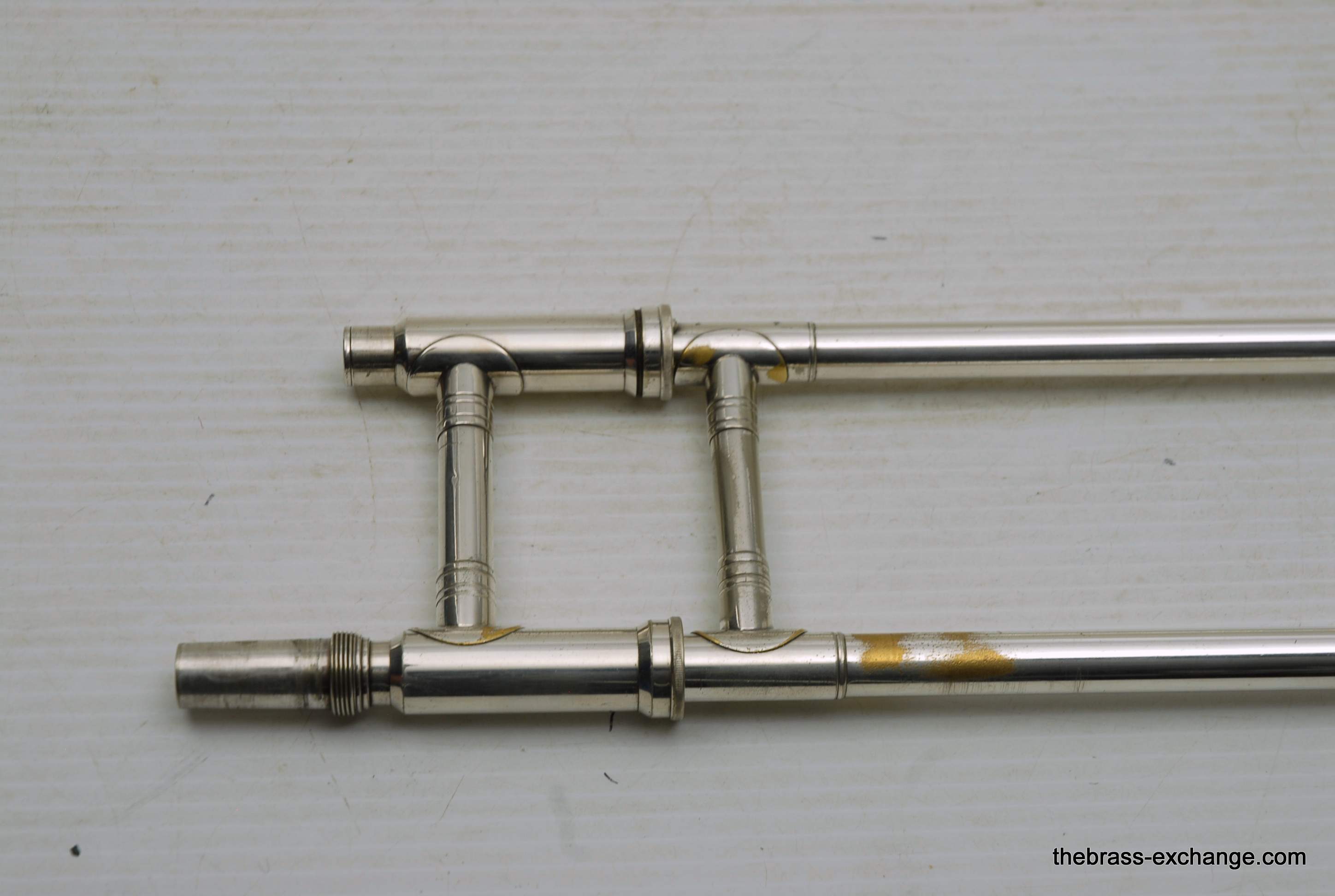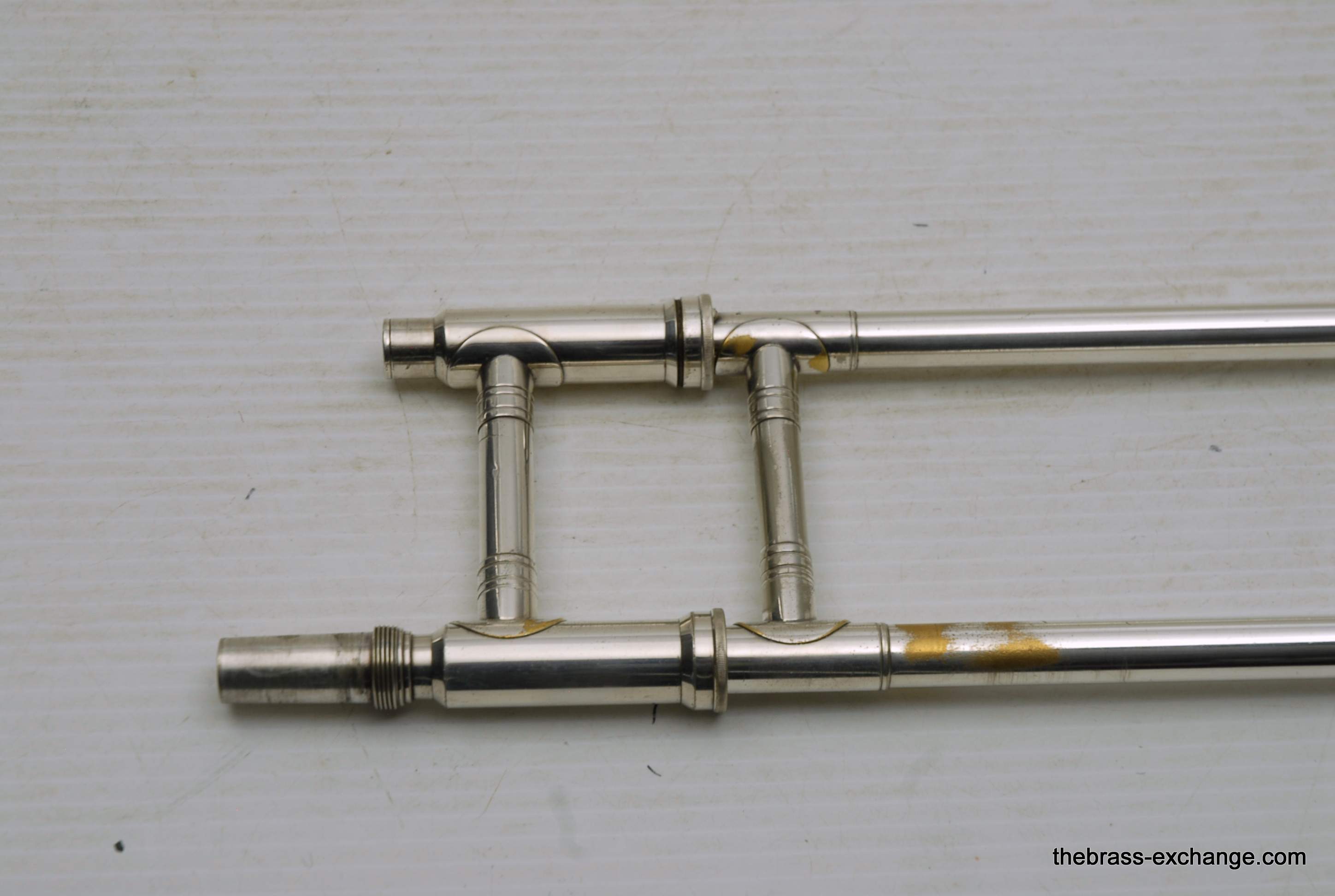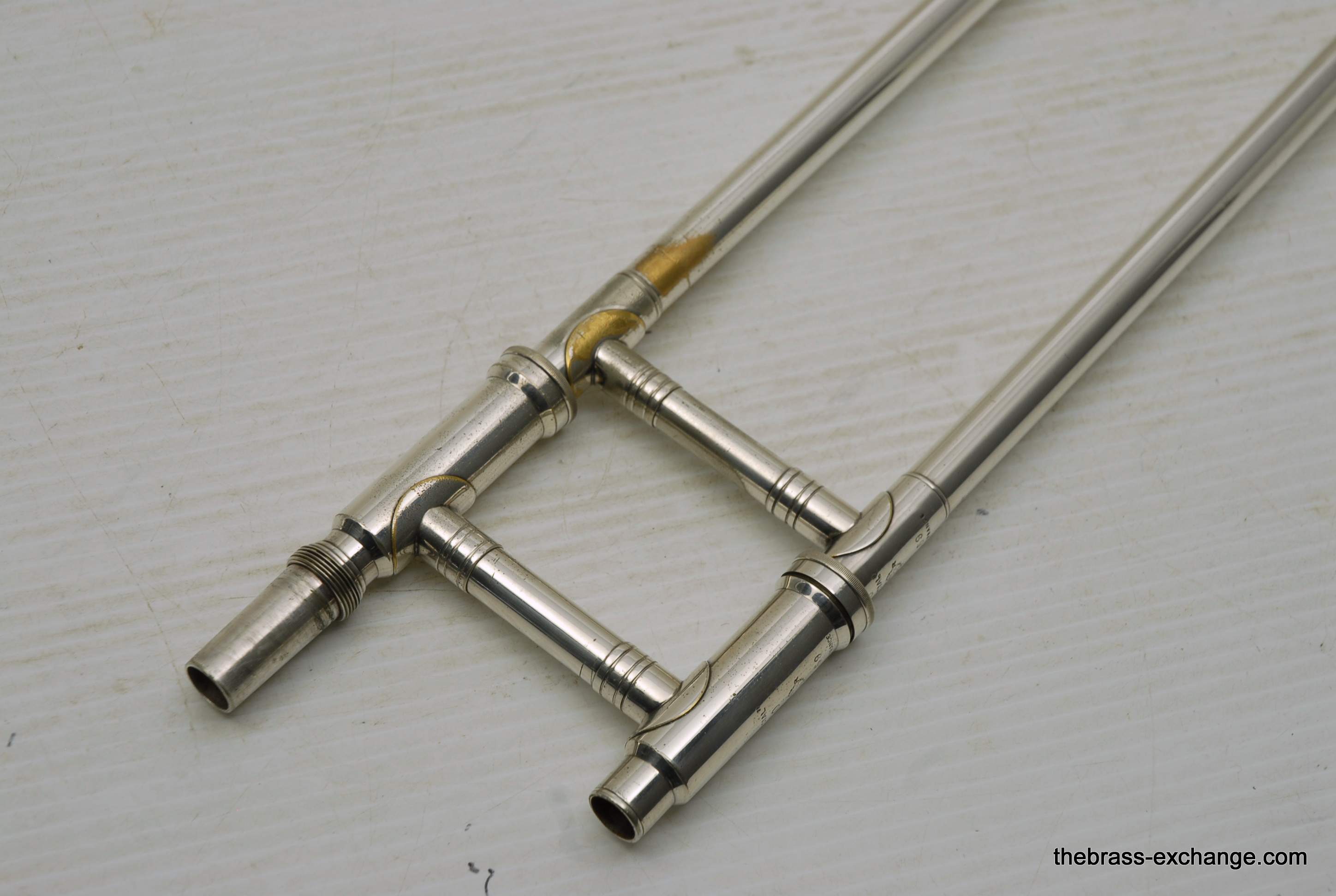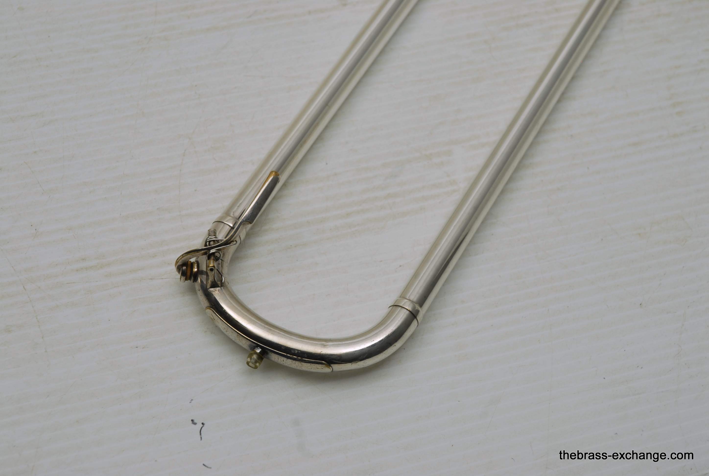 Selmer Special Model 20 Paris France SN 1459. Small bore dual bore model similar in size specs to King 2B. Has 7.25" bell with French Bead. Most likely from the 1950's. Is all original parts and silver plating. Has had full shop service including chemical bath. This is a fantastic lead/solo jazz type horn. Would be an excellent alternative for anyone looking to depart from the typical 2B type instrument. Case not included.