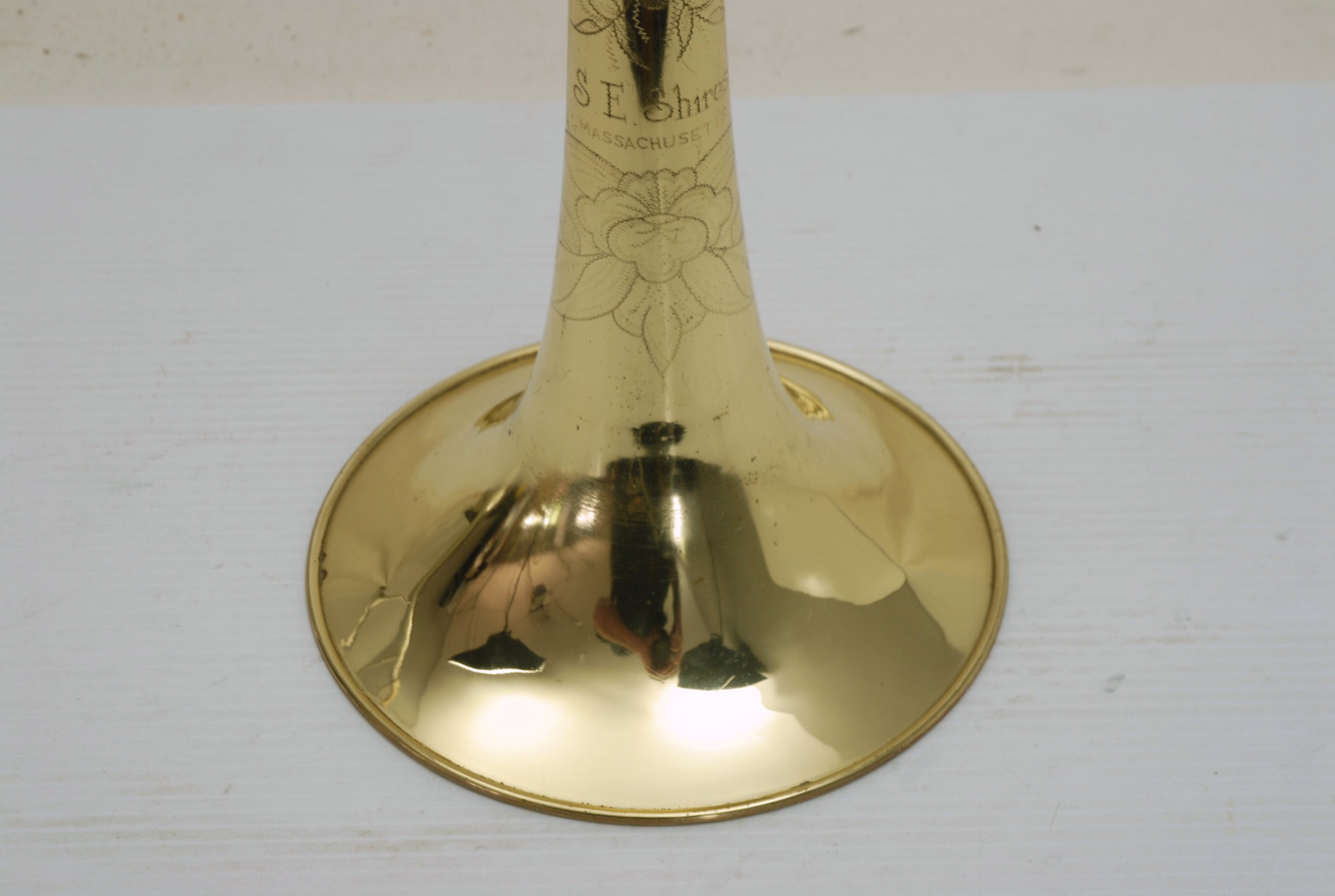 S.E. Shires 1Y Tenor Bell Section. Has 8.5" yellow brass bell, for large bore tenor set-up. Pro-player horn, pre-owned. Has not been apart or seen big repairs. It's a great playing classic Shires make. Has soldered wire rim and plays with lots of center. Considerable lacquer wear, yet still looks attractive.