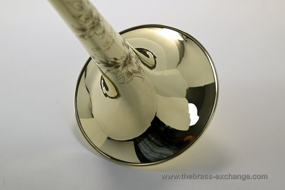 Originally unlacquered with natural oxidation, this bell has now been professionally buffed to a high-polished brass finish here at The Brass Exchange. It remains unlacquered, giving players the open, vibrant feel many prefer, but now with the look of a brand-new bell. Over time, unlacquered bells naturally develop a patina, but many choose to maintain a polished finish for a clean, bright appearance.