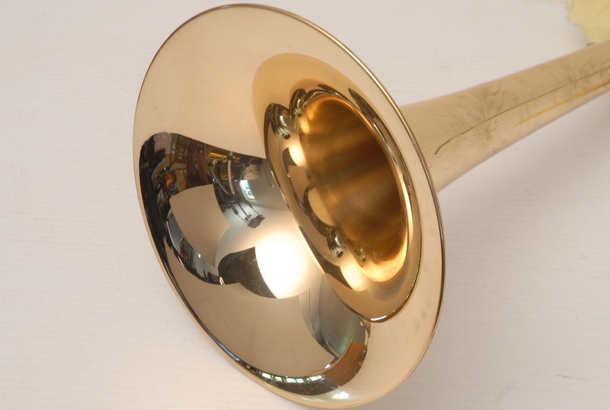 S.E. Shires 2GM bell section for large bore tenor.  Has 8.5" flare, medium weight, unsoldered rim.  Has been used barely, in excellent condition, no dents or dings, no difference between this bell and one that is factory new.