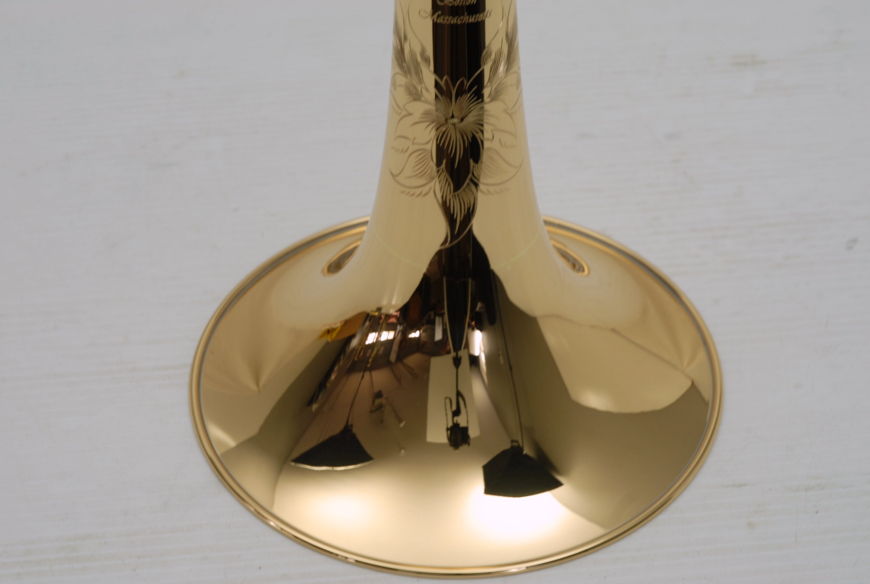S.E. Shires Gold Brass Bell Section Model 7GLW.Β Gorgeous 7GLW for large bore tenor.Β Made in 2021, has been a personal demo bell, has not been out of the shop, only used playing here, teaching lessons. Plays with lots of center, color, and most important super efficient and easy blowing. Has 8.5" flare with soldered wire rim.Β Β Gold brass players love this model, pairs well with any Shires valve section, standard taper tuning slide.Β
