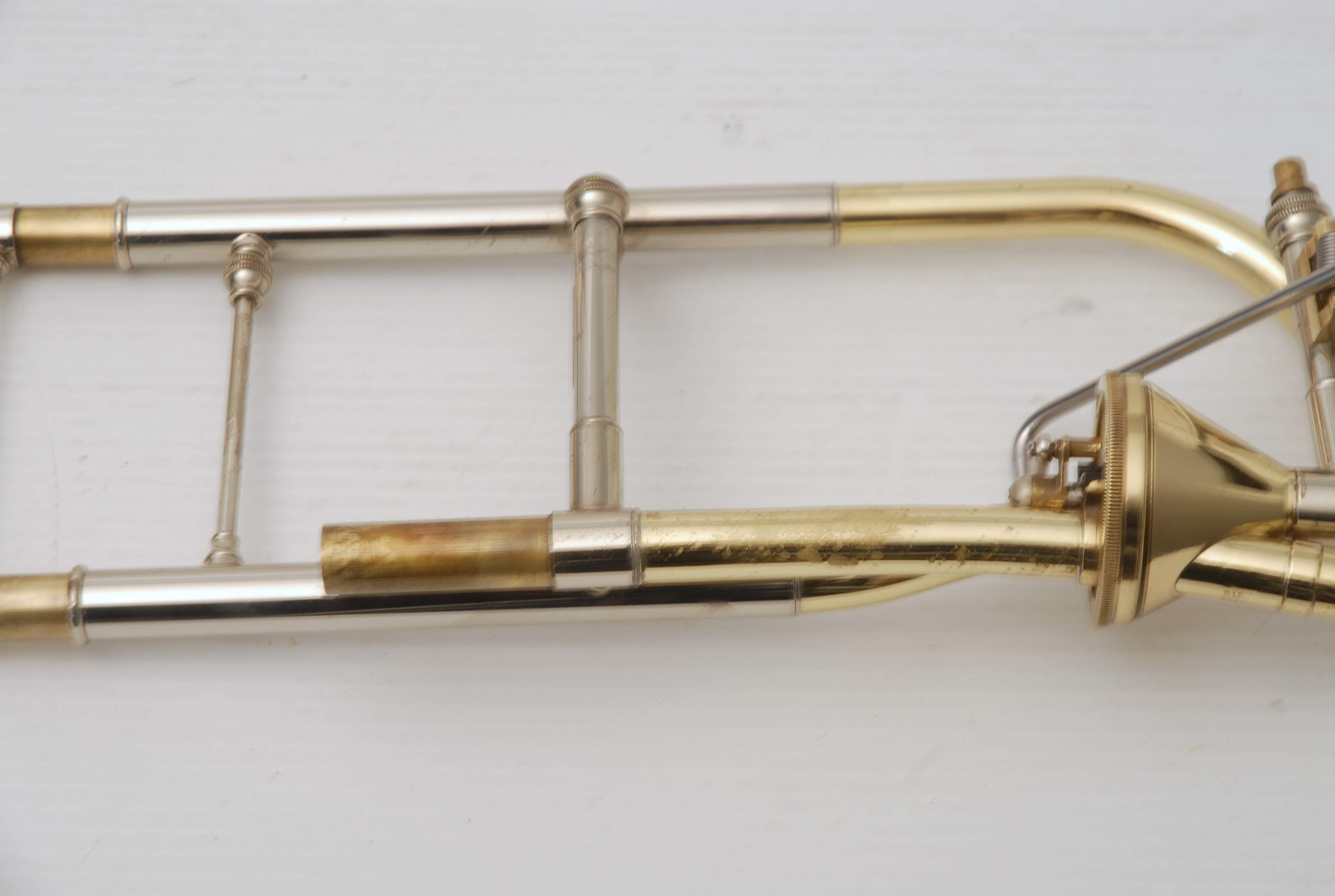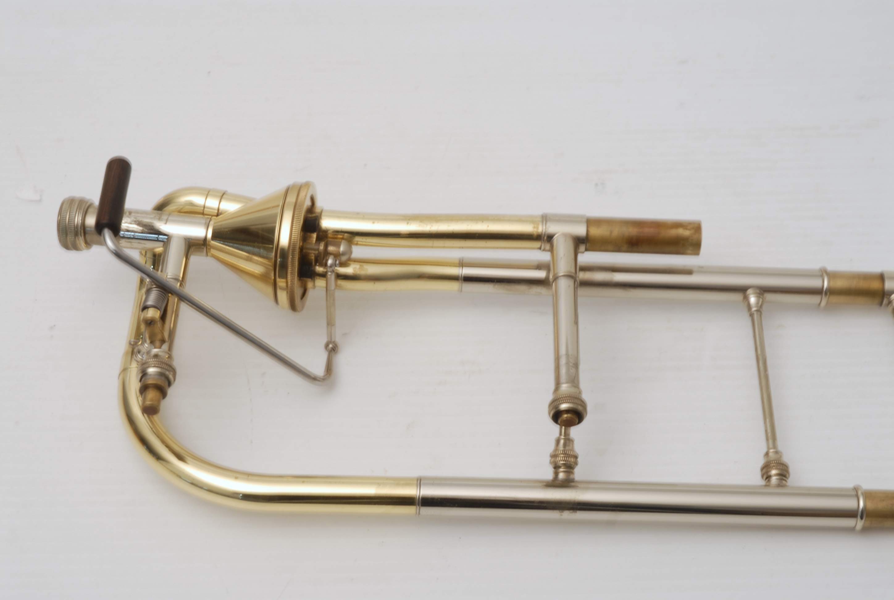 S.E. Shires Axial flow valve section for large bore tenor, used. Is in perfect playing condition. Just serviced. Inside casing polished, rotor is in perfect condition. Linkage is tight and action is fast. Some lacquer wear on neck. No previous damage or repair. Is compatible with all S.E. Shires custom components, made in Hopedale, MA. Shires factory. In stock Immediate delivery available.