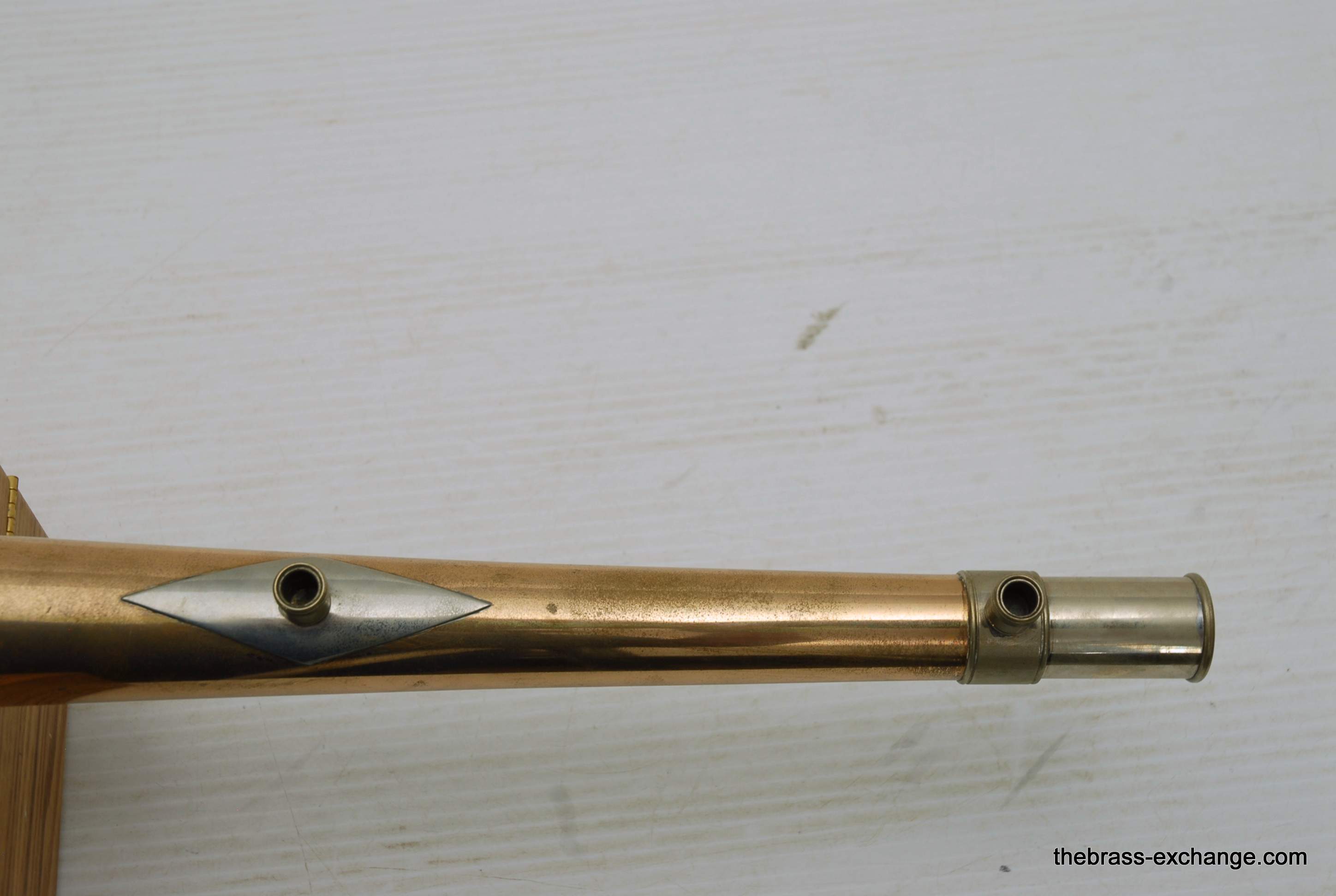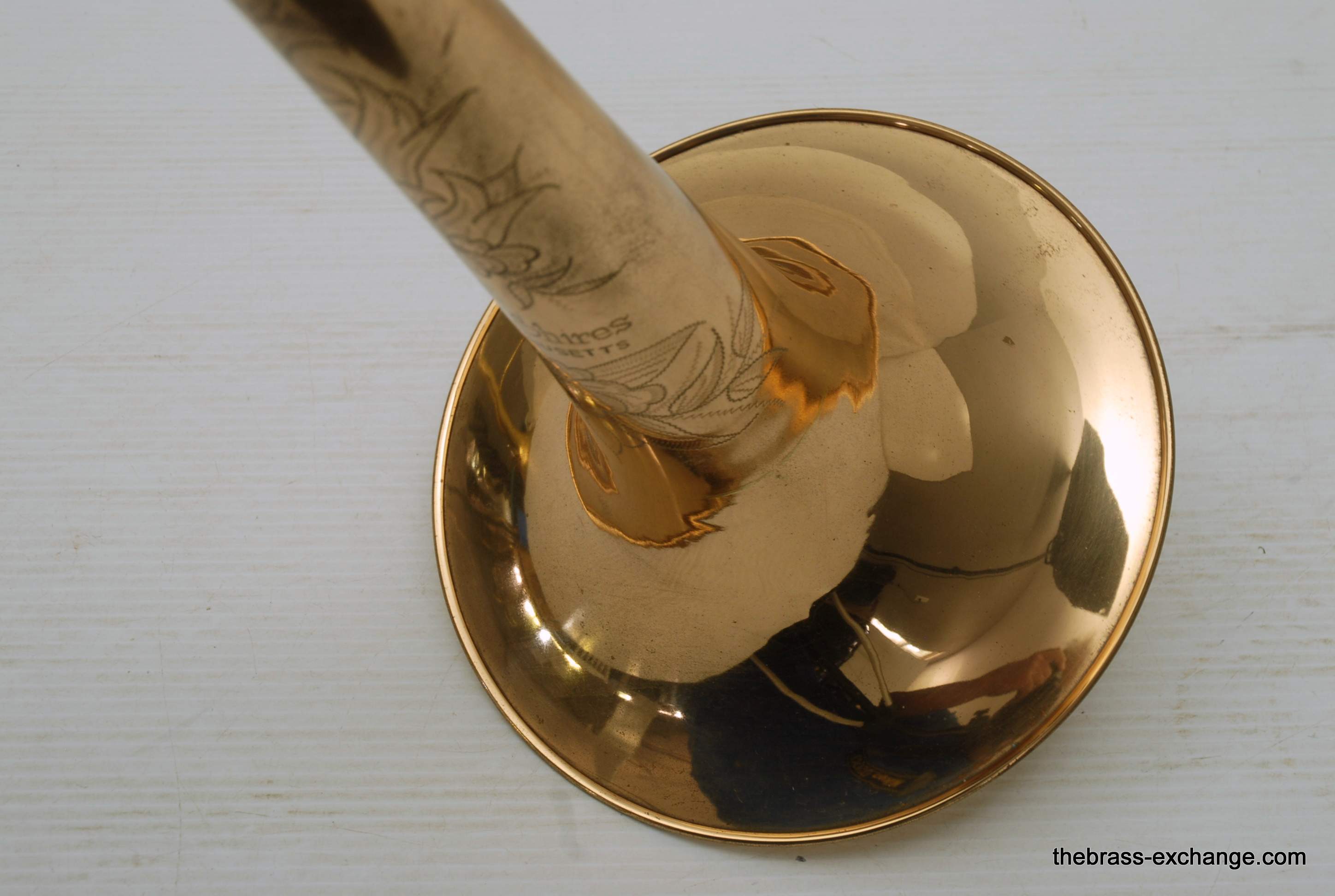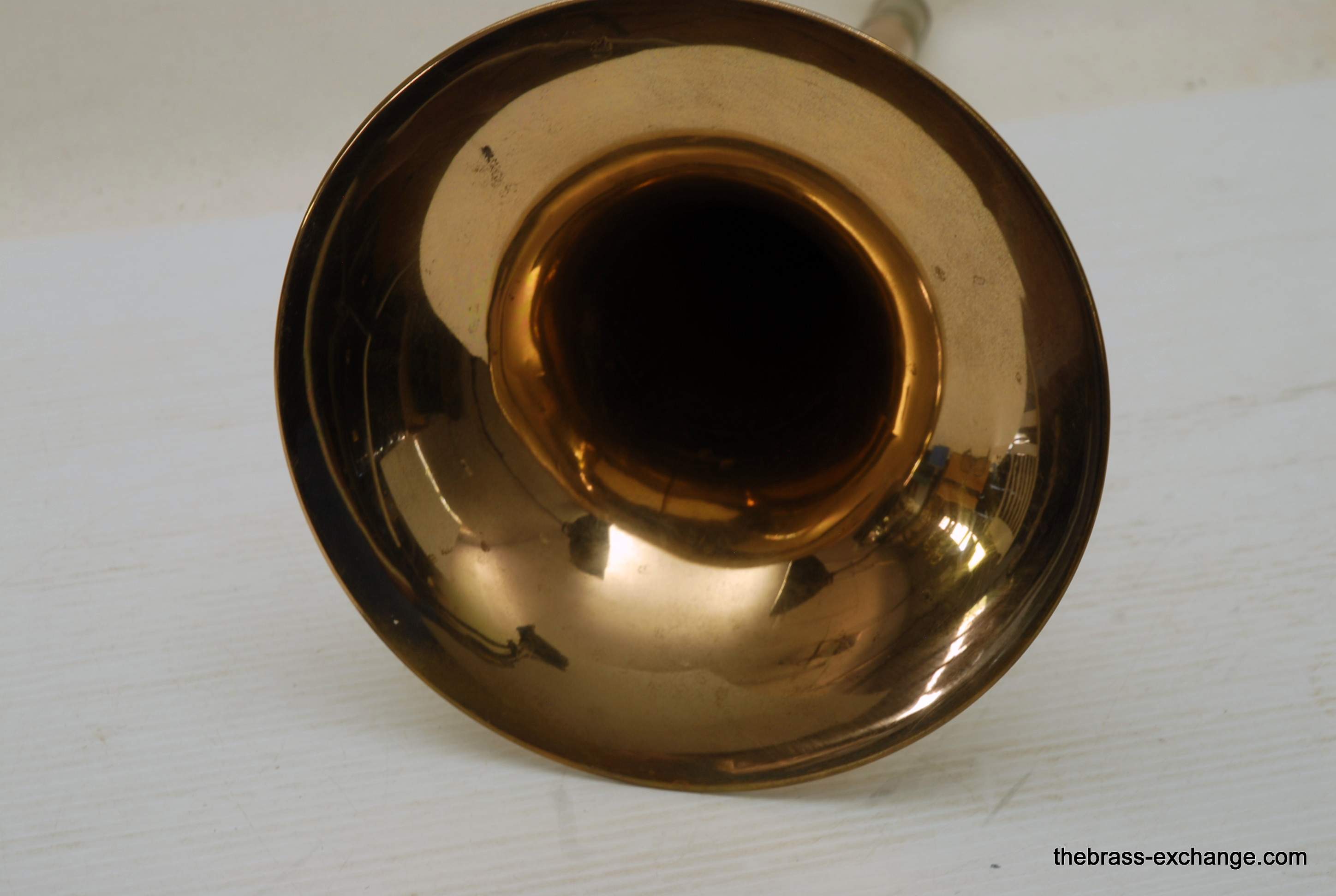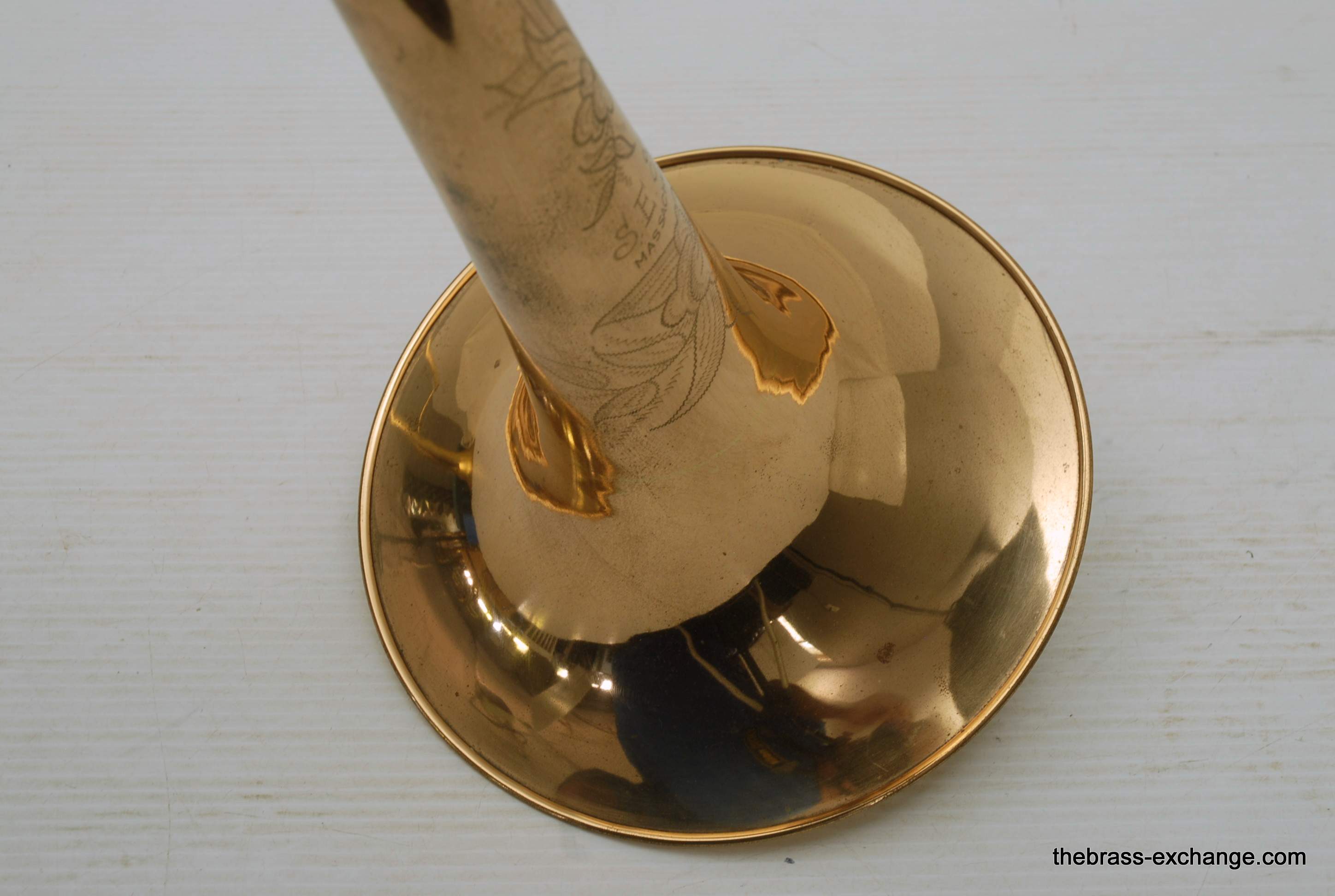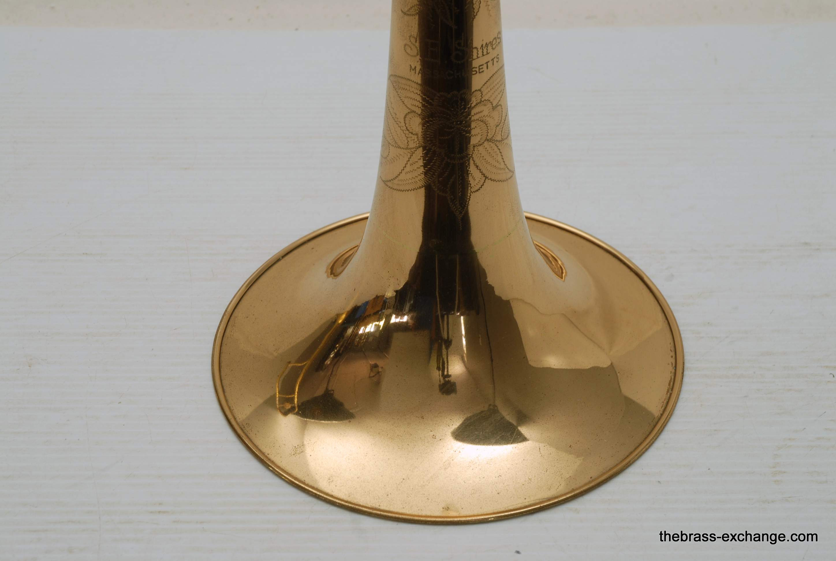 S.E. Shires Bass Trombone Bell. Model 1G, old style Massachusetts engraving. Has 9.5" flare, standard weight. This is from the 1990's. It is such early make that it was before Steve Shires was stamping part numbers. All original lacquer, in good conditon. Has not been creased, damaged, or repaired. This is a very good bell that plays warm with clear center. Ideal for all around play, orchestra, and commercial style. Rare find. In-stock for immediate delivery.