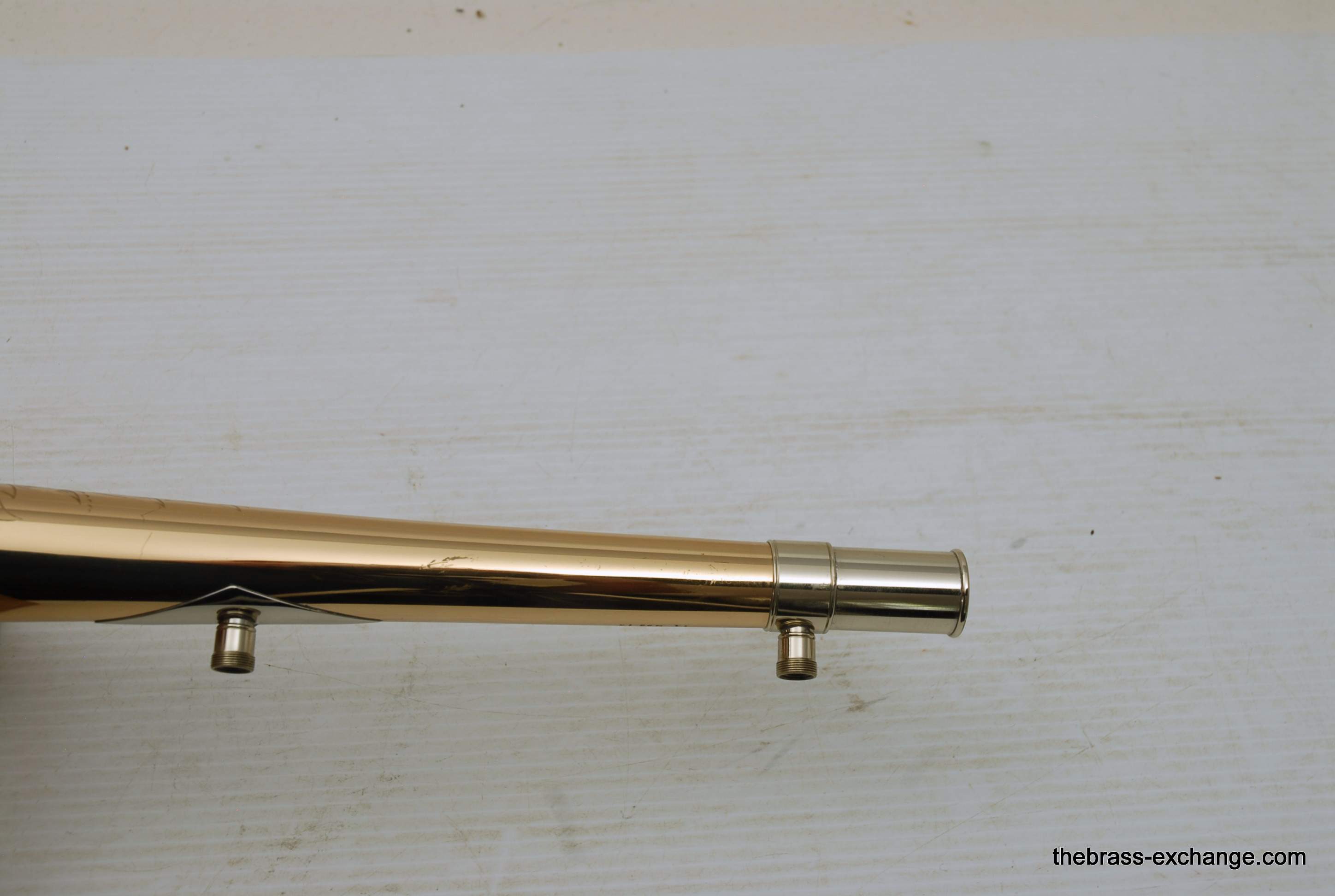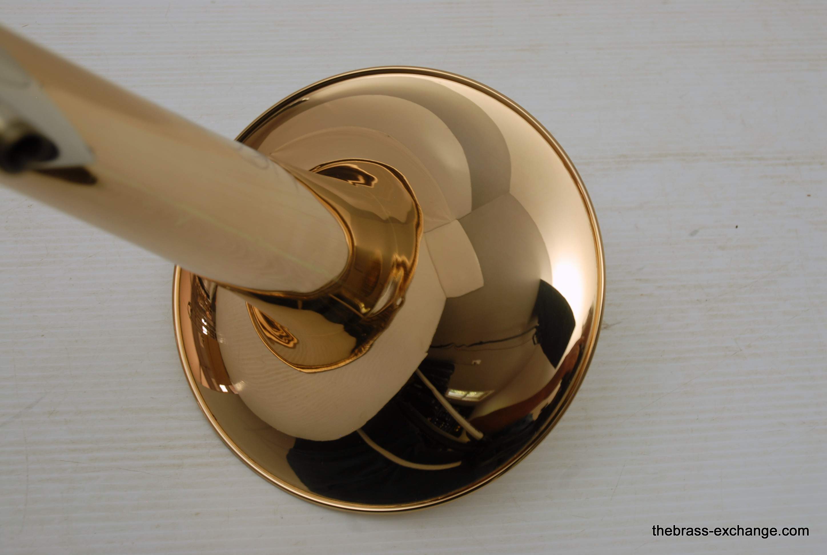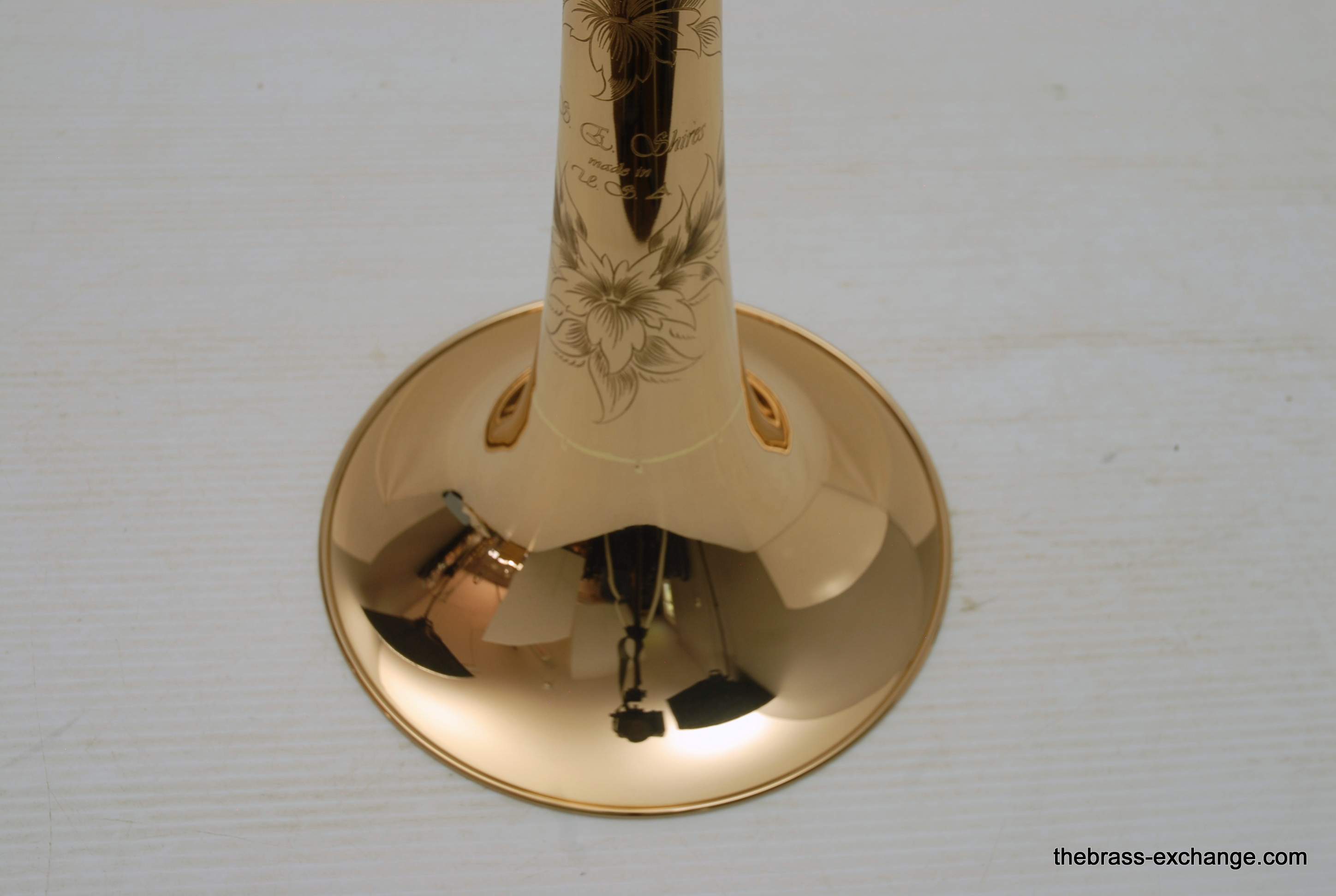 Shires Bass Trombone Bell Model B1 2GMT7. This is a like new, not played on much pre-owned bell in perfect condition and plays fantastic. Has 9.5" gold brass flare with unsoldered rim, similar to Vintage Conn 62H, T7 Treatment is thinning of the bell flare. Is a custom Boston Make piece, never damaged or repaired, lacquer is near perfect. A new Shires Bass Bell exactly like this sells new at the factory today for $1380. Save now! In-stock