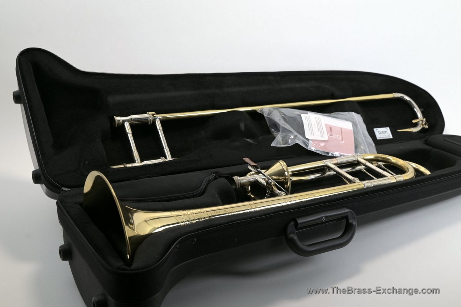 The trombone includes a BAM case made in France, providing excellent protection for transport and storage.