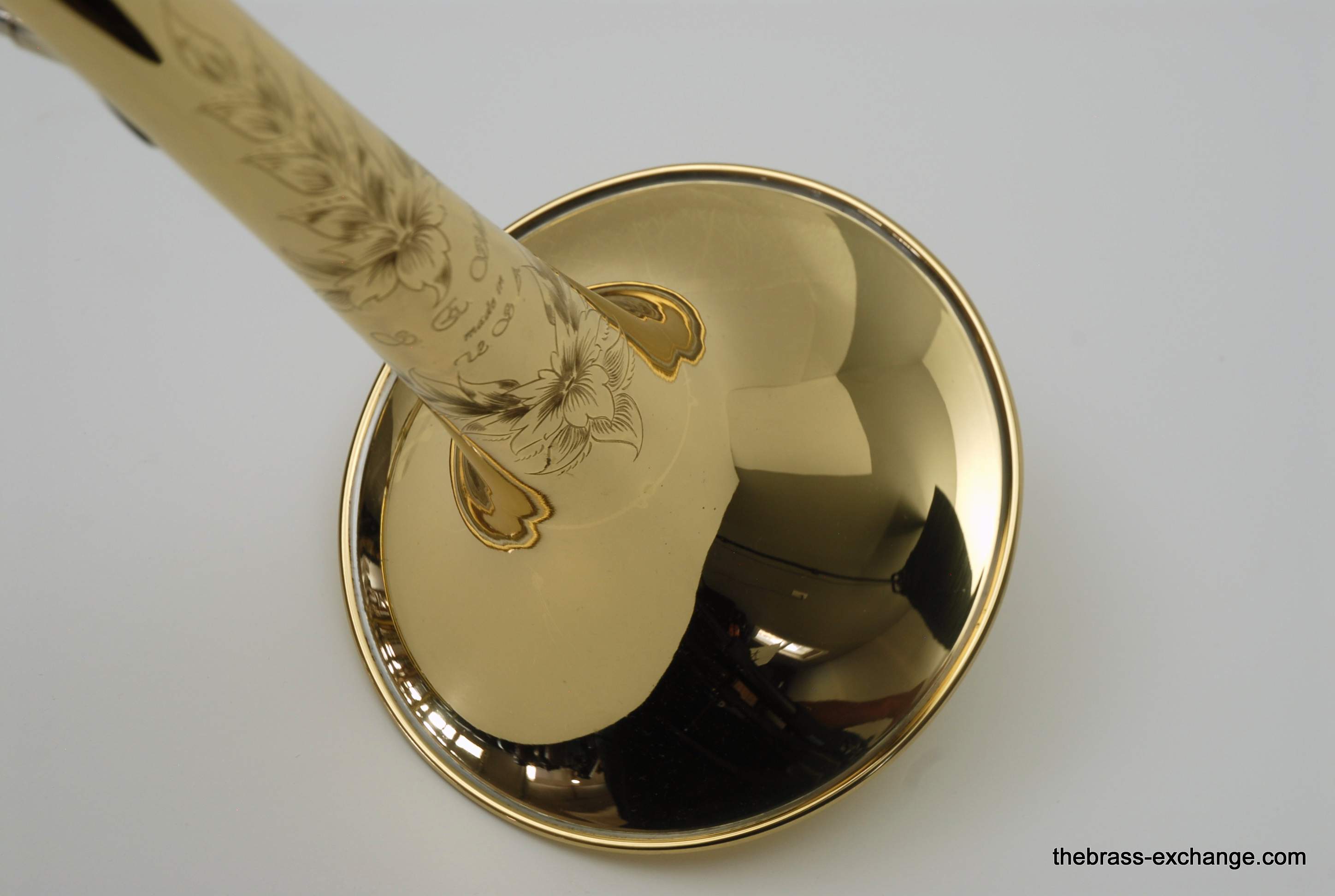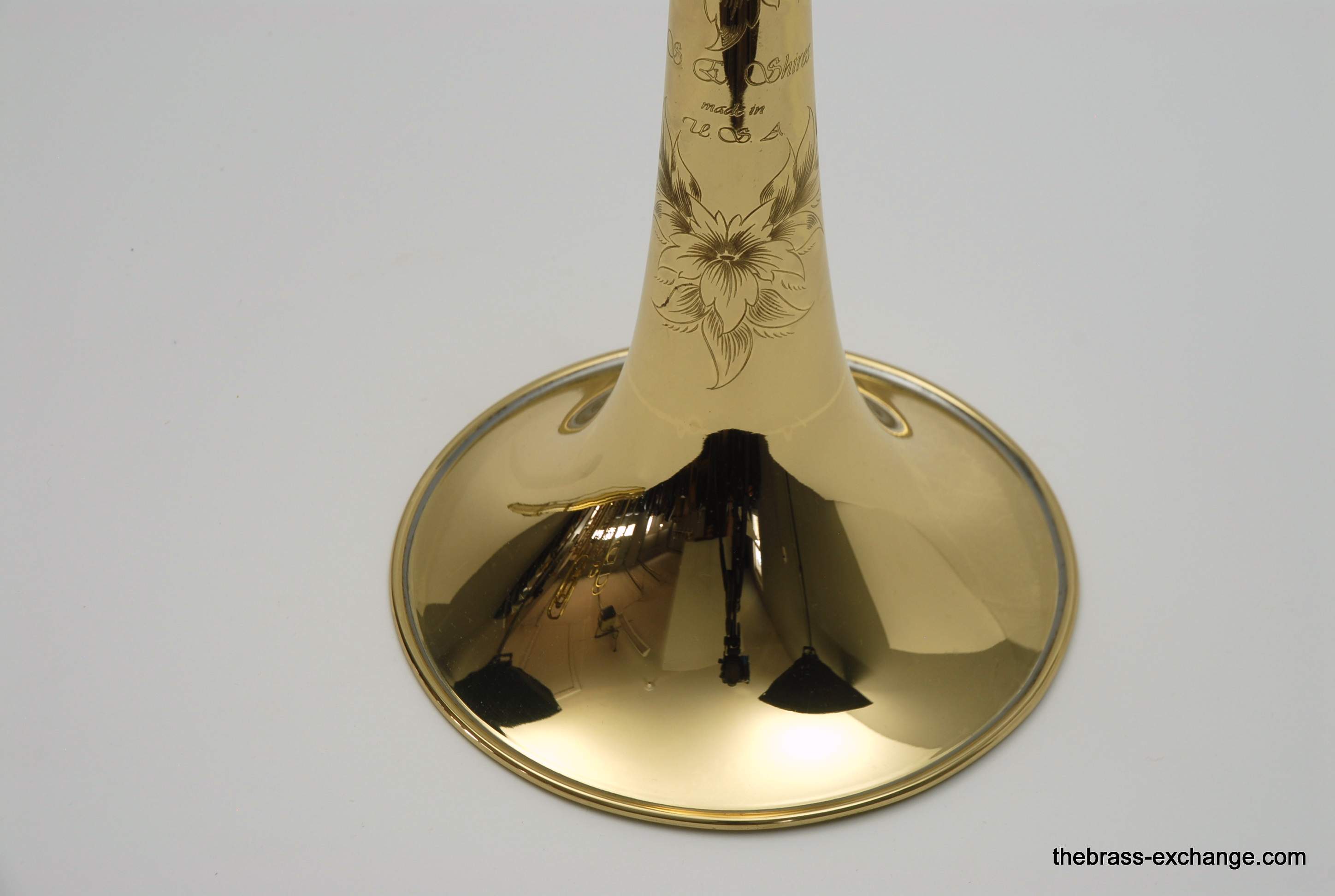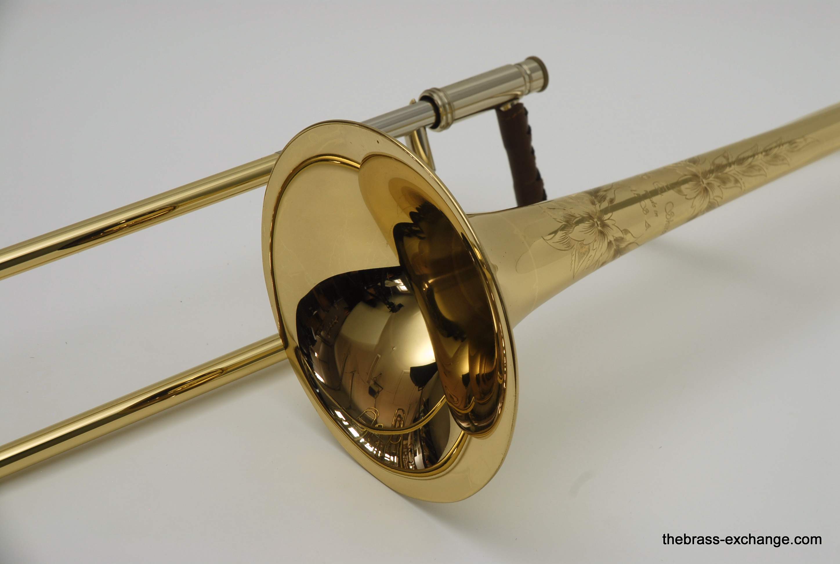 This S.E. Shires Custom Series alto trombone with T.I.S. (Tuning-in-Slide) design, serial number 8952, is a Boston-built example that has seen very little playing time and remains in excellent condition. The lacquer and engraving are beautiful, all parts are original, and the instrument shows almost no signs of prior use.