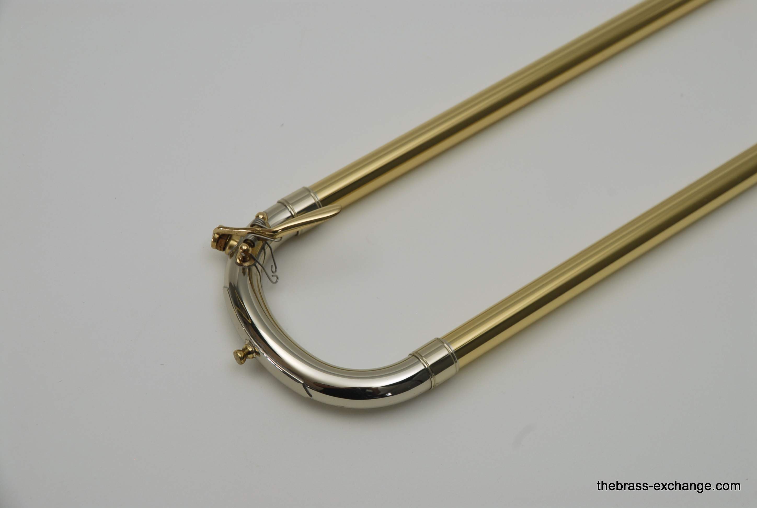 • A85-95 dual-bore yellow brass handslide with nickel crook
