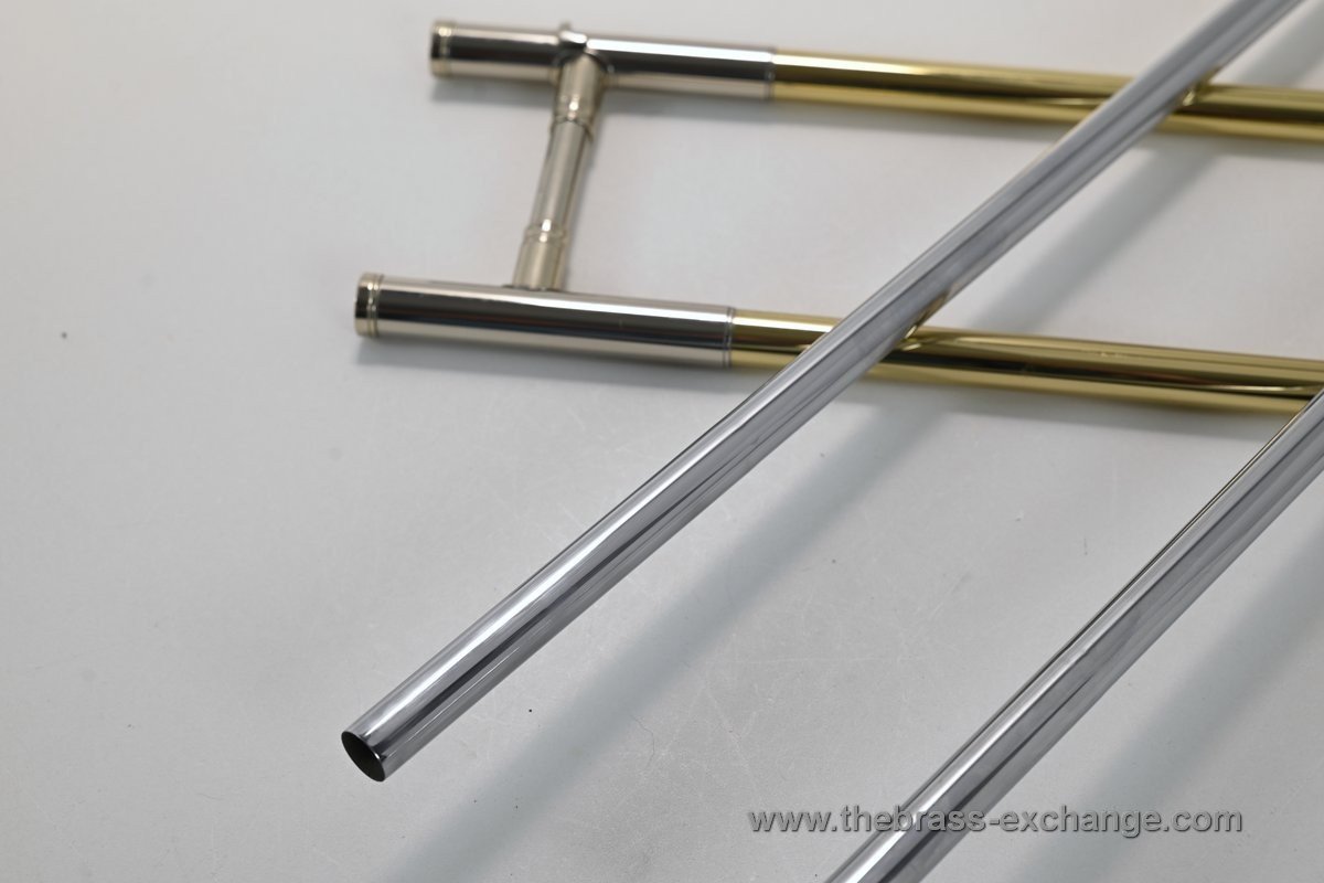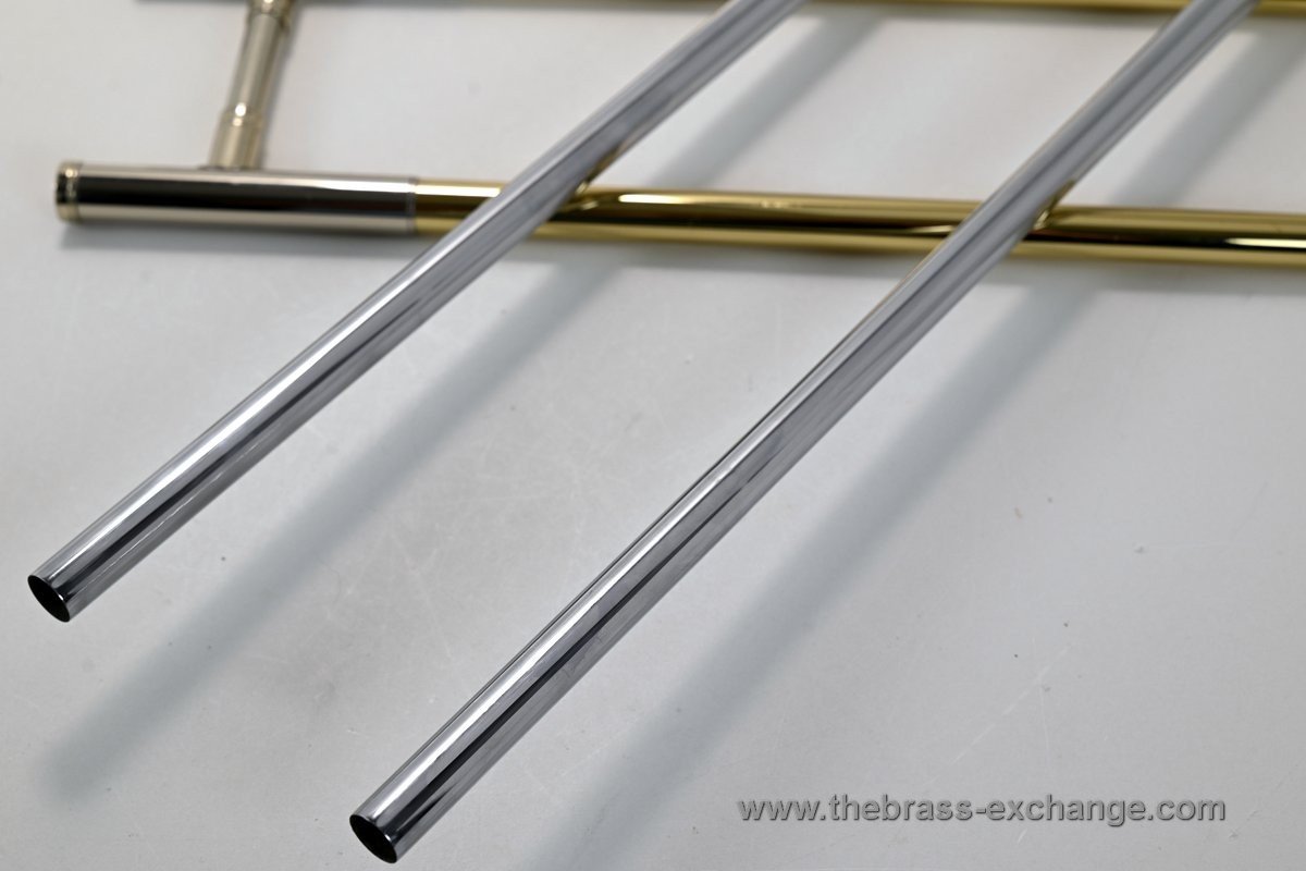 Upon arrival, the bell was fully serviced in our shop. The raw brass finish was carefully machine polished, giving it a striking appearance and an open, lively response. These are premium pre-owned components, not B-stock or seconds. The result is a superb all-around large-bore tenor trombone (.547) with the flexibility and resonance needed for advanced performance.