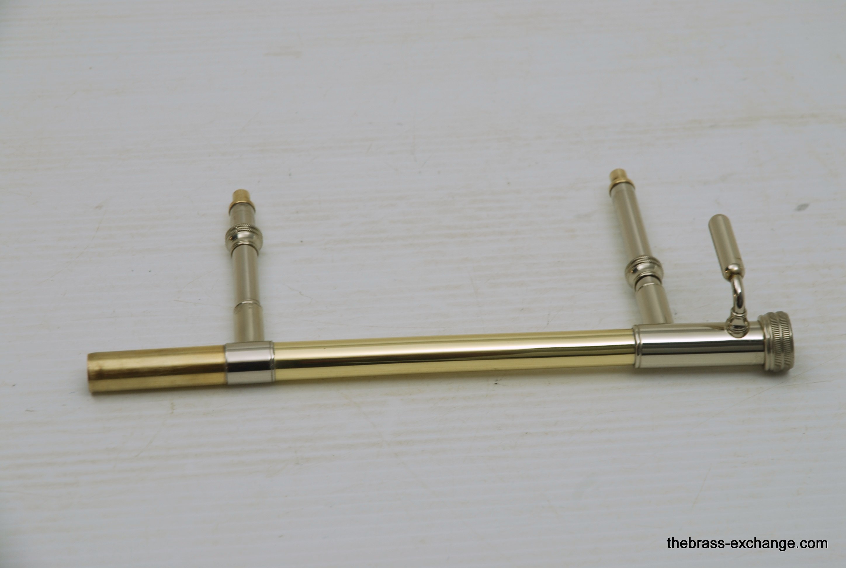S.E. Shires Neckpipe for conversion to from F-attachment to straight tenor. Has been used slightly. Counter weight is not included, but recommended for optimal balance. Has thumb bar rest, which maximizes comfort and balance. Conversion is ideal for playing situations where a trigger isn't needed and lightweight is preferred. In-stock.