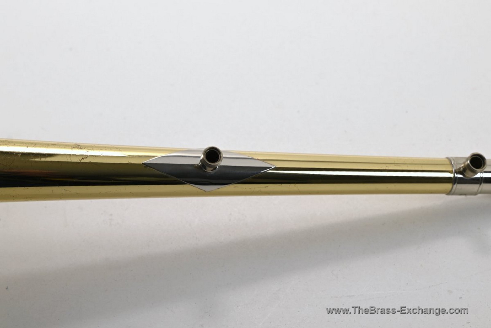 Many trombonists discover this page while researching damage or denting on their own bells. Early Q-Series bells are rarely sold a-la-carte through the factory, and replacement availability can be limited. For this reason, repair is often the more economical path — a local brass repair technician can frequently correct dents and creases for significantly less than sourcing a replacement bell, particularly for legacy or early-series components. If you are evaluating whether a bell should be repaired, replaced, or sold as-is, we are glad to offer guidance — especially when part of a trade-in or upgrade discussion.