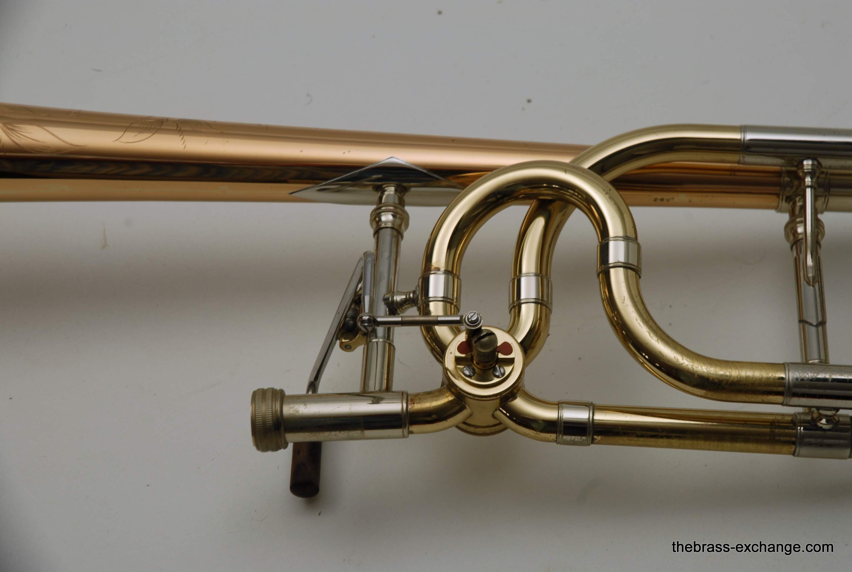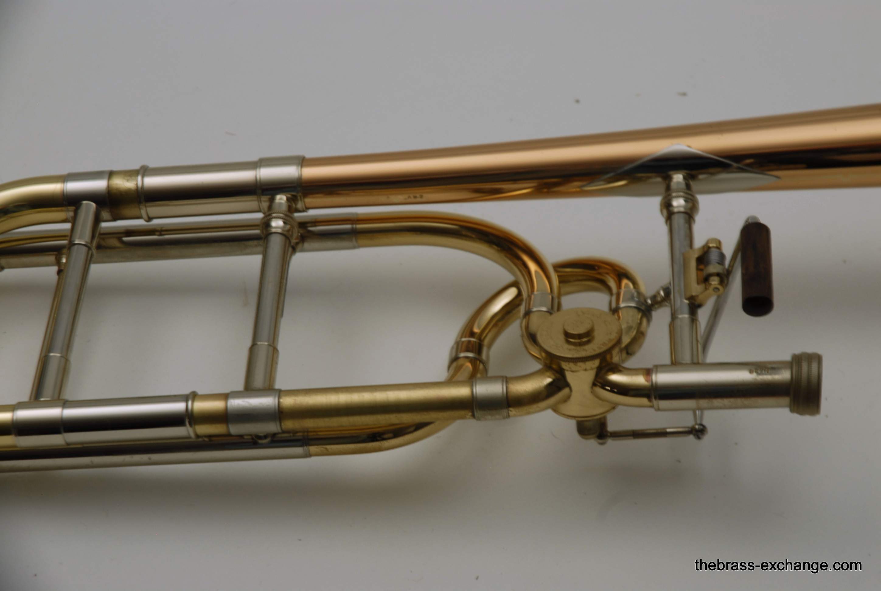 The valve section used a dual-bore rotor paired with a TY yellow brass tuning slide. The handslide was a T25LWβlightweight yellow brass, standard width, and free-blowing without oversleeves. This configuration gives a medium-bore player the flexibility of a smaller horn with more tonal depth than most .525 setups.