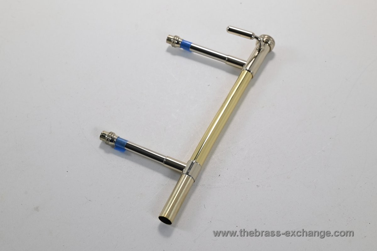 Please note that this part is not compatible with small-bore Shires tenors. Small-bore models have soldered-in-place cross braces and fixed neckpipes that are not designed for removable conversion parts.