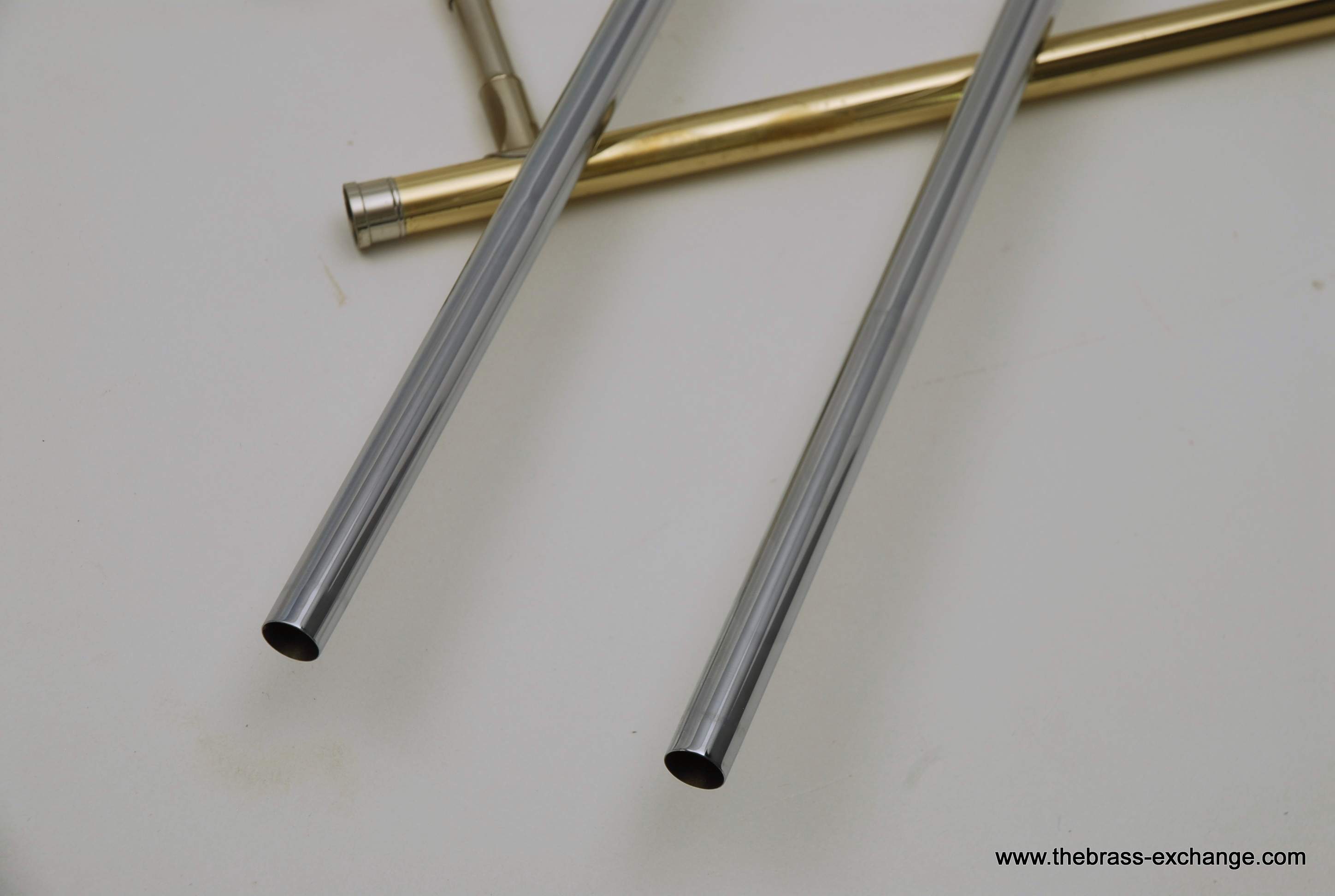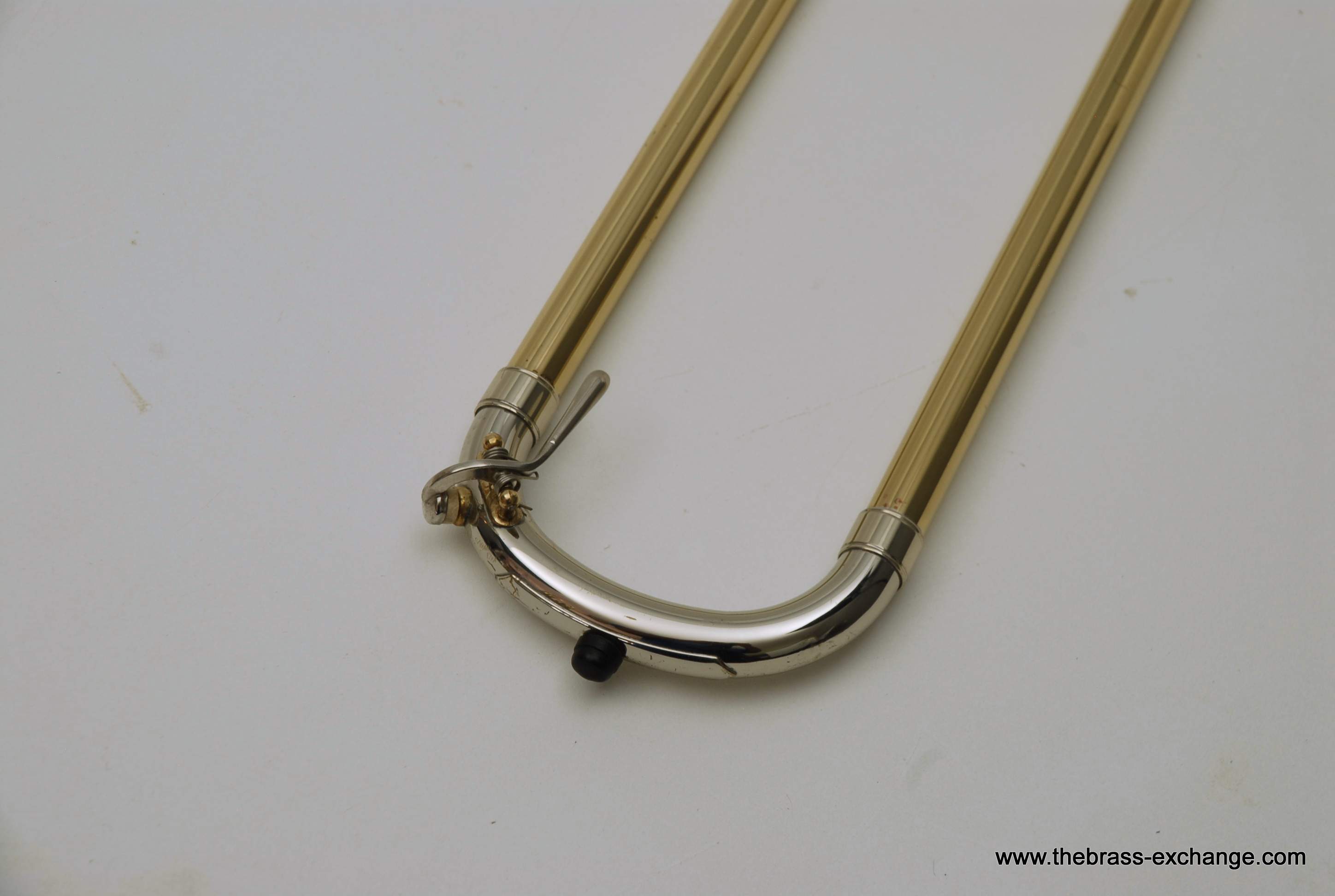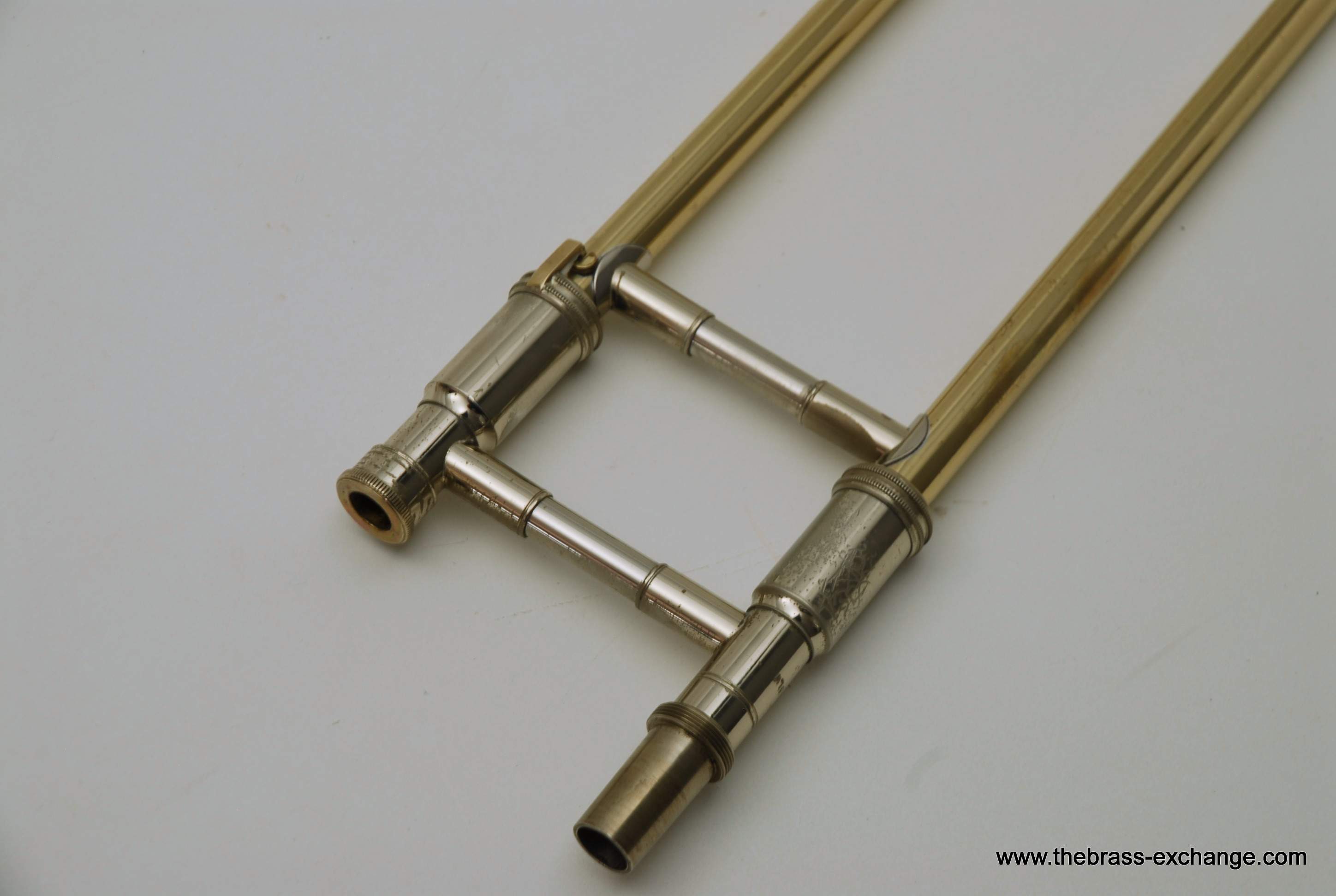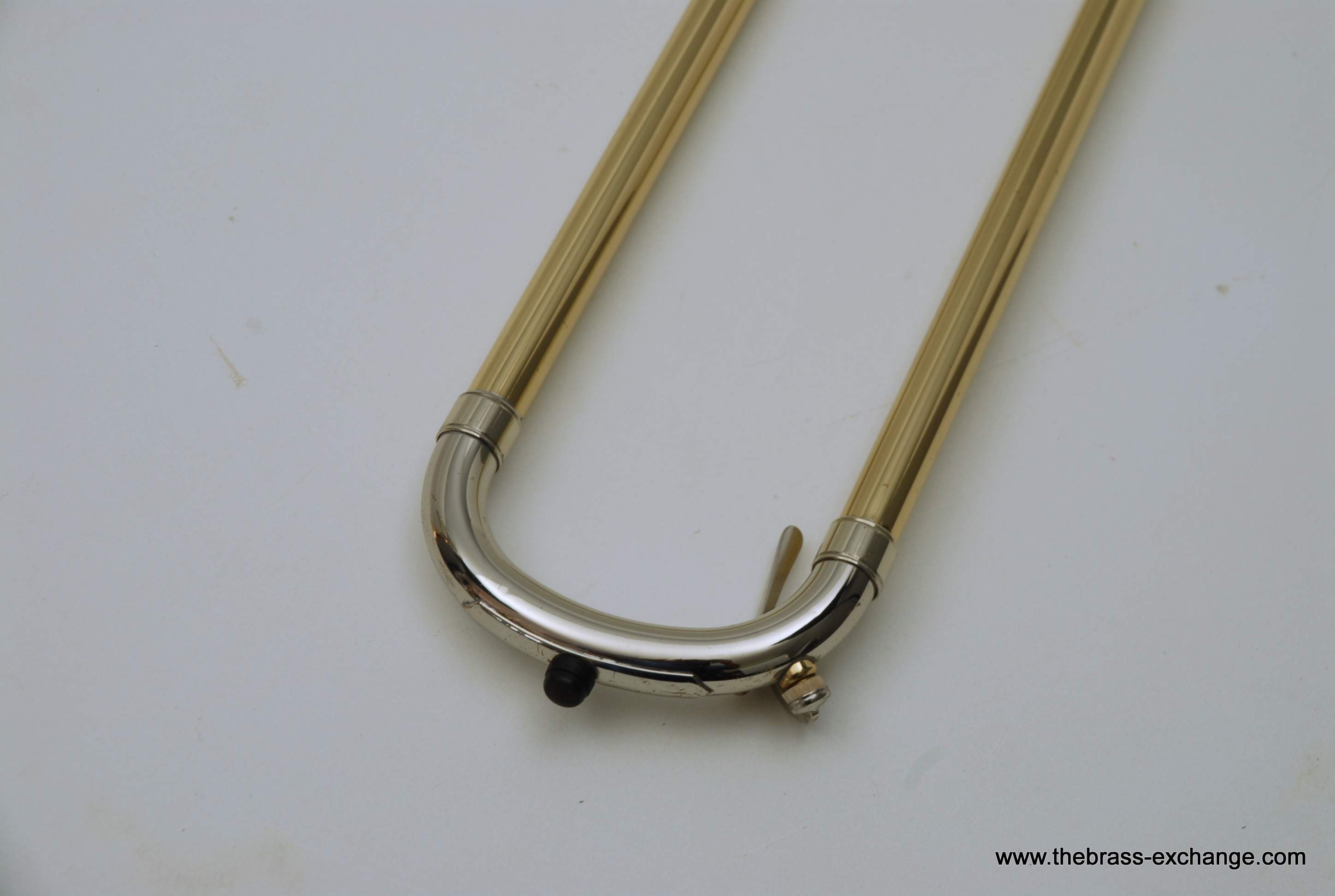 The slide had been professionally cleaned and serviced here at The Brass Exchange. Tubes were straight, alignment was good, and it played properly across the range. There was some typical lacquer wear in the grip areas from normal handling, but overall it was a very nice example of a Shires medium bore handslide.