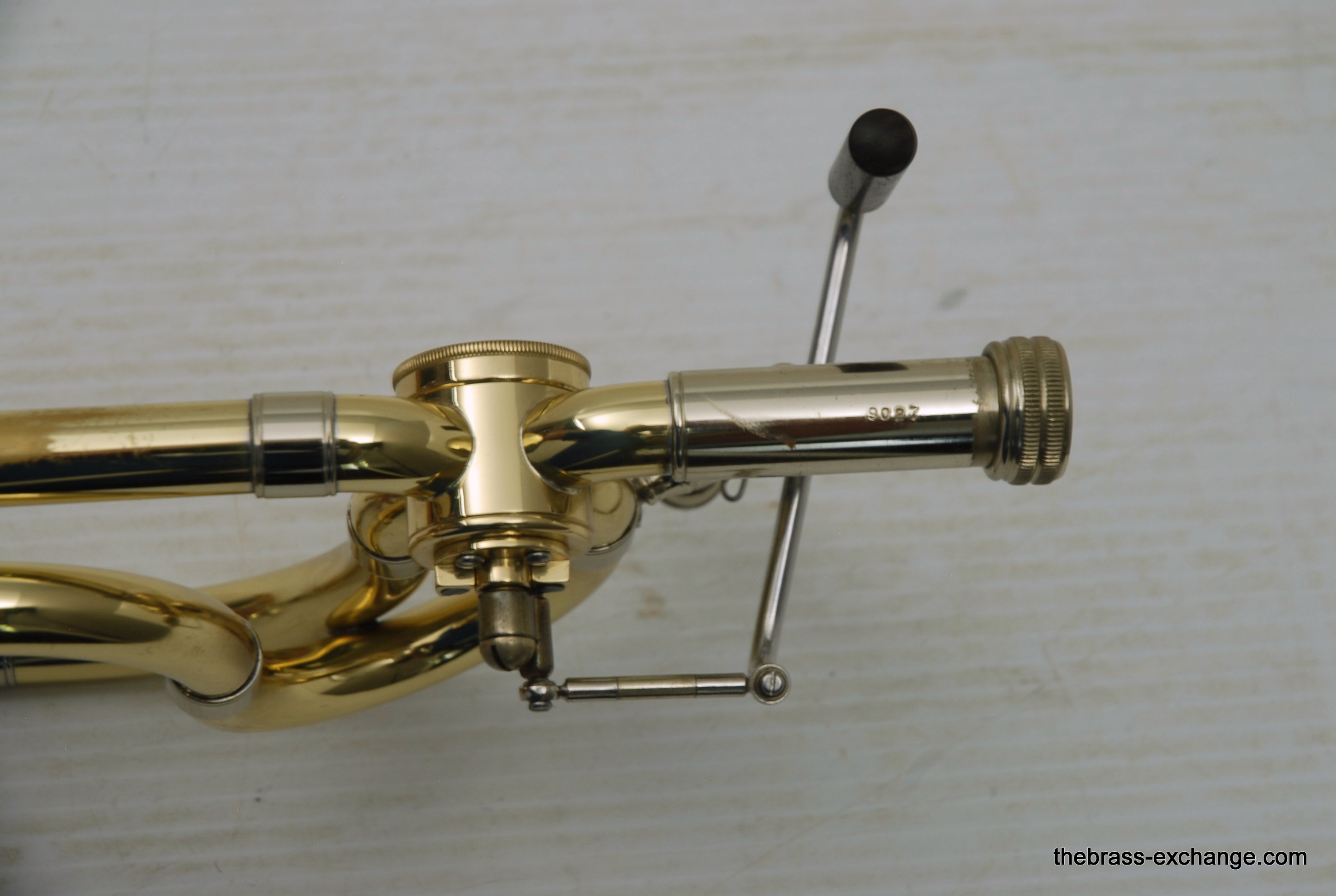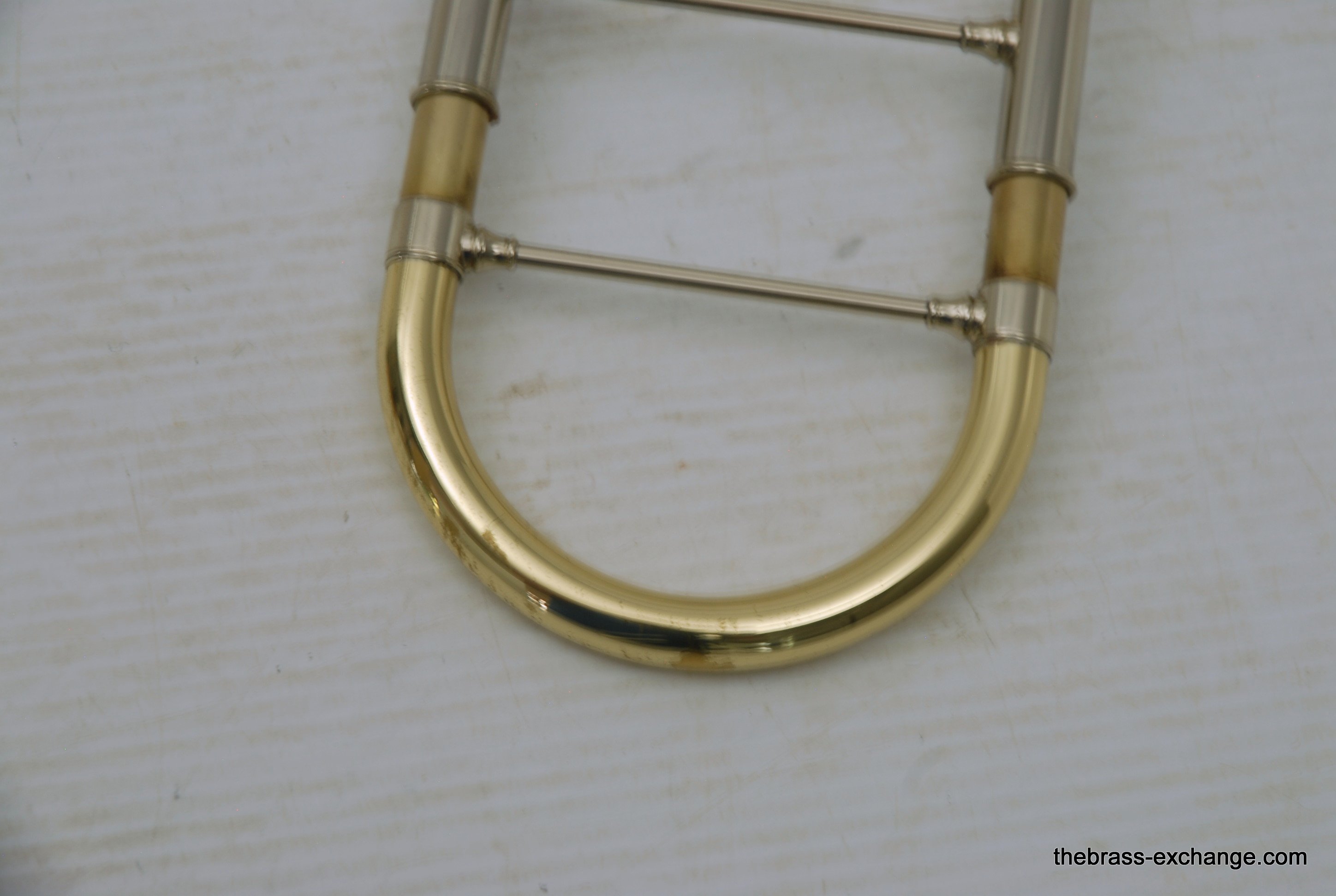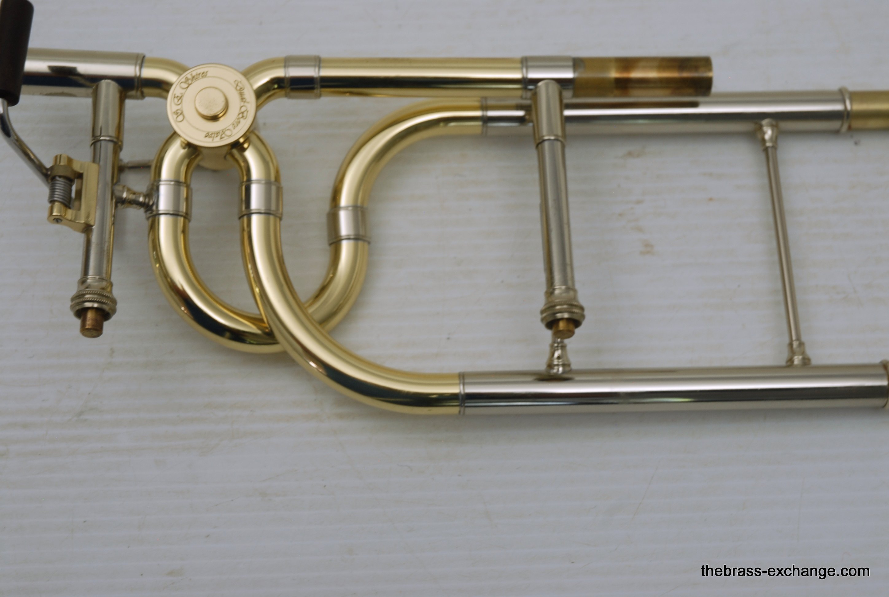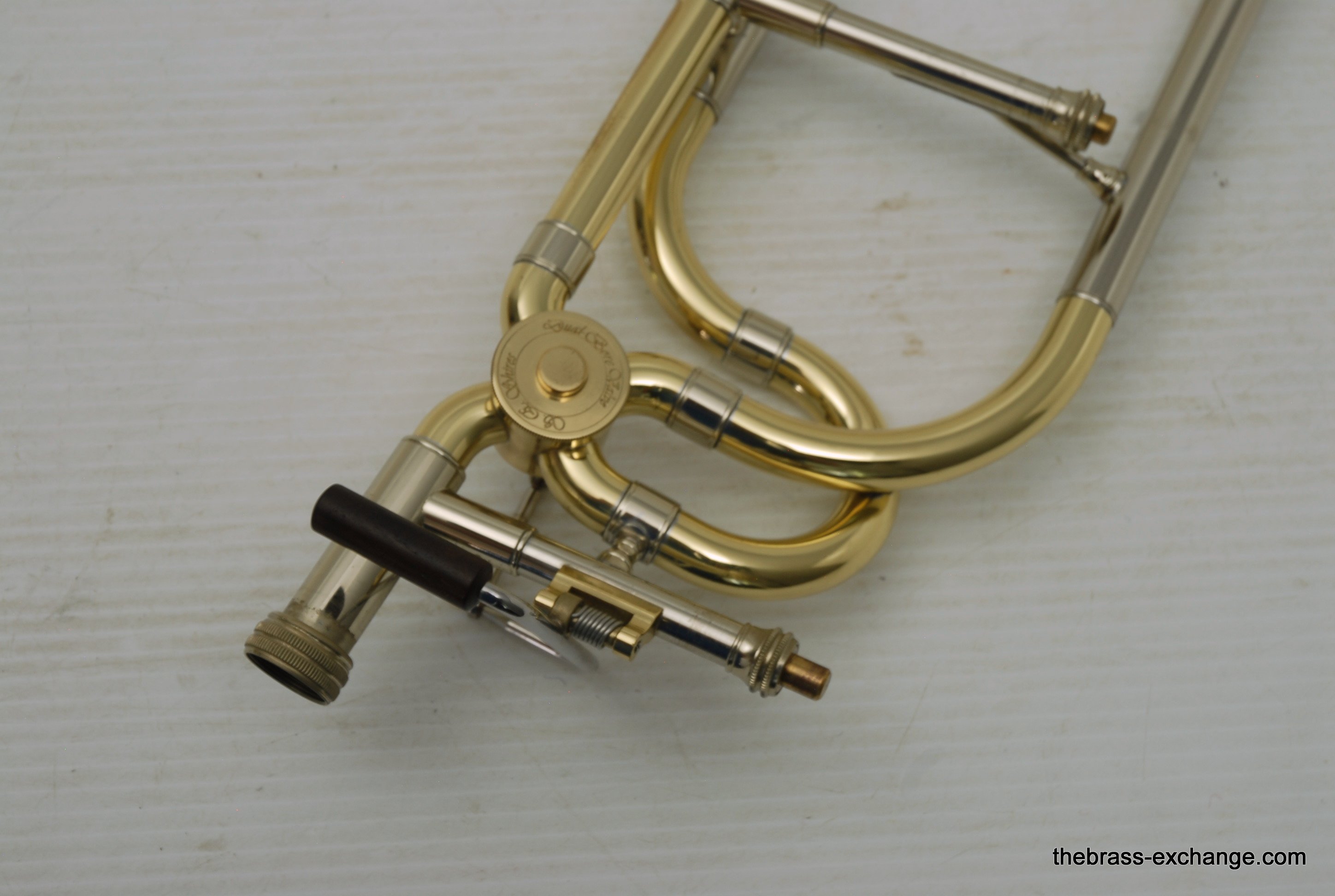 S.E. Shires Dual Bore Rotary Valve section for tenor trombone. Pre-owned component in excellent playing condition. Has had chemical bath and once over. Is compatible with all Shires Bell Sections and handslides. This is the same valve that Shires uses on the Vintage Elkhart model and the Ralph Sauer Artist Model. No dents or dings, some lacquer wear, overall very bright appearance. Is in-stock for immediate delivery.