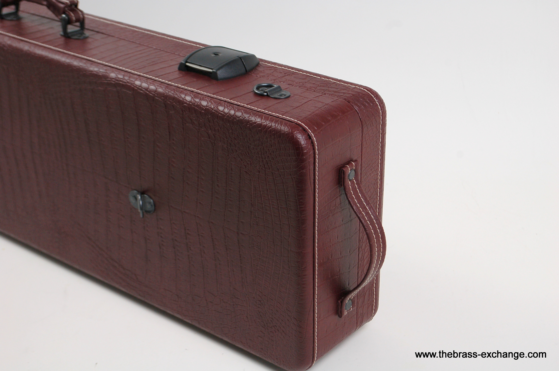 The Marco Magi DR Artist Model screw-bell tenor trombone case blends vintage European styling with modern protective engineering. Handcrafted in Italy, this model features a textured red leather-pattern exterior reminiscent of classic alligator-style cases β€” durable, scuff-resistant, and visually striking.
