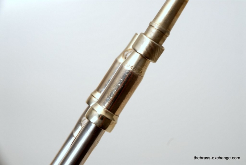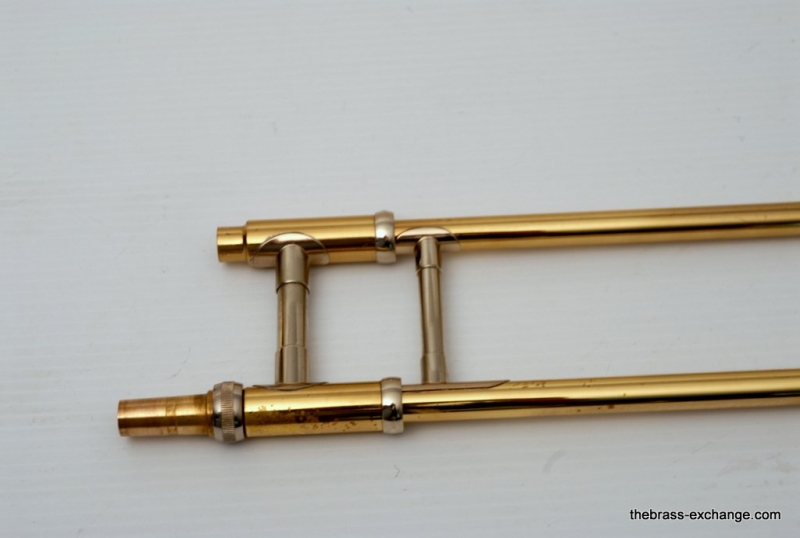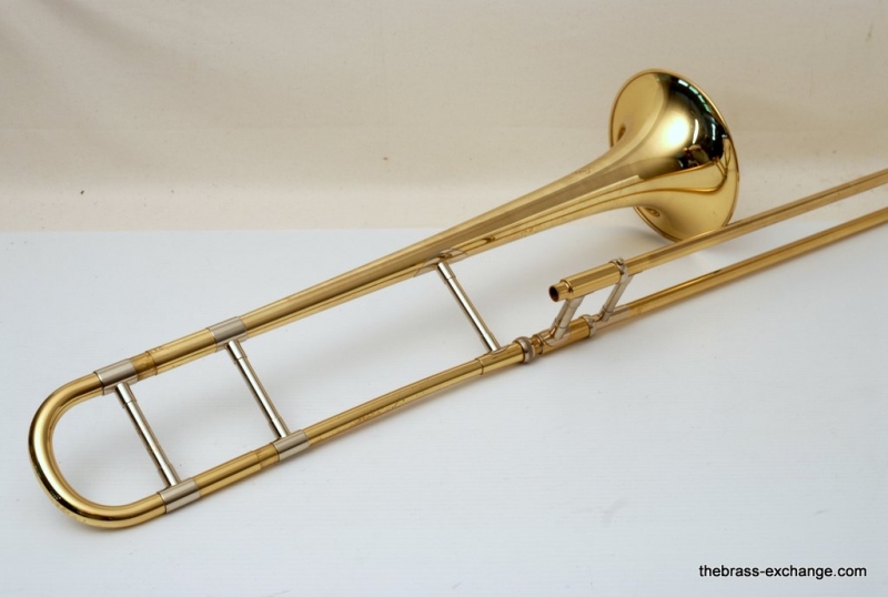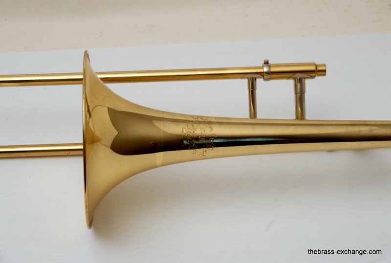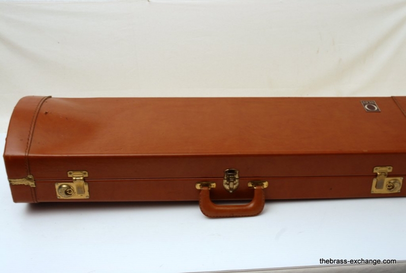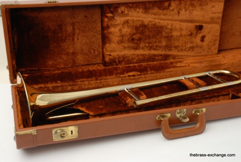 Olds P-16 Fullerton, CA from around 1978. Has 7.5" yellow brass bell with lightweight .500 bore handslide. Bell is also lightweight. Has lots of tonal flexibility. Plays quick and responds great. Hand slide is terrific. No signs of wear or damage. Has been Chem cleaned and flushed. No service requirements to improve playability of this classic horn. Would be great smaller alternative for a 3B guy. Feels very similar to a Jiggs model, great sound, plays easy. Original case in excellent conditon.