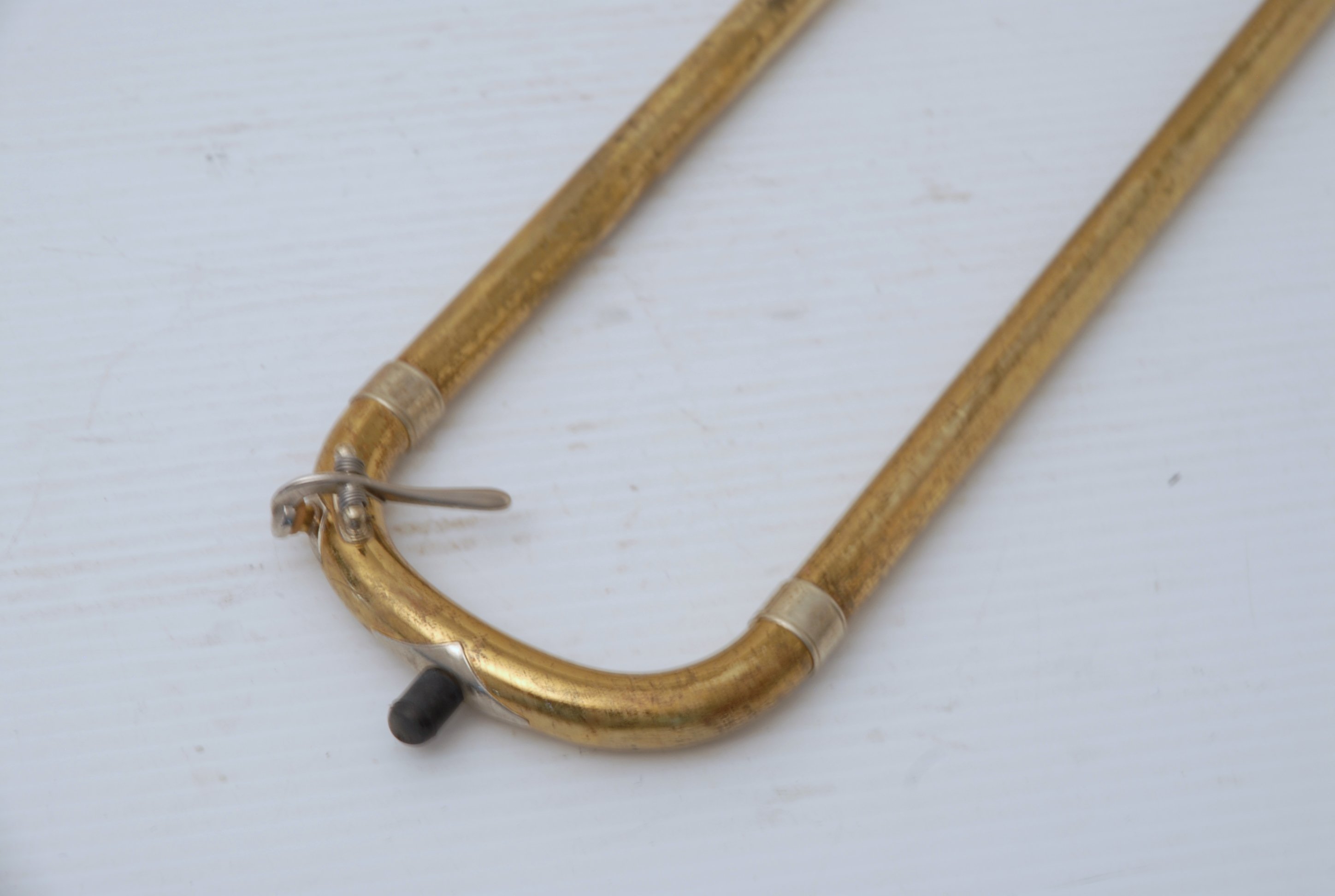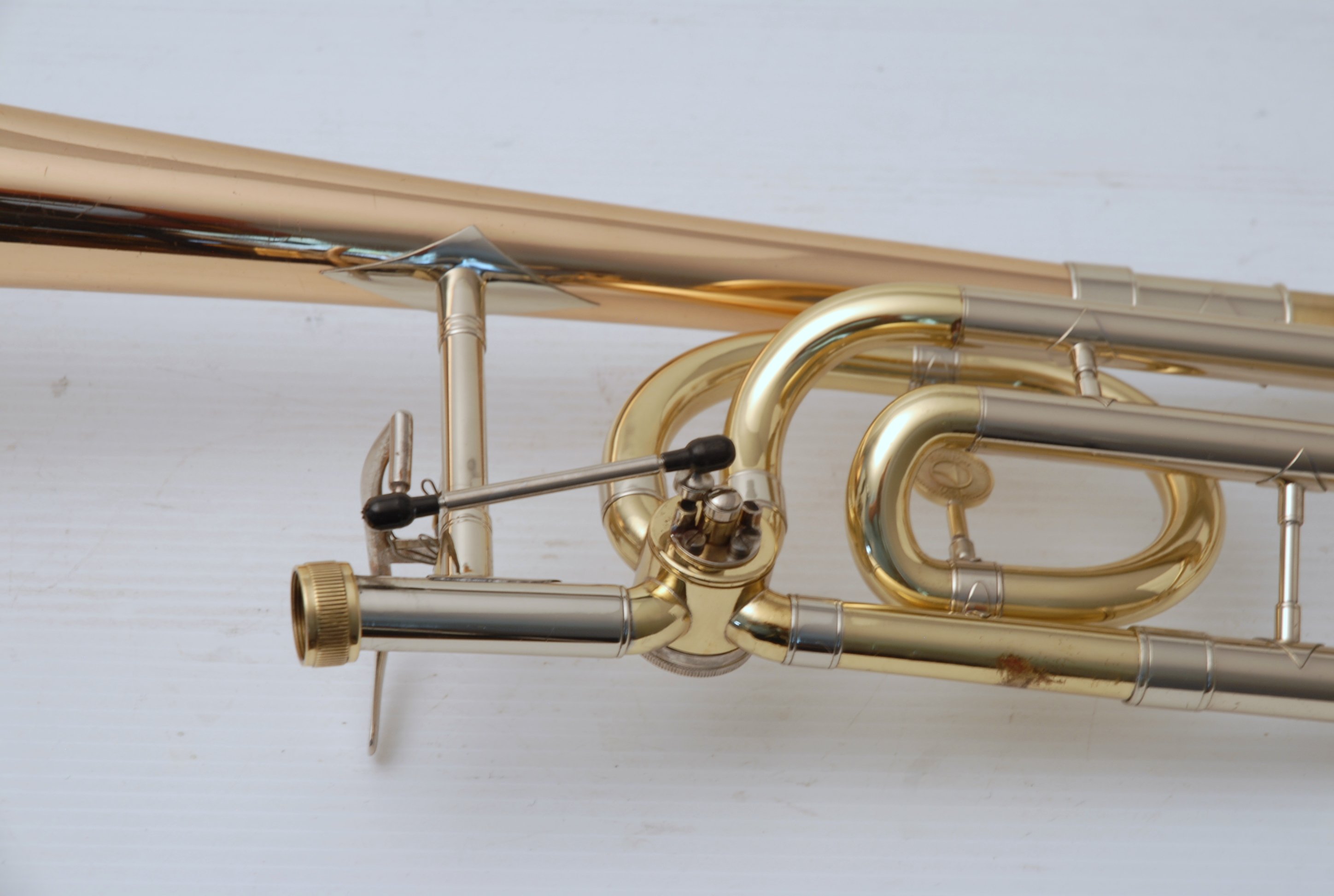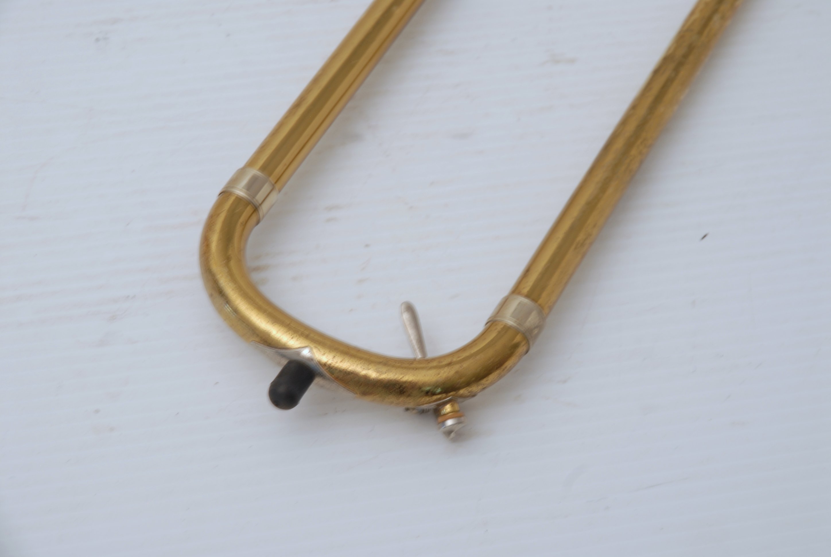 Trombones Used at the Brass Exchange are always in stock. This model is a Holton TR183 Bell section. Has 9" Bell flare, traditonal single rotor. Has been cleaned & serviced, no dents, dings or issues, bell section plays perfectly. Slide receiver on neck is compatible with Bach or Edwards handslides. Includes Corporation era Bach 50 handslide. Would make an excellent big band, commerical style single bass where double trigger is not needed. Would also work terrific on second or third parts in a band/orchestra, lots of width but still gorgeous core sound.