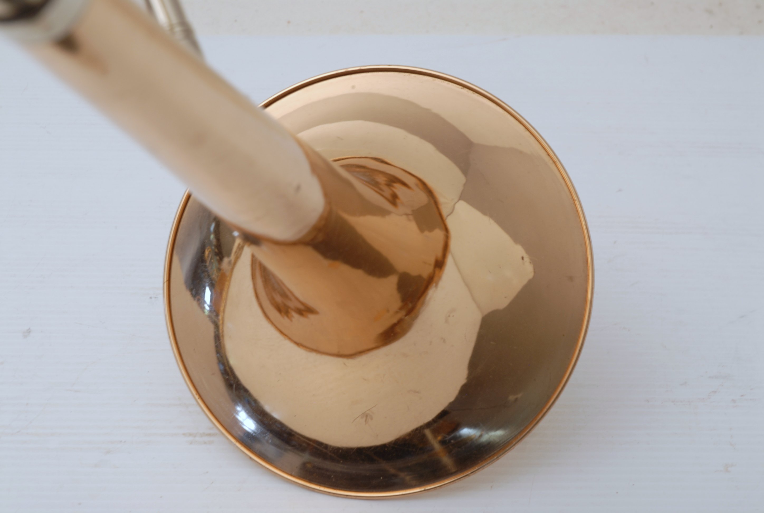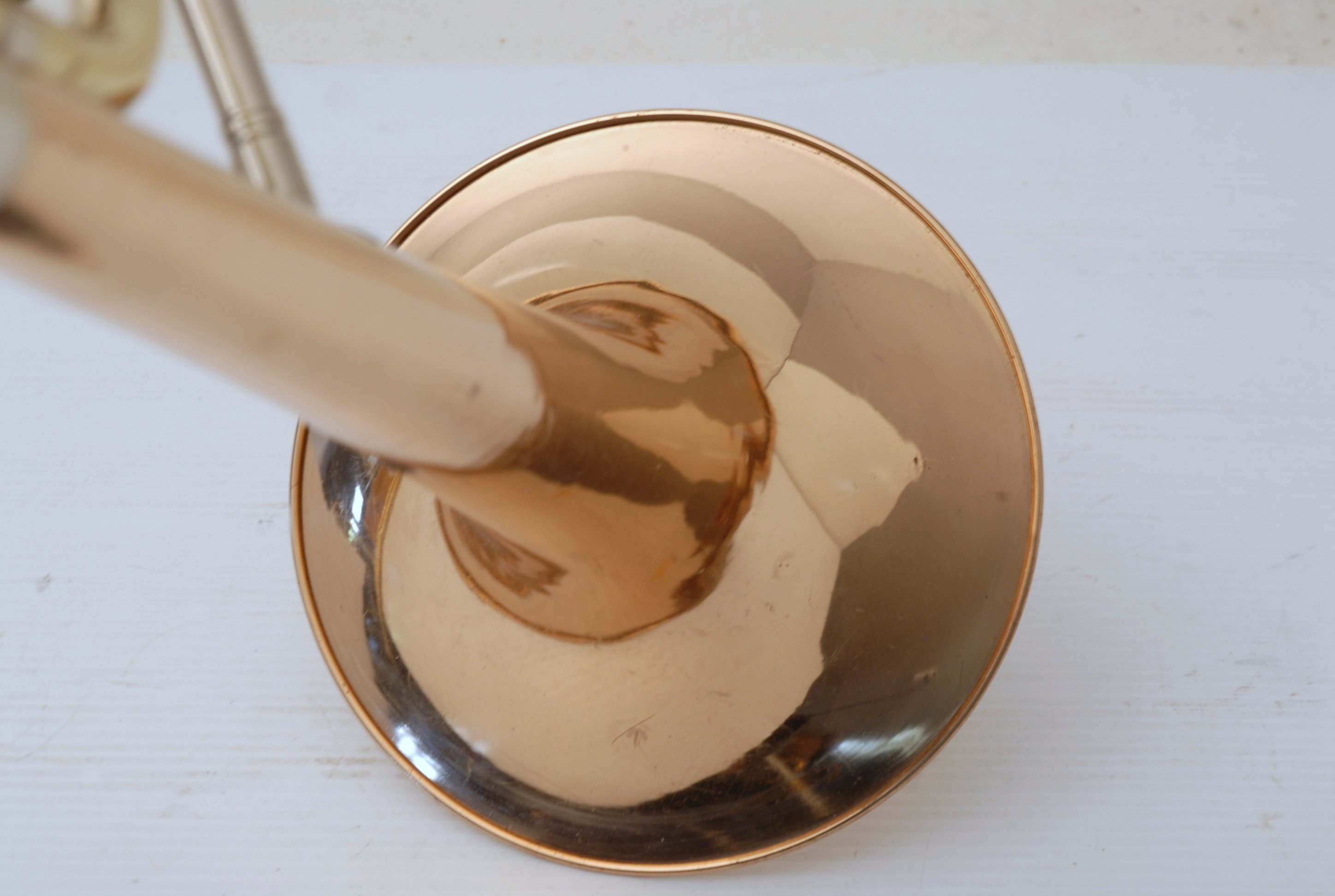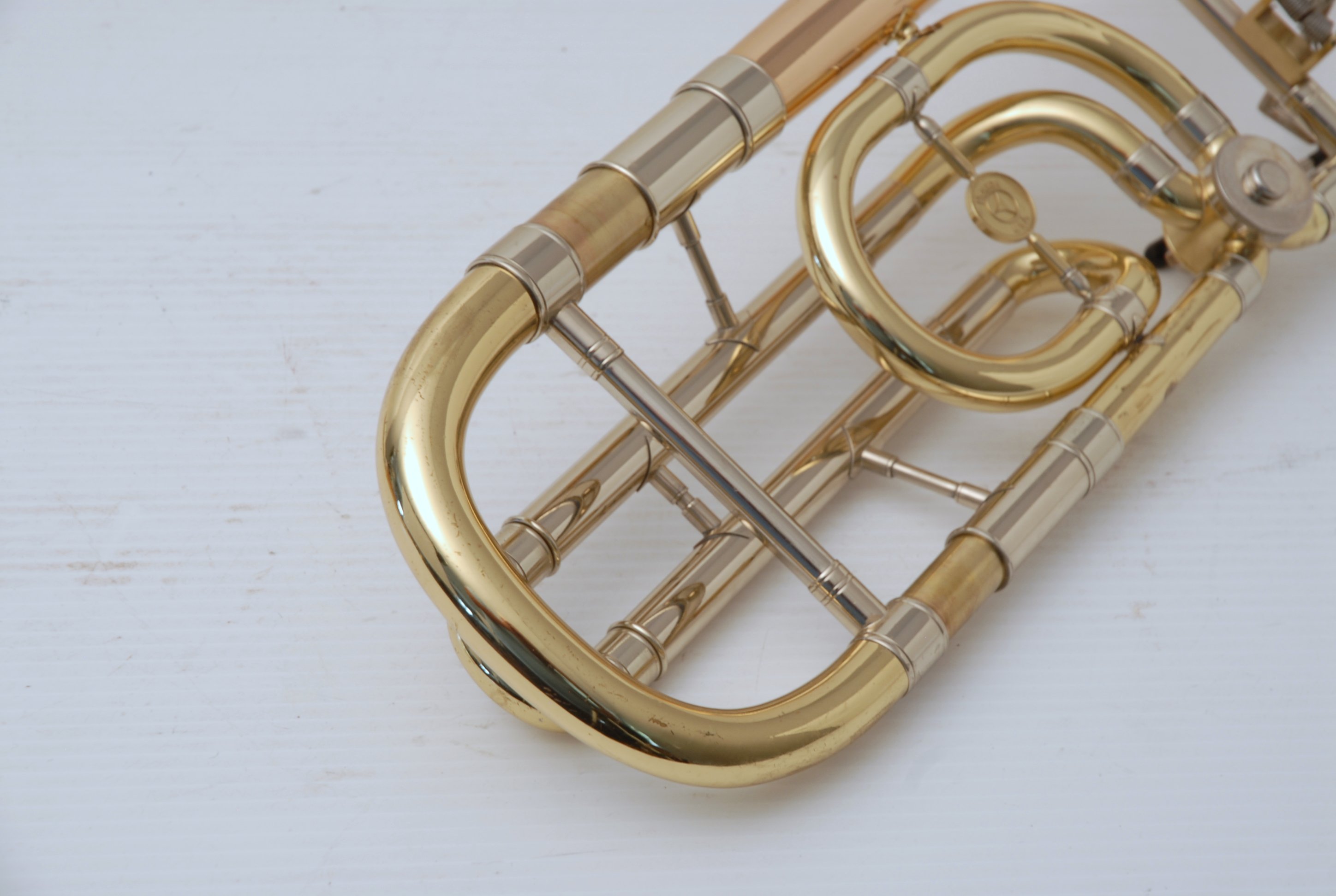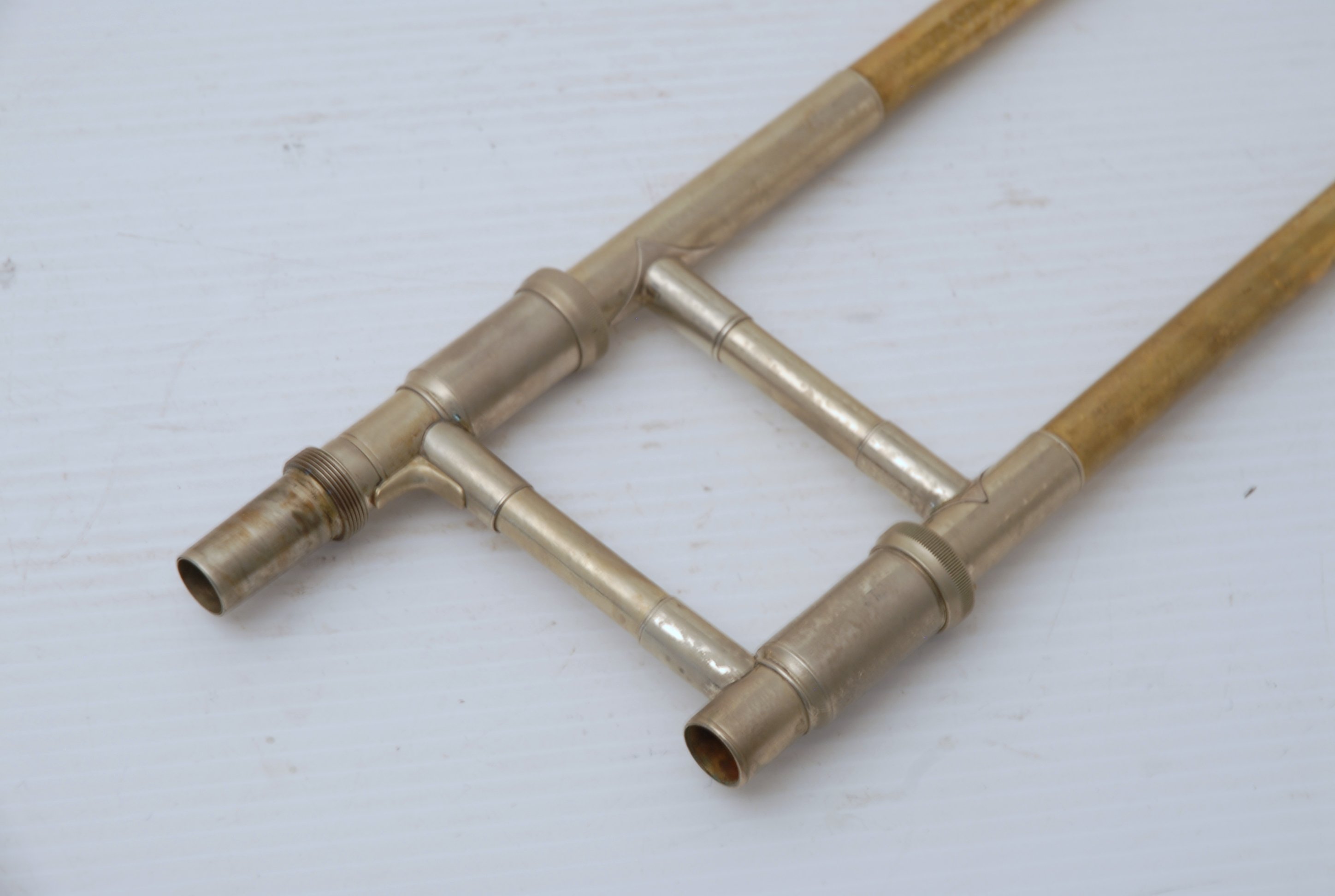 Trombones Used at the Brass Exchange are always in stock. This model is a Holton TR183 Bell section. Has 9" Bell flare, traditonal single rotor. Has been cleaned & serviced, no dents, dings or issues, bell section plays perfectly. Slide receiver on neck is compatible with Bach or Edwards handslides. Includes Corporation era Bach 50 handslide. Would make an excellent big band, commerical style single bass where double trigger is not needed. Would also work terrific on second or third parts in a band/orchestra, lots of width but still gorgeous core sound.