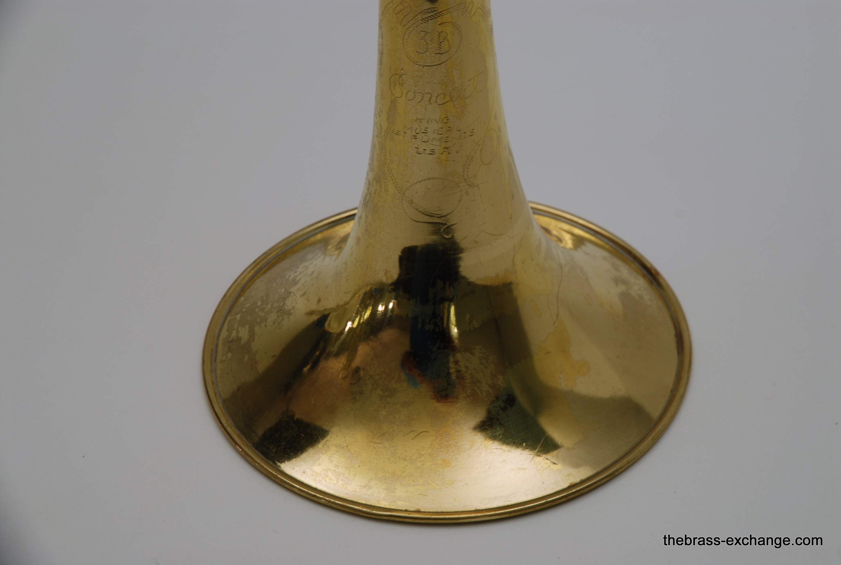 These photos come from our earlier archive period and reflect the way we photographed instruments at that time. They are kept here as part of our historical reference library so players and collectors can study vintage King 3B examples.