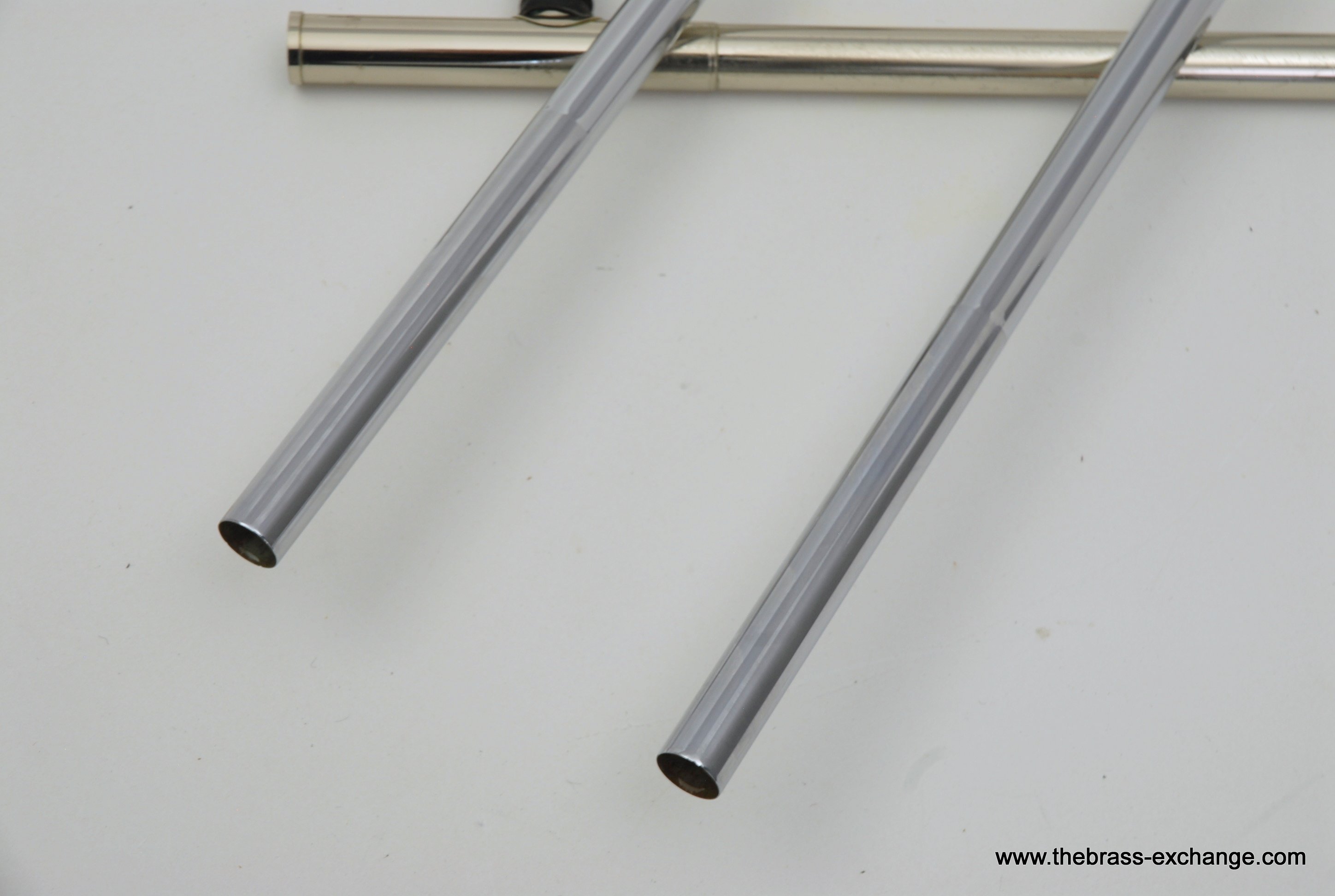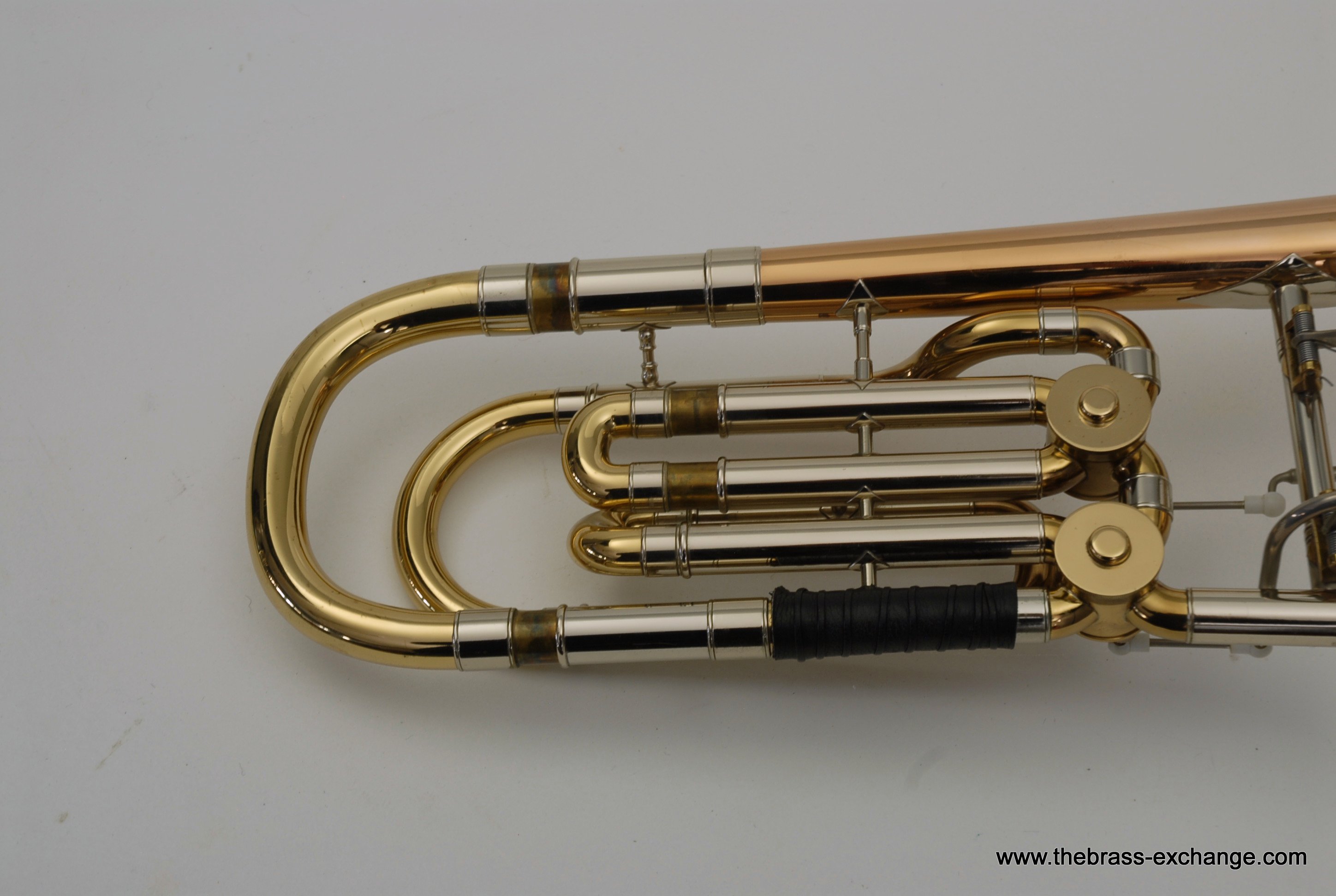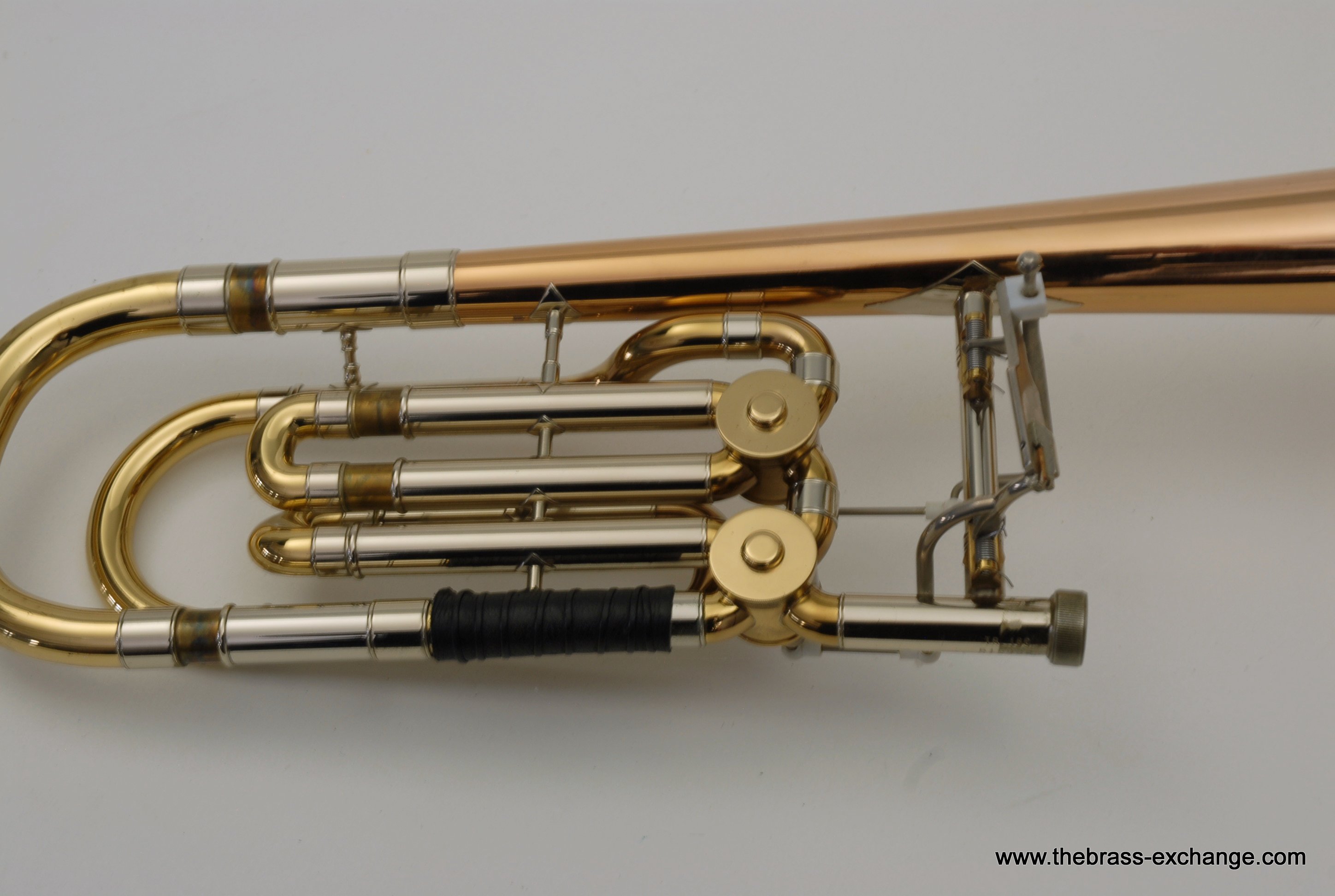 Holton TR180 Bass Trombone SN 515622 Made around 1972, Elkhorn, WI. Excellent condition TR180, Single Owner Bass. Has rose brass bell, just a little under 10", around 9.85". Has had no prior damage or repairs, and is all original parts and lacquer. Is in amazing shape for it's age. Dependent tuning Bb/F/Eb. Glantz Bar single lever. Here is how it works: When you pull the F lever you get C or F in First position, just like all other Bass Trombones. Then to play low Eb in first, you move your thumb slightly to the left and both valves engage. This puts low B around 6th position. Excellent choice for anyone looking to learn to play bass on a proper instrument. Some players like to split the valves and add a D slide. It actually works really nice when converted properly. But, we are offering it as is. Has an excellent handslide and is without defects, no inner tube plating loss. Has leather slide grip and leather neck guard already installed. Includes original clean case, two Schilke mouthpieces, and multiple accessory kits for for maintenance and cleaning. Would be an excellent Bass for anyone looking for the Classic Holton make/sound, or for anyone wanting to play bass but not ready to go up to current new prices in the 5-8K Range. This TR180 will not disappoint.