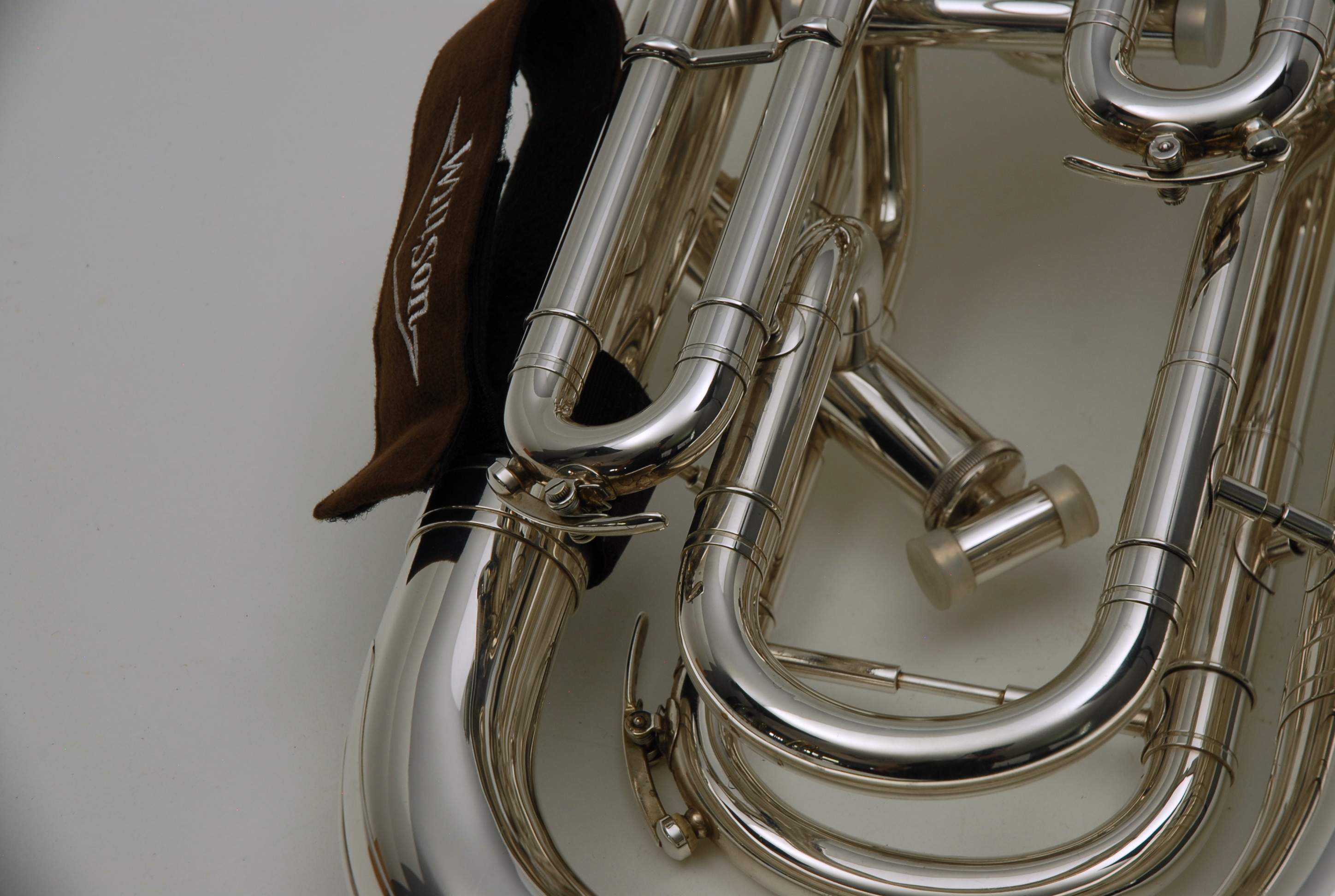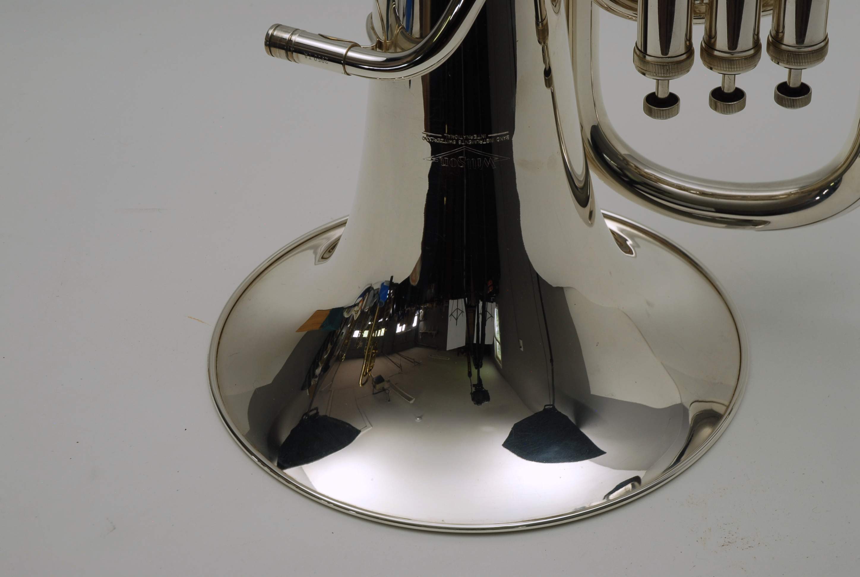 Euphonium Brass instrument, Used Willson Compensating Euphonium 2950TA SN 6077. Pre-owned, Super mint condition. No service needed to improve appearance or playability. Was adult owned and used gently. Horn is as clean as can be and everything functions proper and is without defects, no signs of plating wear. Super fast valve action. Simply a gorgeous Euphonium. This model takes large shank trombone mouthpiece. Other Willson models take Eruo shank, but not this one. Includes a soft case with back straps by Altieri made in Denver, Colorado. Willson Euphoniums sell new in 2024 for $8700 with limited availability.