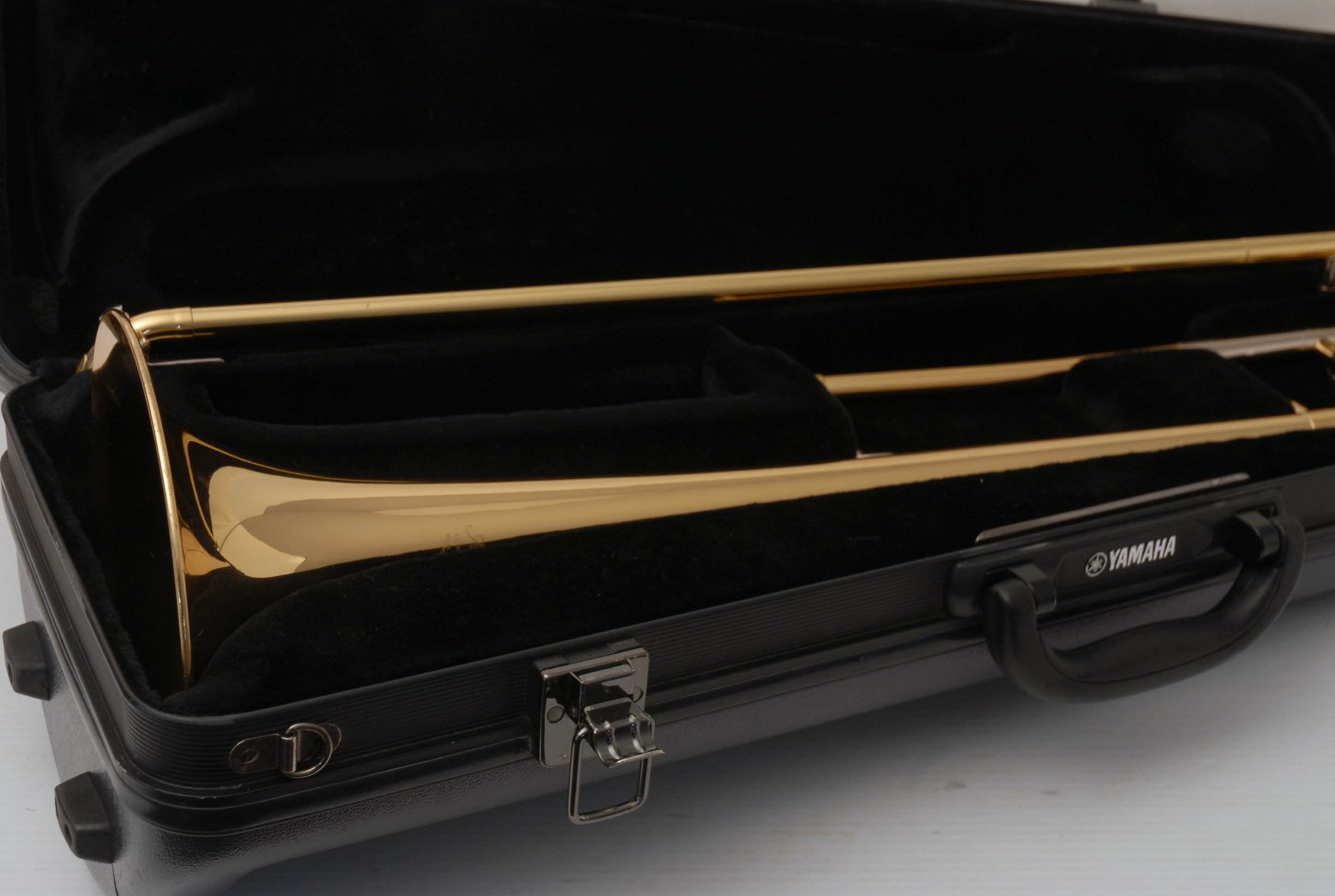 Yamaha YSL-200AD Trombone complete outfit.  This would make a great first trombone for anyone looking to start playing.  It's the ideal size, and comes with case, mouthpiece, and handslide maintenance kit.  It has had a chemical bath/flush and there are no dents or dings, lacquer is in very good, shiny condition.  The handslide is straight and plays properly.  This model will sell new for $1000-1300 at most places, sometimes less.  The only issue on the package is that the case has been cracked around the bell on one side, but coud be taped over with a heavy cloth tape.  Save Now!