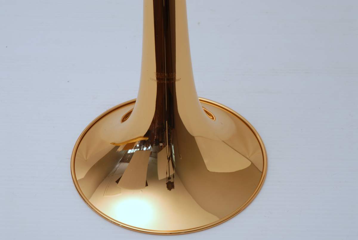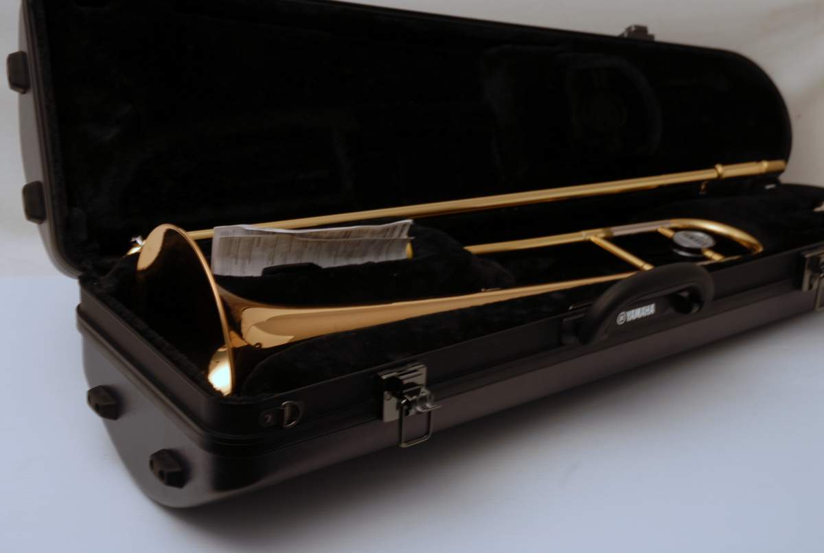 Yamaha YSL-447G Straight Large Bore Tenor. Is like new. Perfect lacquer, excellent slide. Has 8.5" Gold Brass Bell, all other specs are the same as model 448 except no F-attachment on this one. Has a ver small ding on handslide endcrook, the type you get if you accidently hit a music stand. Is very minor, of course reflected in price. Comes with super clean case and mouthpiece. Would be a great horn for anyone looking to play large bore without the trigger. Current Yamaha model sells new today for $1475. Save Now Play Great!