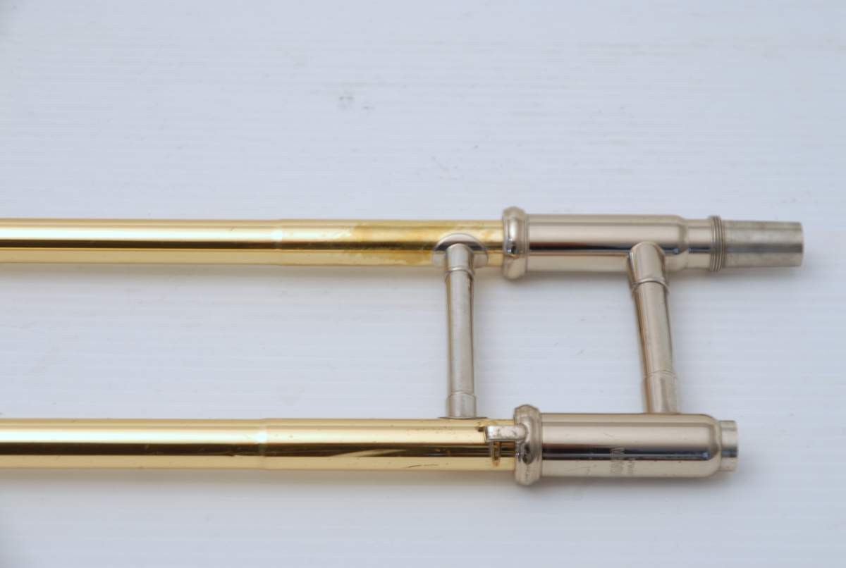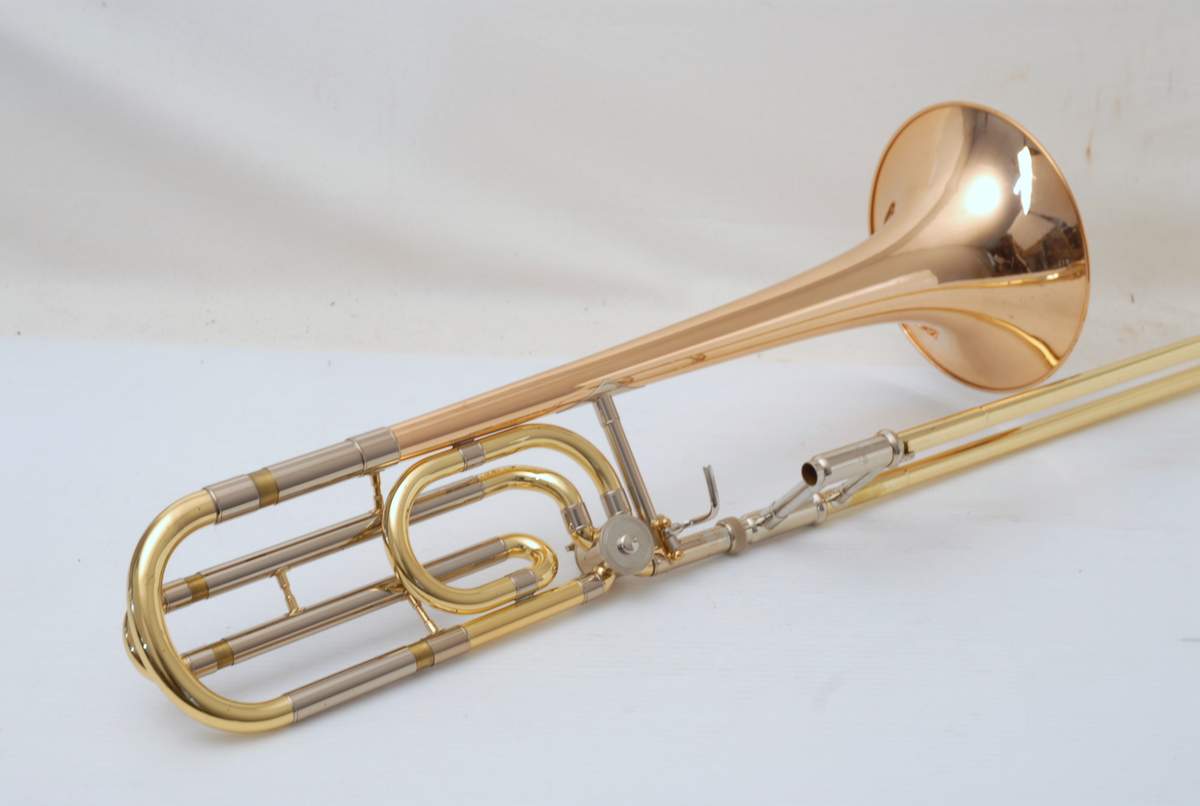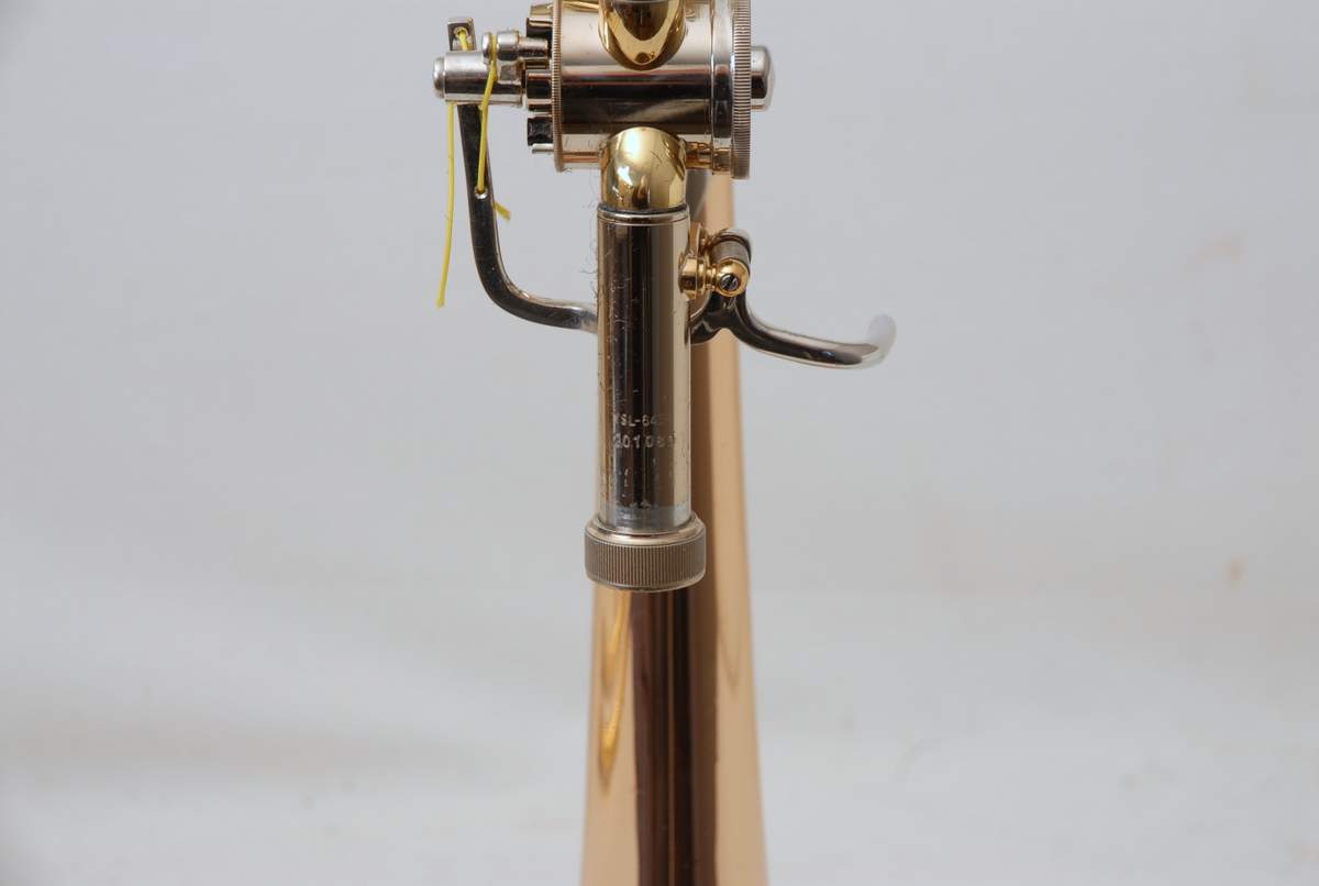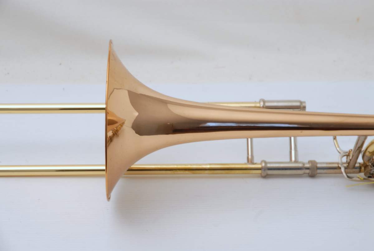 Yamaha 643R Rose Brass Large Bore Tenor. This model is an 88H clone. Has 8.5" bell with traditional rotor and lightweight handslide. Is in overall excellent condition and is super clean. Very Good Handslide, despite chrome defect, which could be fixed by a capable repair tech.  Would make an ideal first large bore tenor for the advancing student. Comes with Case and Mouthpiece. A comparable current production Yamaha sells new today for $2200. Save Now Play Great!