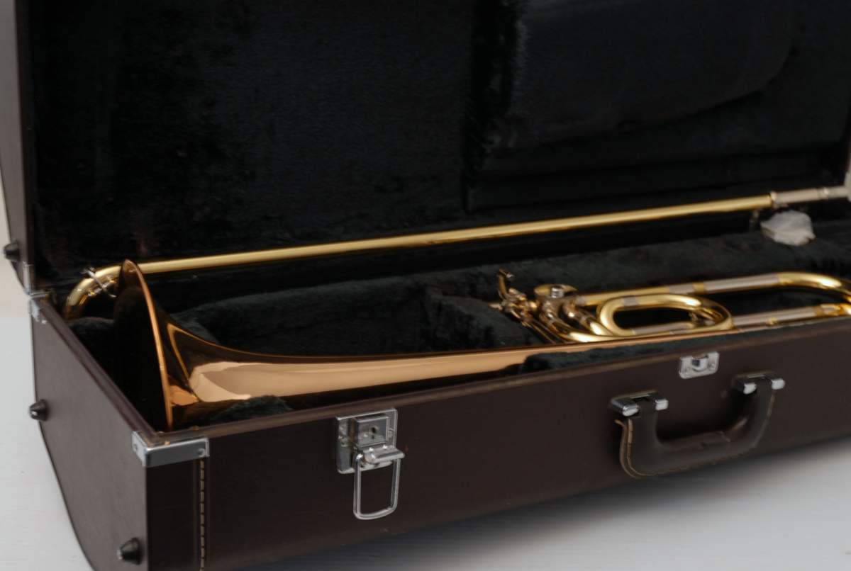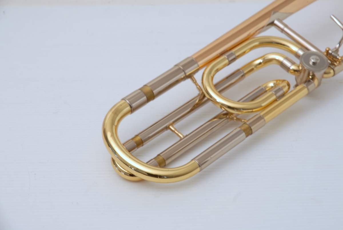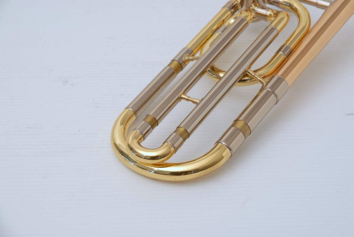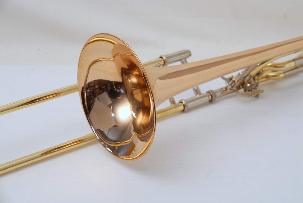 Yamaha 643R Rose Brass Large Bore Tenor. This model is an 88H clone. Has 8.5" bell with traditional rotor and lightweight handslide. Is in overall excellent condition and is super clean. Very Good Handslide, despite chrome defect, which could be fixed by a capable repair tech.  Would make an ideal first large bore tenor for the advancing student. Comes with Case and Mouthpiece. A comparable current production Yamaha sells new today for $2200. Save Now Play Great!