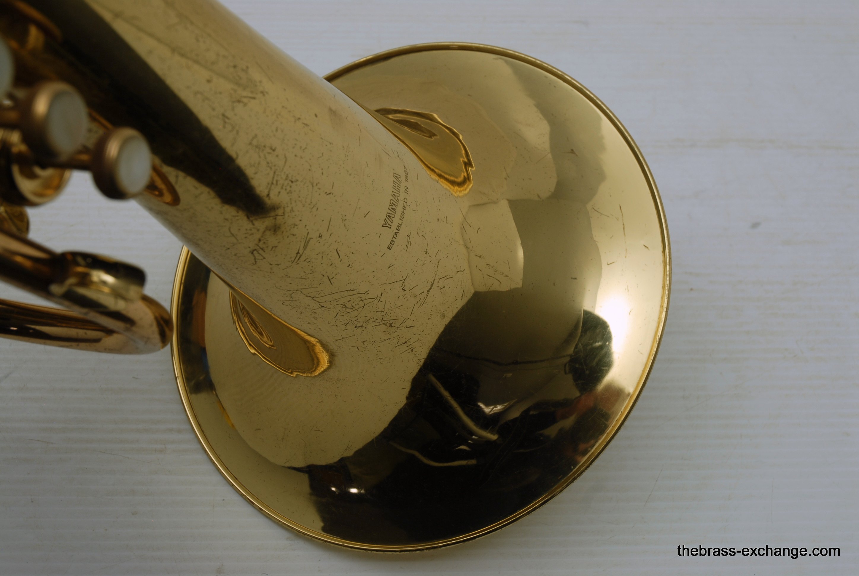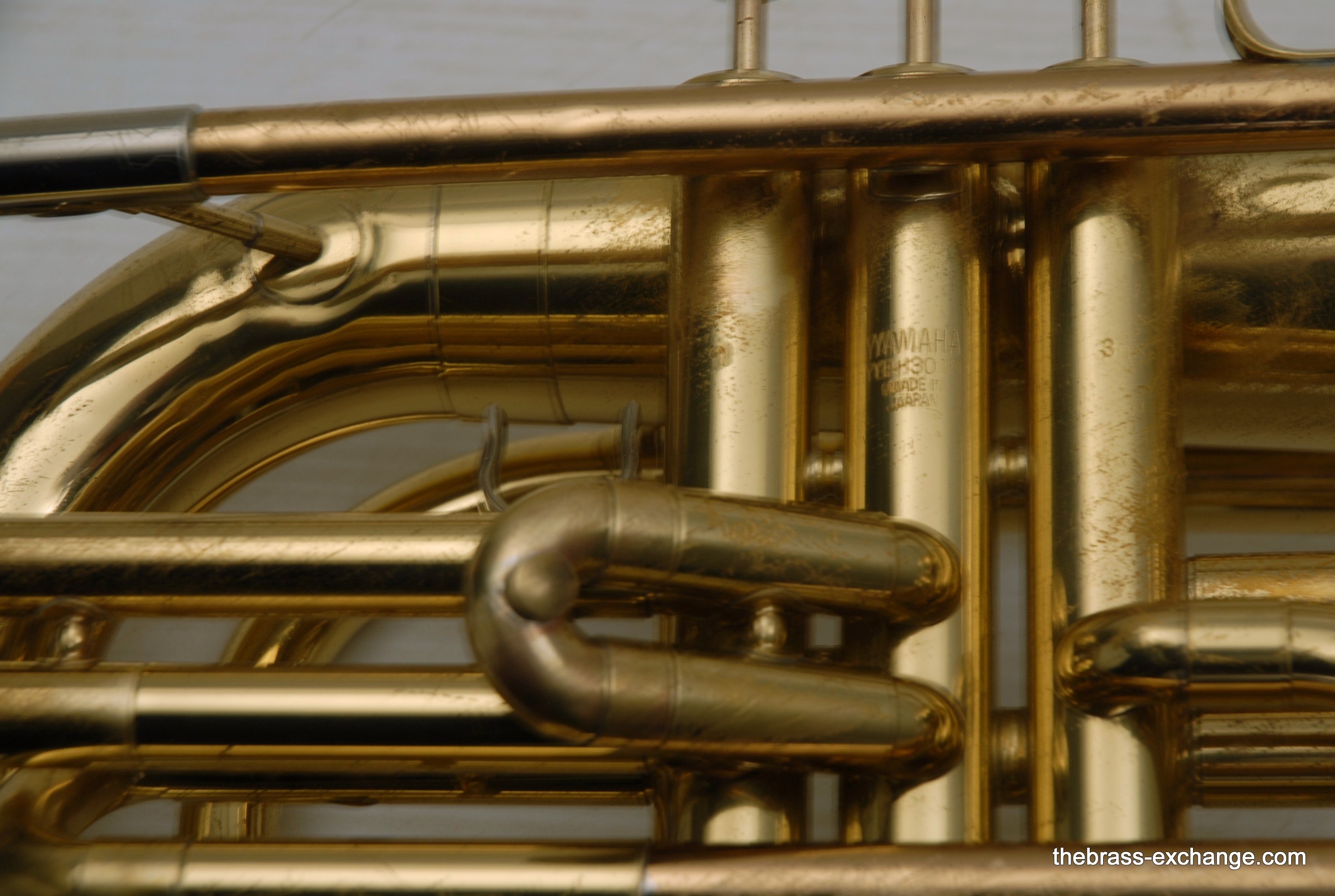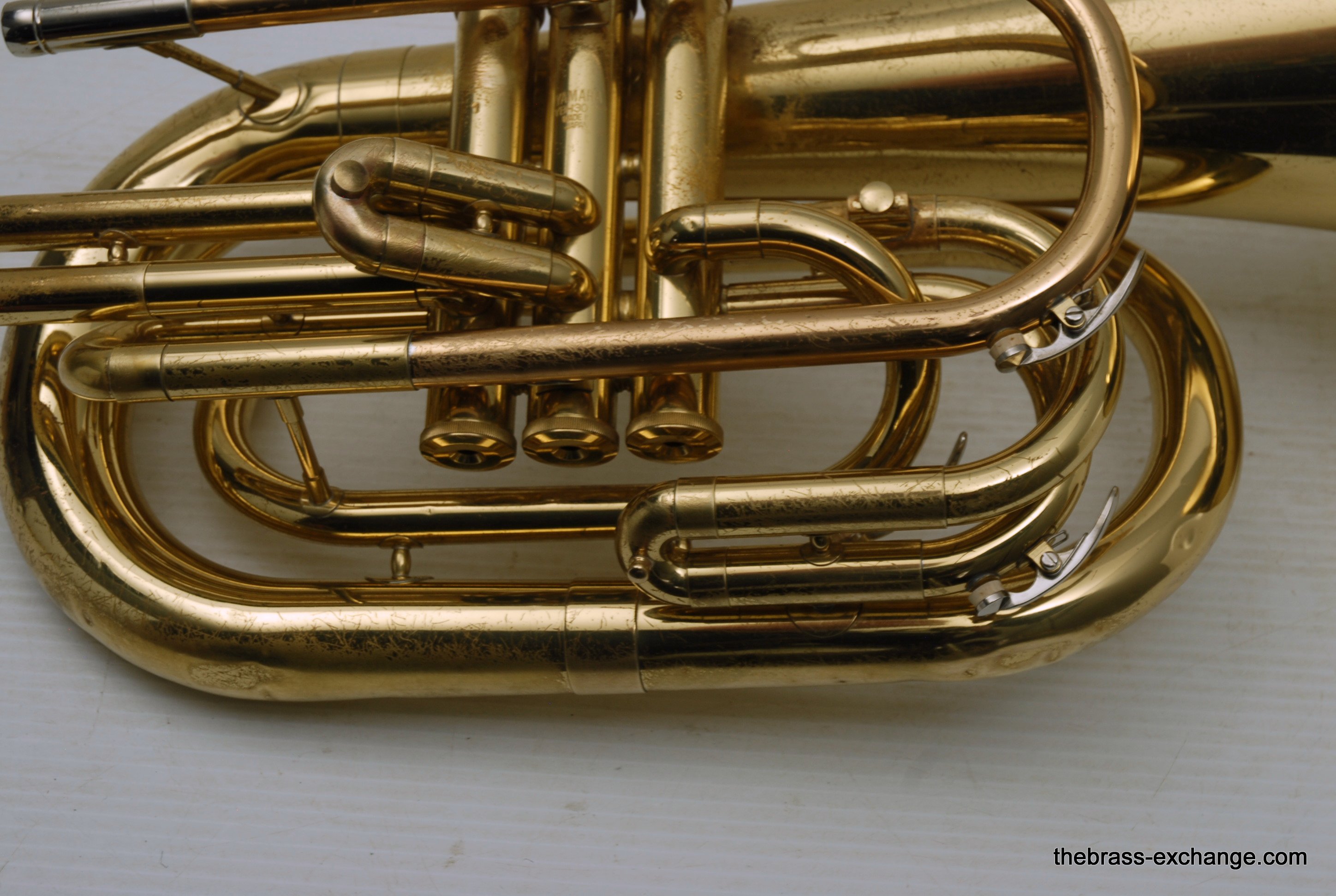This Yamaha YBH-301M marching baritone is a true DCI-style horn, designed for performance on the field with a centered tone and excellent projection. This example has been fully serviced here at The Brass Exchange, including a chemical bath, new pads and felts, and a complete mechanical check.