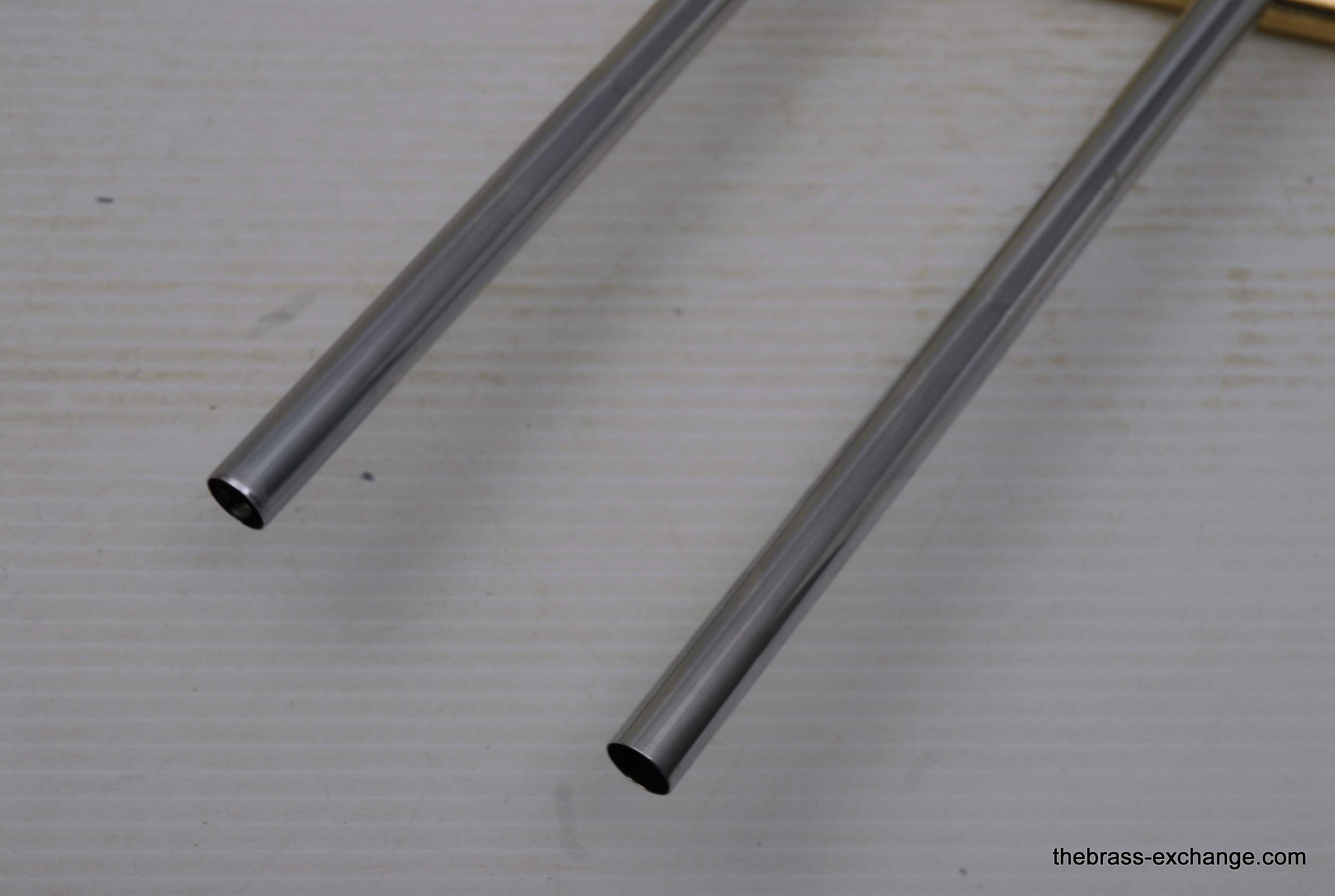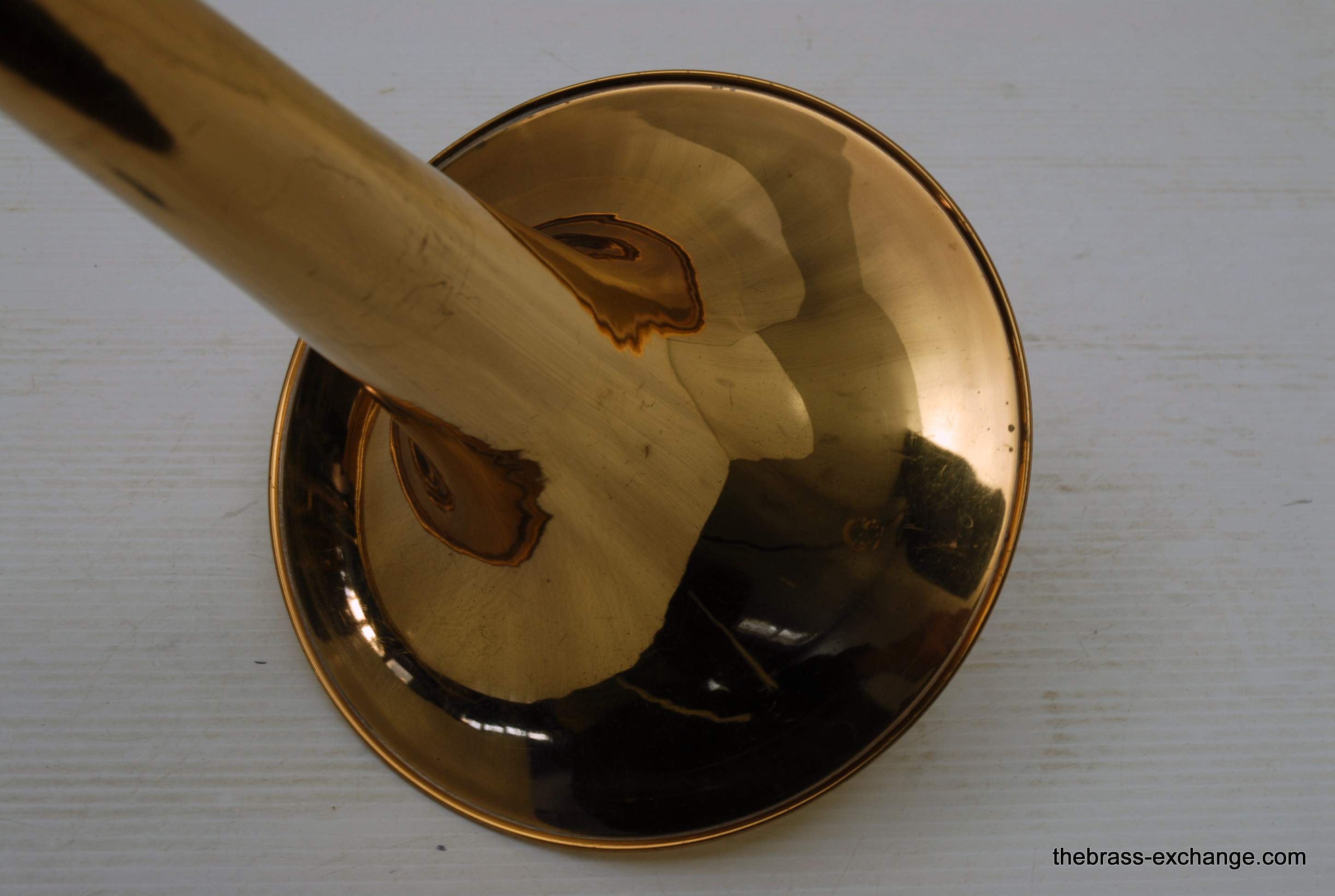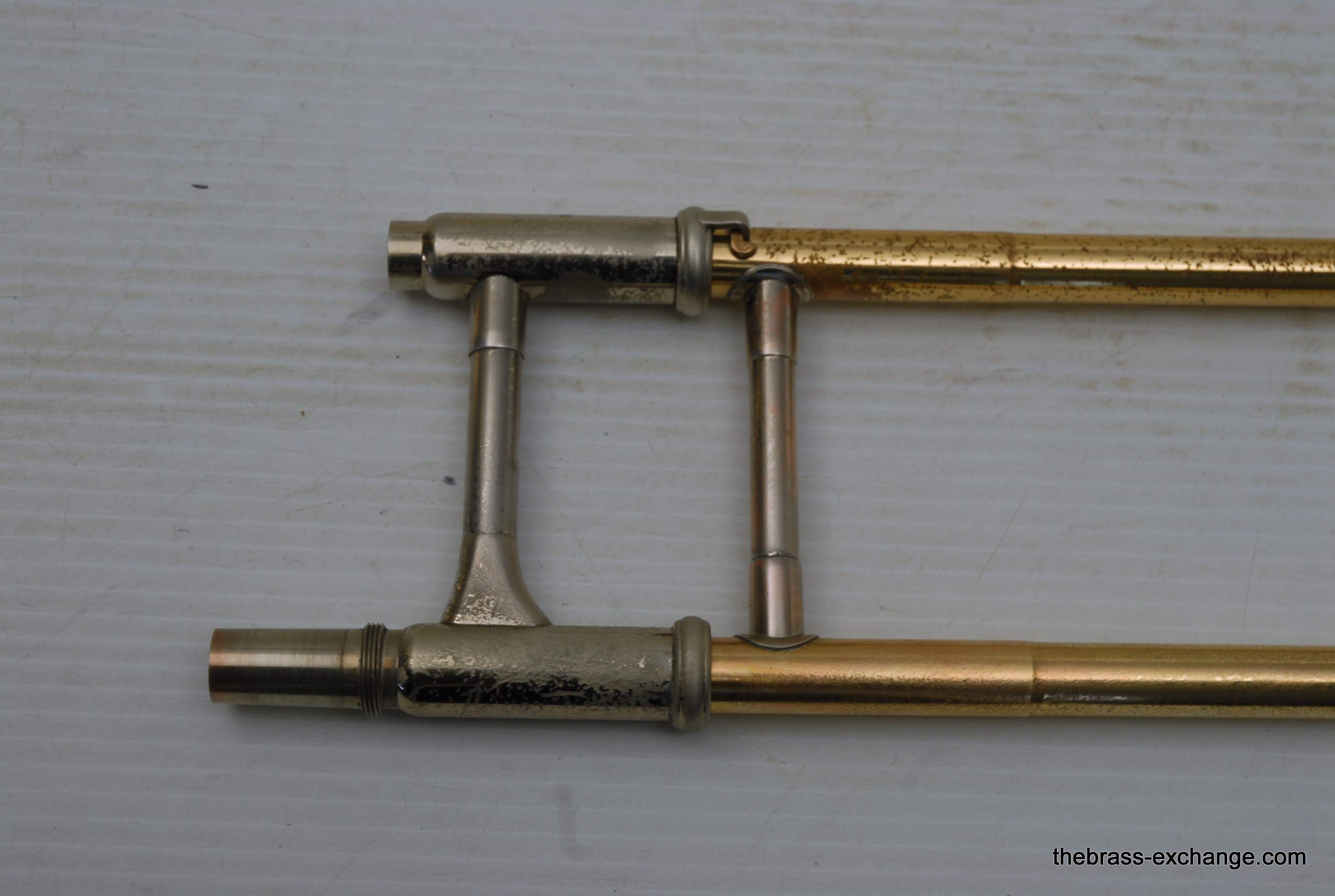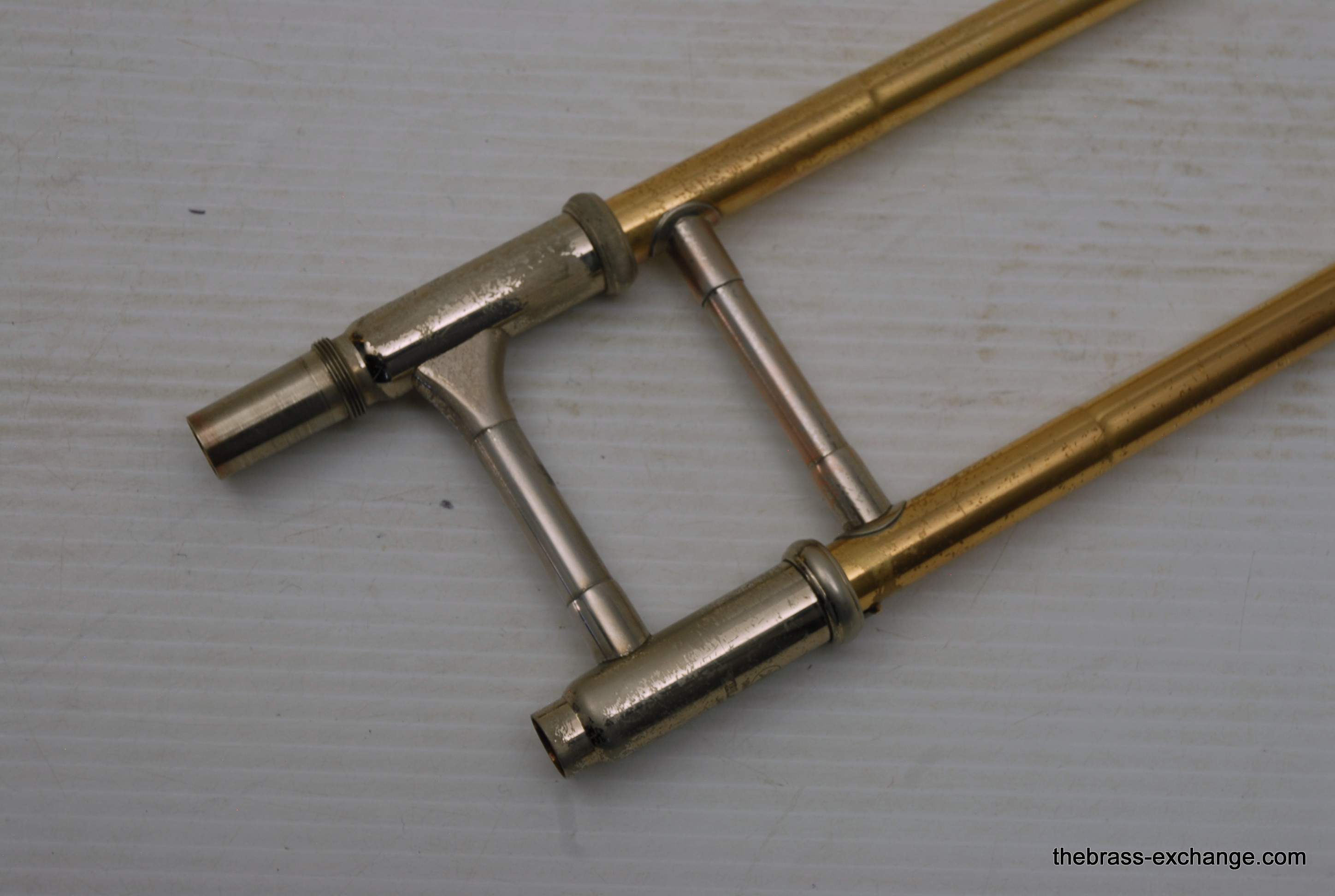 Yamaha YBL-612G Bass Trombone, Used Bass Trombone.  This model was produced between 1985-1991.  Has 10" gold brass bell.  Dependent rotors with modernized split triggers, done in St. Louis. The second valve tuning slide has an extension which enables you to play it as Eb or D with both valves in.  Yamaha’s are known for good valve sections.  This bass trombone has had full shop service including chemical bath and a once over on all of the components, and of course play tested.  No dents/dings or need to visit a repairman, we just set it up. You may be able to inspect it closely and see remnants of minor dings removed but not much.  This one does have a proven track record with results.  Will not disappoint any advancing player. Is a very nice entry level pro bass trombone.  Includes case, fresh lubricants and slide set up. In stock for immediate delivery.