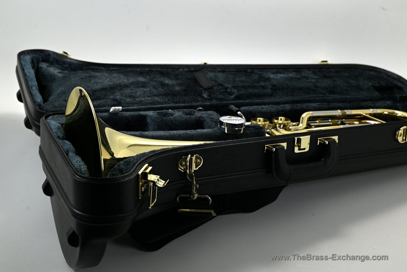 At the time of archival placement, the instrument remained in like-new structural and mechanical condition. Valve action was smooth and fast, the .562 straight-bore slide was tension-free, and the 9.5" yellow-brass bell exhibited only faint cosmetic marks common to light professional ownership. Included with the instrument was the original Yamaha flight case and optional balance weight.