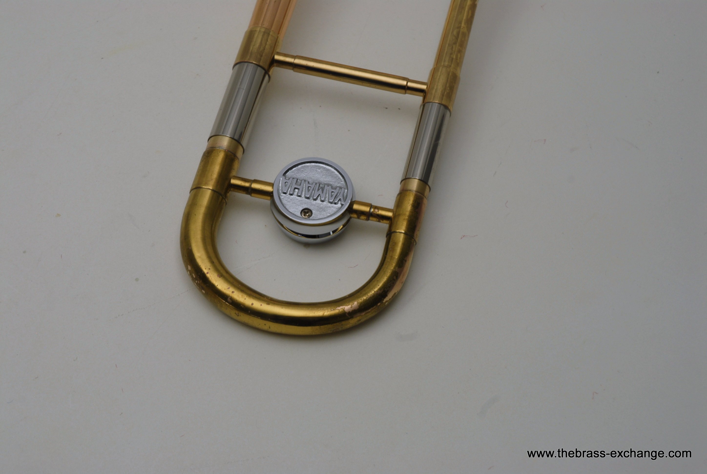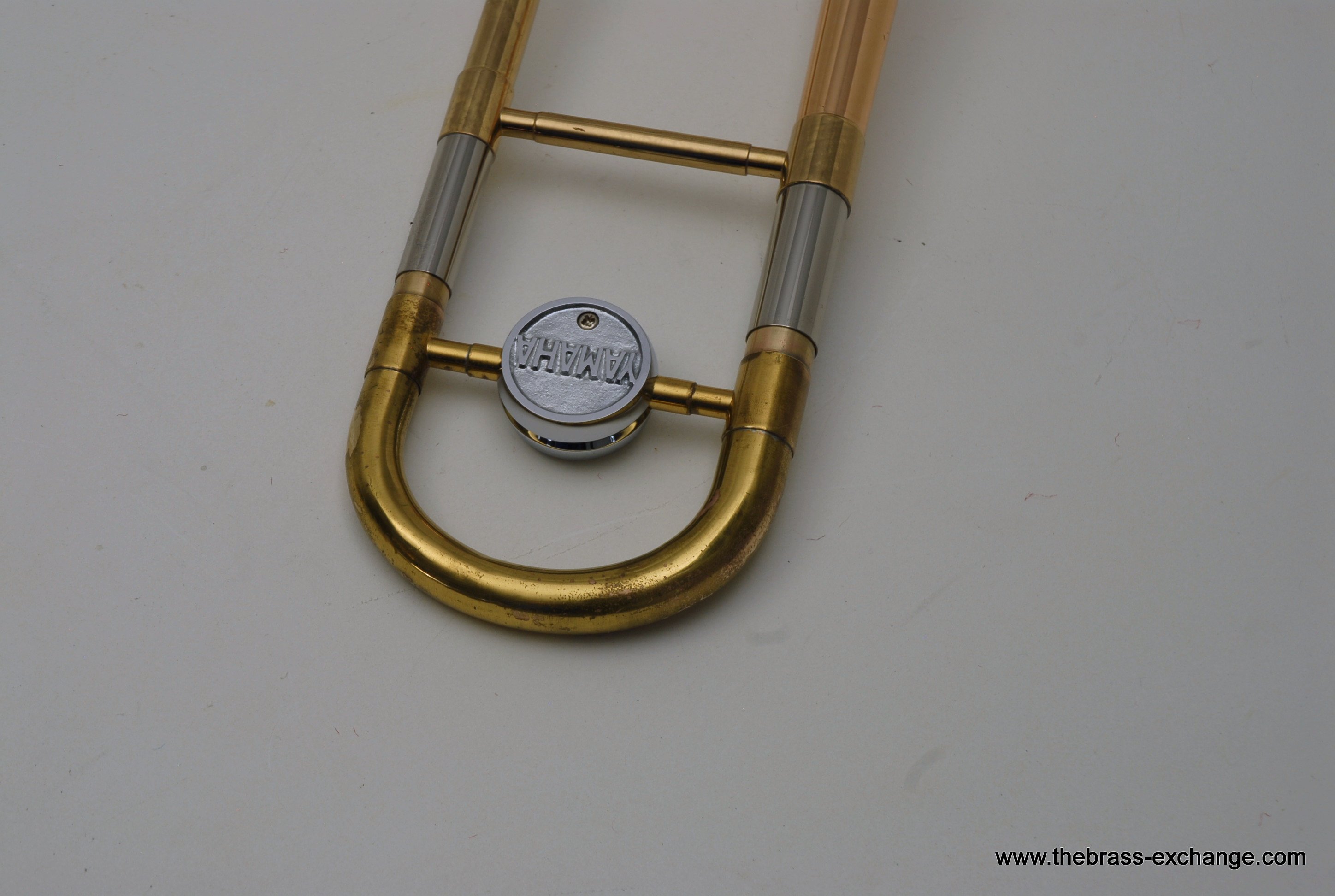 Yamaha YSL-351 Student Model Trombone.  Pre-owned, in excellent playing condition.  We did full shop service here including chemical bath and complete once over.  No dents or dings, minor lacquer wear on a few areas, but overall a very gorgeous horn.  Hand slide is excellent and without defects.  Has 8" Rose Brass Bell, .500 bore handslide, the same specs as the YSL-354 model except this YSL-351 is the Rose Brass Version.  Rose brass is a beautiful sound, plays darker than yellow.  Plus, as a parent, it is easier to spot your favorite trombone player on stage or in a marching band, with a Rose brass horn, because most of the other students will be playing on standard yellow brass.  This would be an excellent starter horn for any player, adult or student, especially if you are looking to avoid high rental prices and are looking for quality.  Will not disappoint.