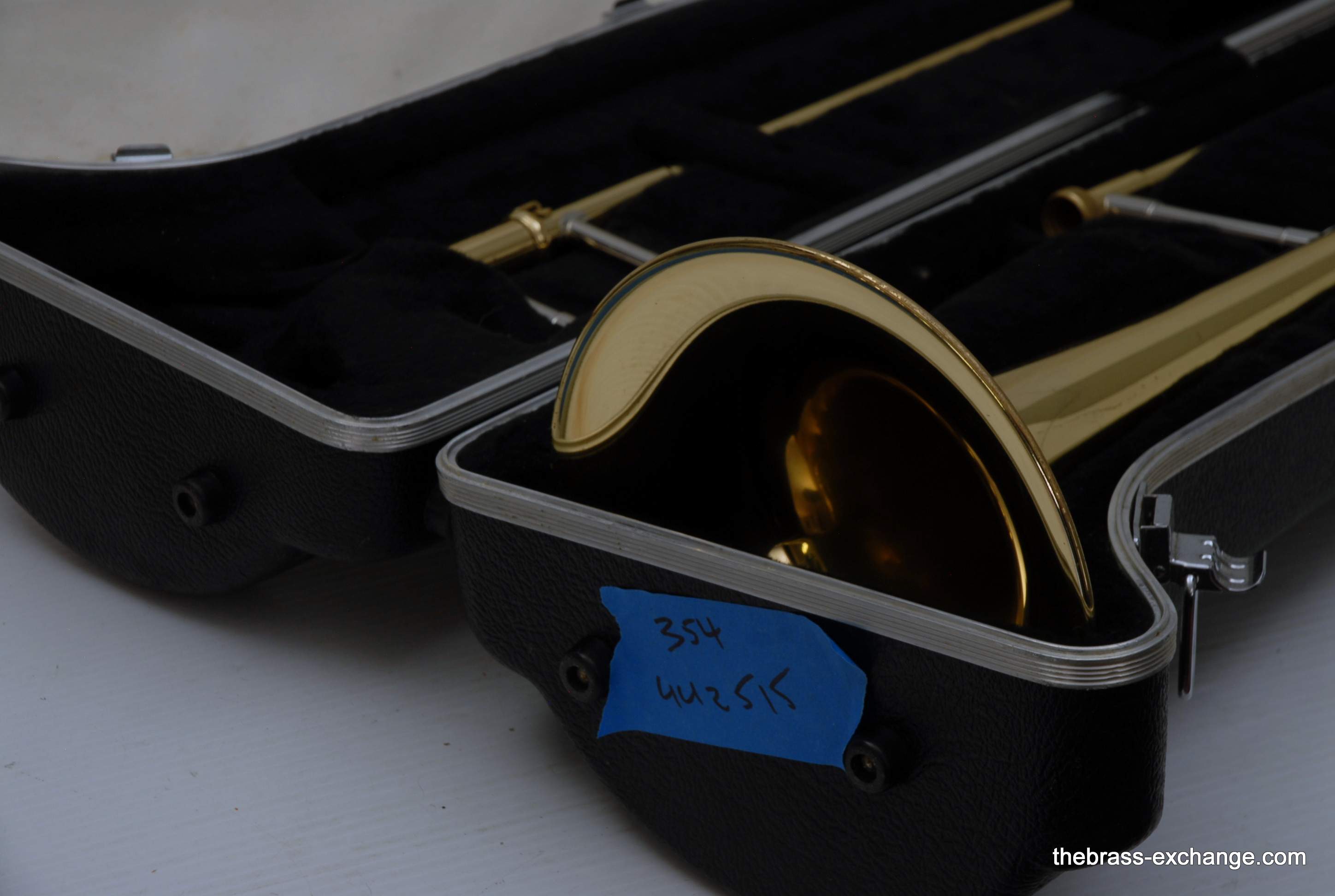 Yamaha YSL-354 Super Nice Condition. This is the top Yamaha student model straight tenor and is also the top recommended starter trombone my the majority of band directors today. Has 8" Yellow Brass bell and .500 bore handslide for small shank mouthpiece. All original parts and lacquer. No issues with slide or playability. Never damaged or repaired other than the full shop service we did here including chemical bath and once over. Is ready to put back into play. Perfect choice for newcomer or come back guy, or anyone looking for a nice Yamaha 354. Has yellow brass 8" bell and standard .500 bore slide. Original case. Mouthpiece also included. These sell new today for $1500 at most music stores. Save now! Pre-owned all the way!