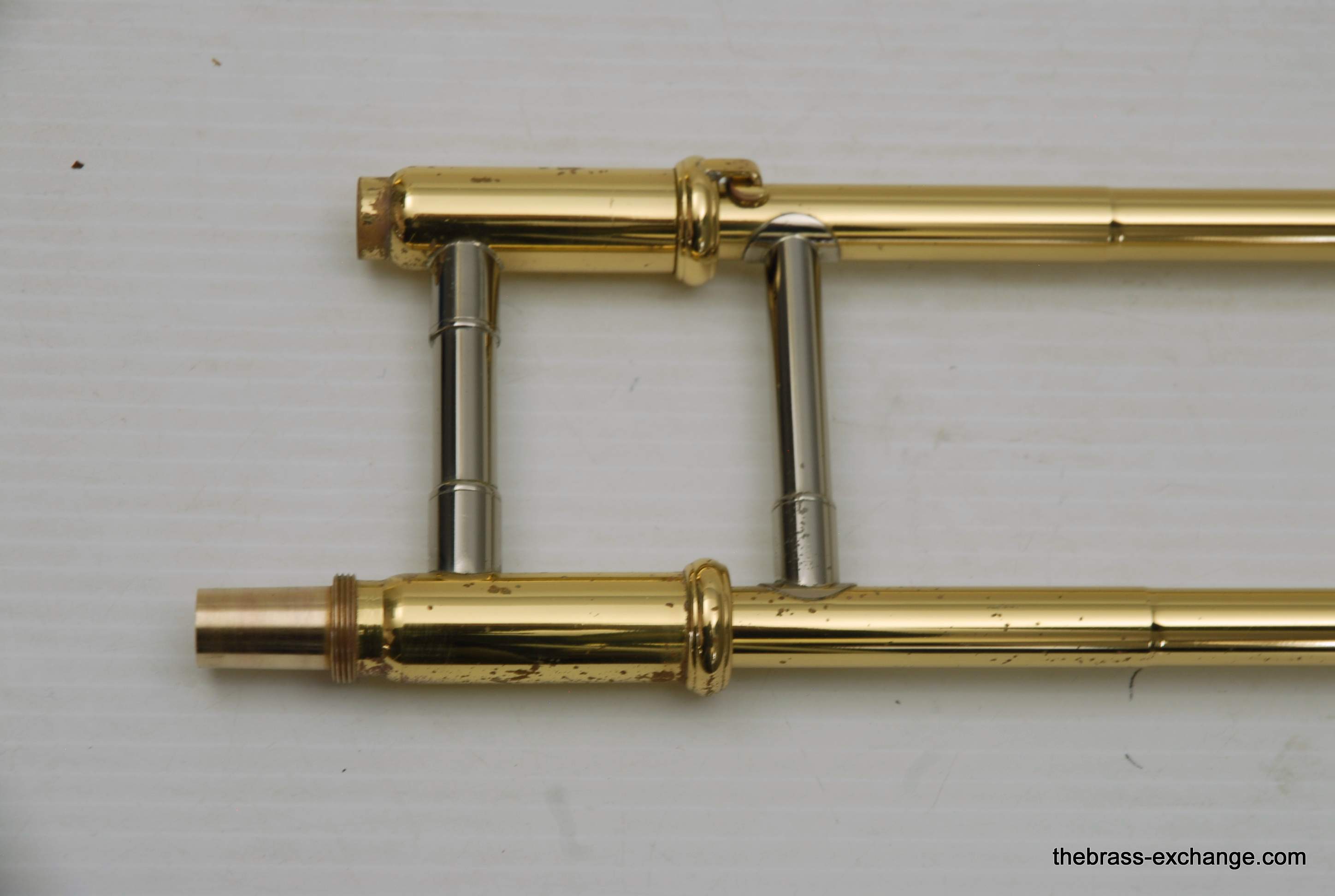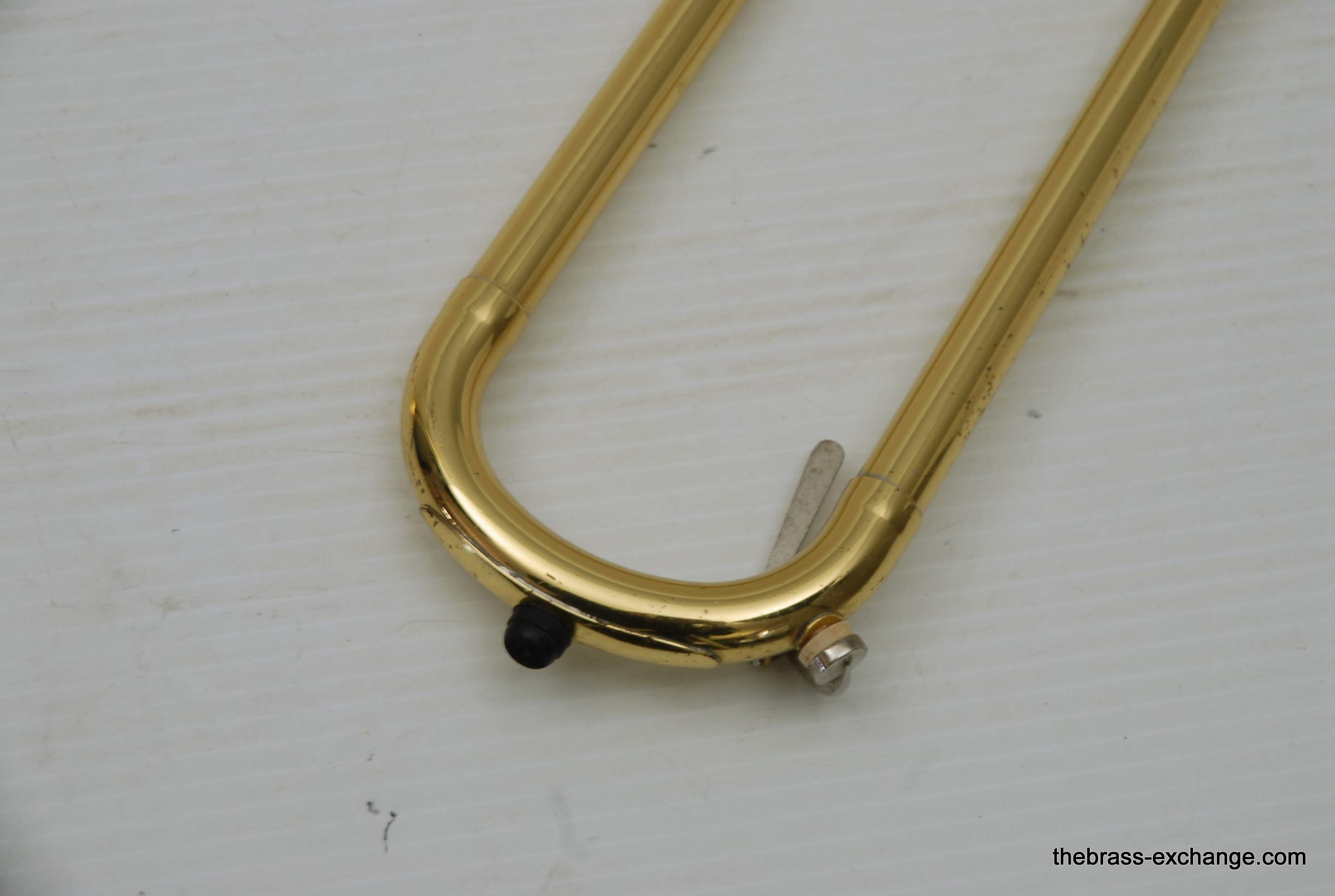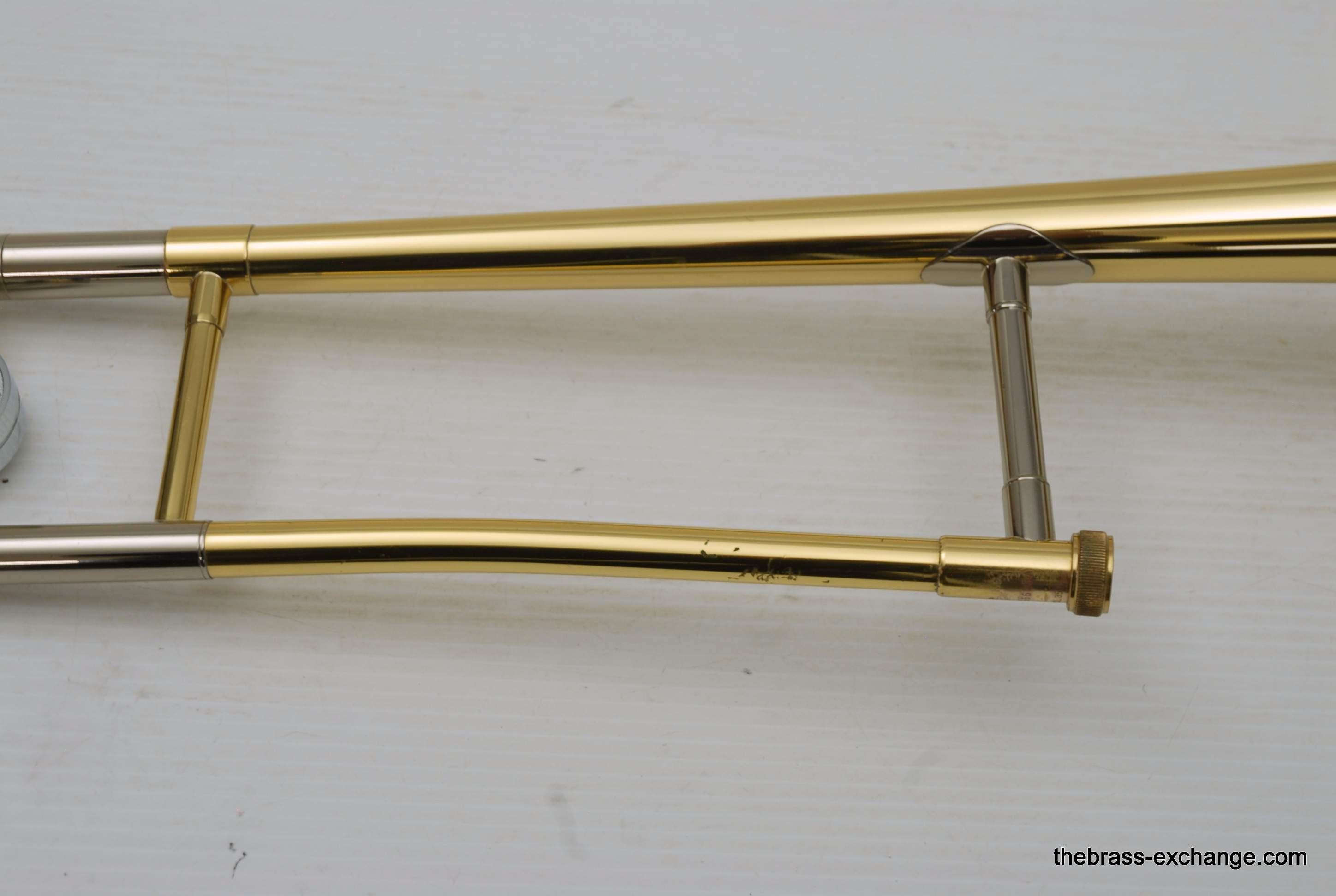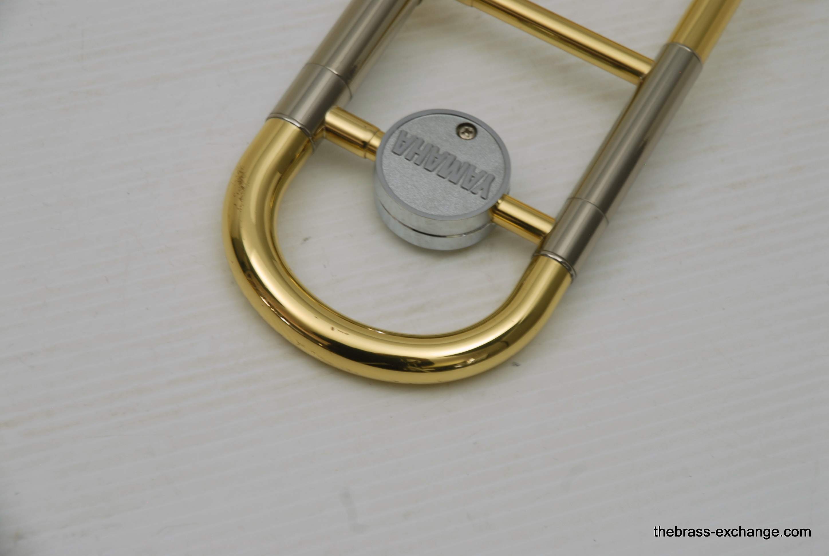 Yamaha YSL-354 Standard Model Student Trombone, pre-owned. Has had full shop service including chemical bath. Never damaged or dented up badly. Has a fantastic slide and plays 100% proper. There are several models of student trombones that we gravitate to here at TBE, the YSL-354 is a workhorse for a student model. Has 8" Yellow brass bell and .500 bore handslide. It's just the right size for any young or adult player just starting out. But, the thing that we like the most about the model is reliability, not just mechanical, but sound, and pitch. The slide positions are in the right place and it's just an easy horn to play. I know of many professional players today that started on this model. Yamaha also makes the YSL-200AD model, also a nice student horn, same specs, but we don't feel that the materials and quality are as good as the YSL-354. Includes case, and mouthpiece. This model sells new today for $1499 online. Some local dealers may sell for less. This pre-owned one is a good value. In-stock for immediate delivery.