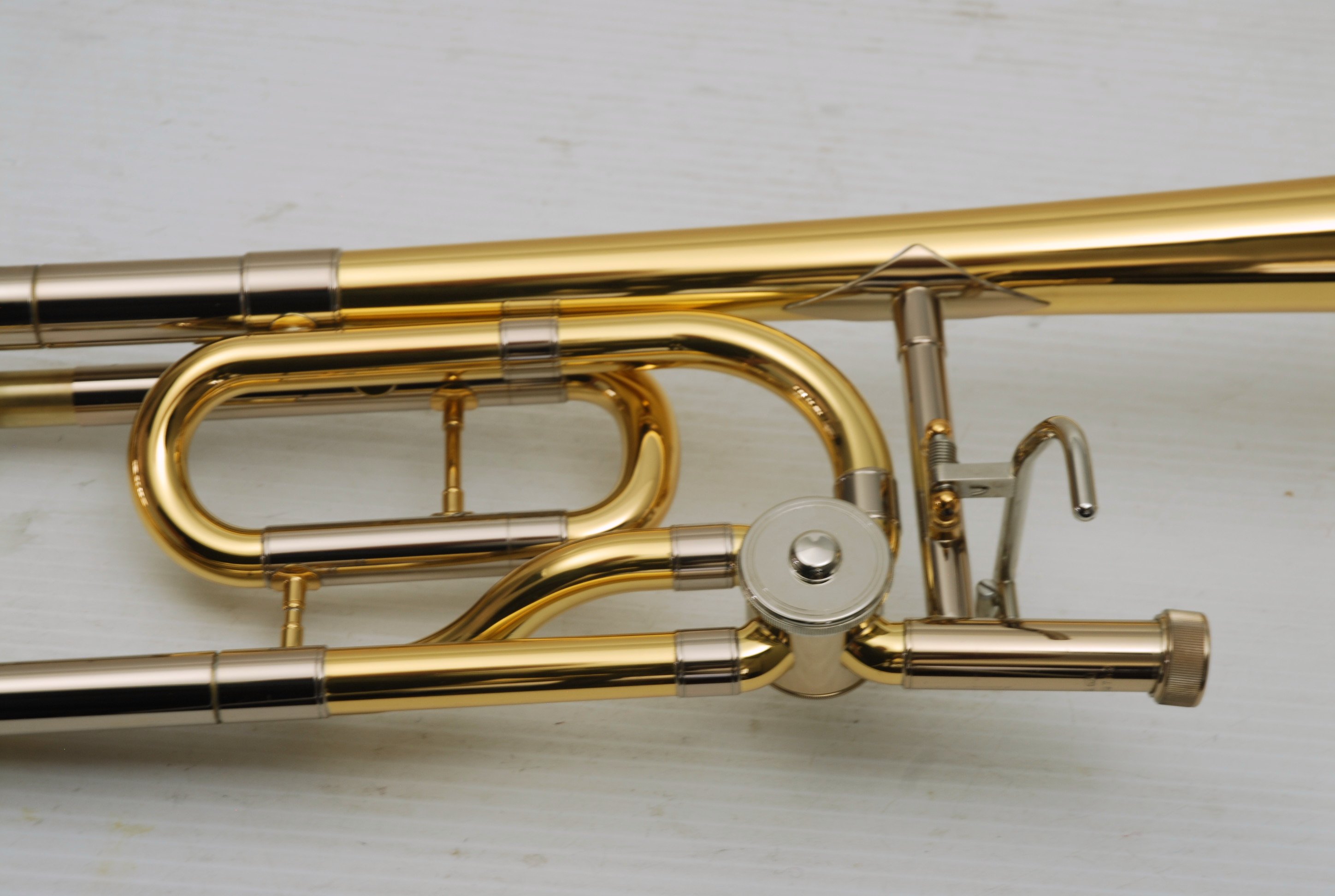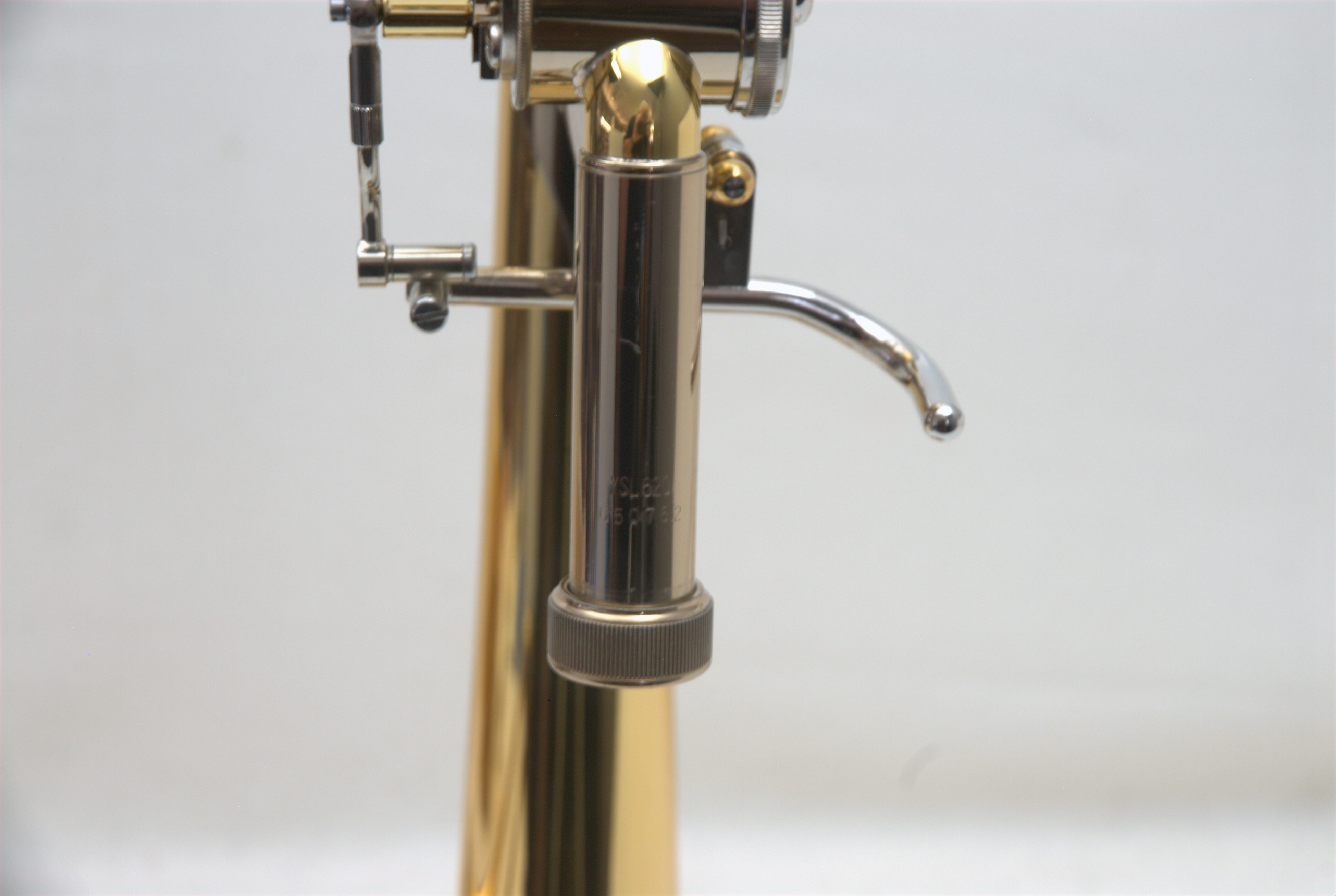 Yamaha YSL-620 Large Bore Tenor Trombone with an 8.5" yellow brass bell and a lightweight .547 bore handslide. Single-owner horn, lightly played, with no damage or prior repairs. It has received a full shop service, including a chemical bath, and is in top playing condition. The rotor is responsive and smooth, and the handslide action is excellent. This would make a fantastic step-up instrument for an advancing player, or a solid choice for any trombonist looking for a versatile large bore tenor in this price range. Includes the original Yamaha case in excellent condition, mouthpiece, and accessories. A new YSL-620 sells for over $2,200 today — but this one is just as good, if not better, having been fully inspected, serviced, and tested by us. Save now. Play preowned!