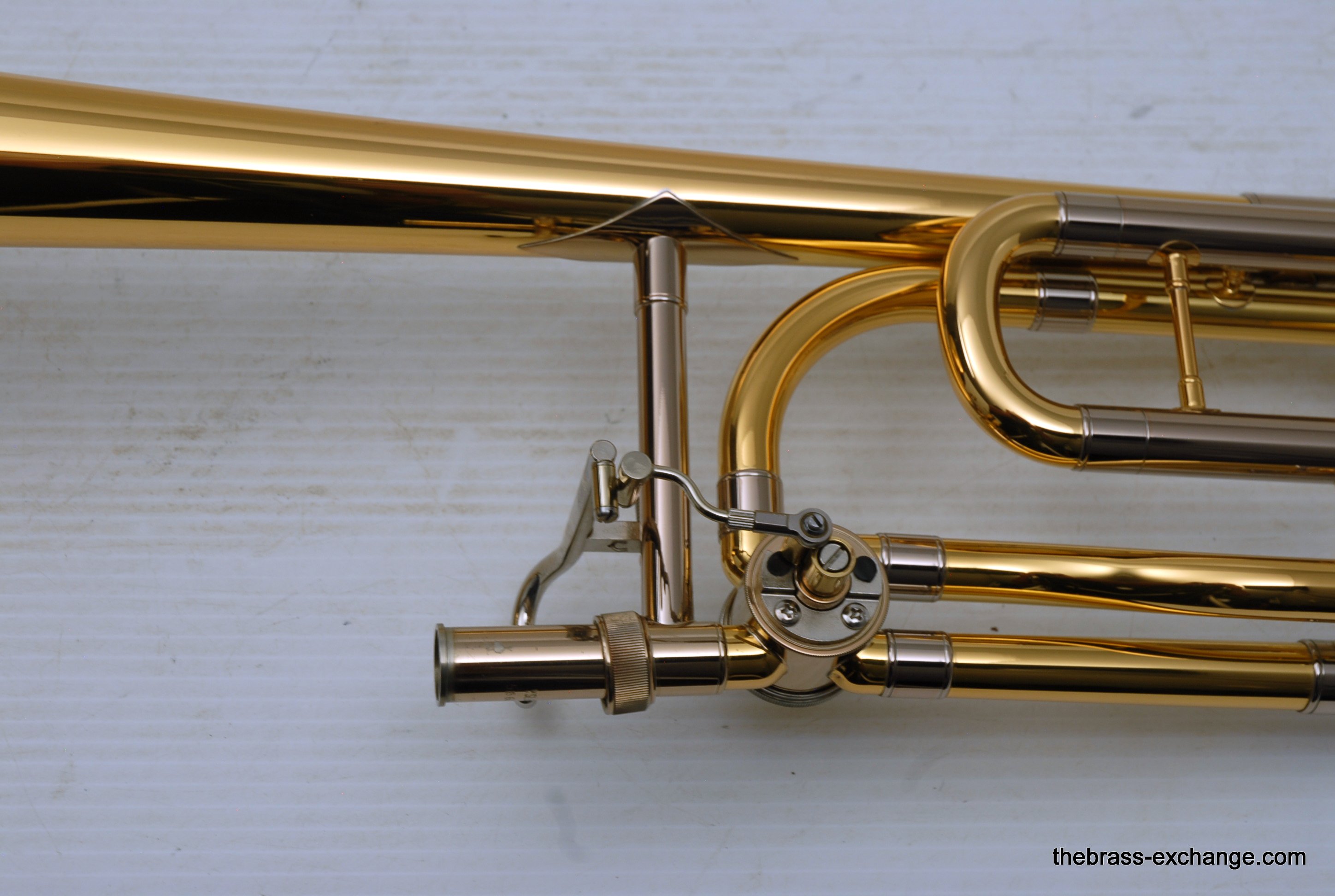 This archived example featured a wide slide modification performed at the Kanstul factory, increasing the distance between the mouthpiece and bell. For many adult players, this modification provides noticeably improved ergonomics — particularly for those who want more physical room at the neck and face without committing to the added resistance and air requirements of a .547 bore instrument.