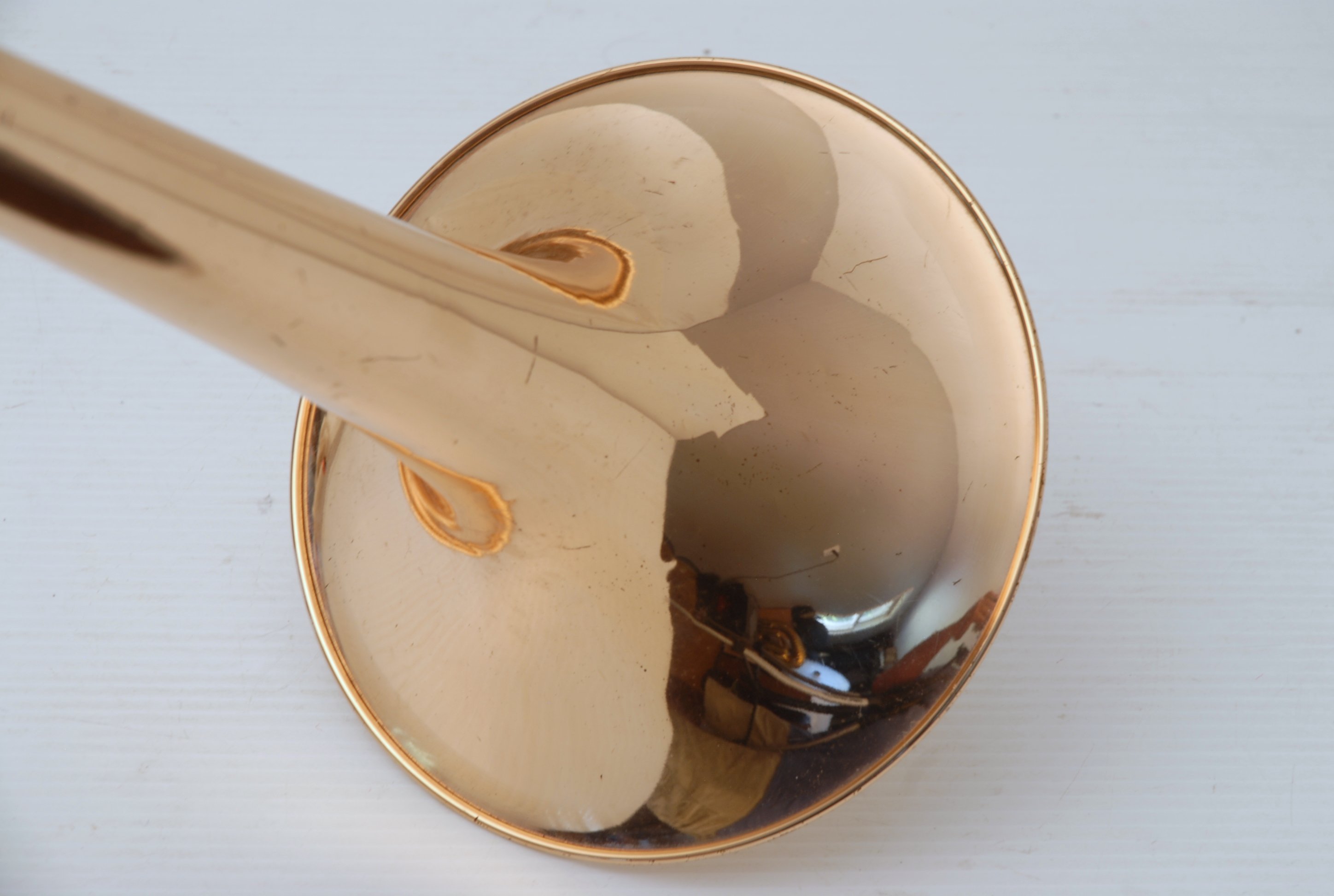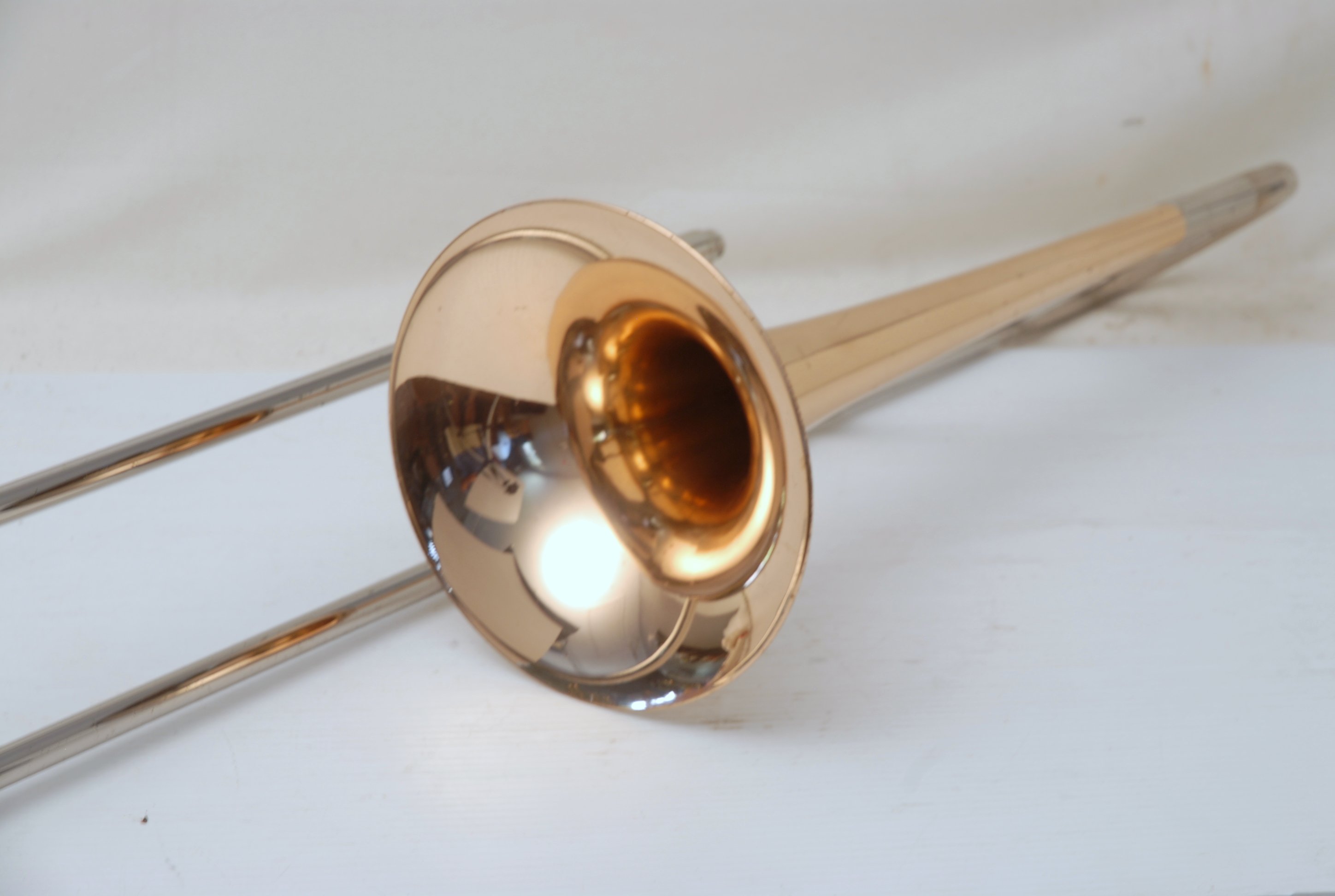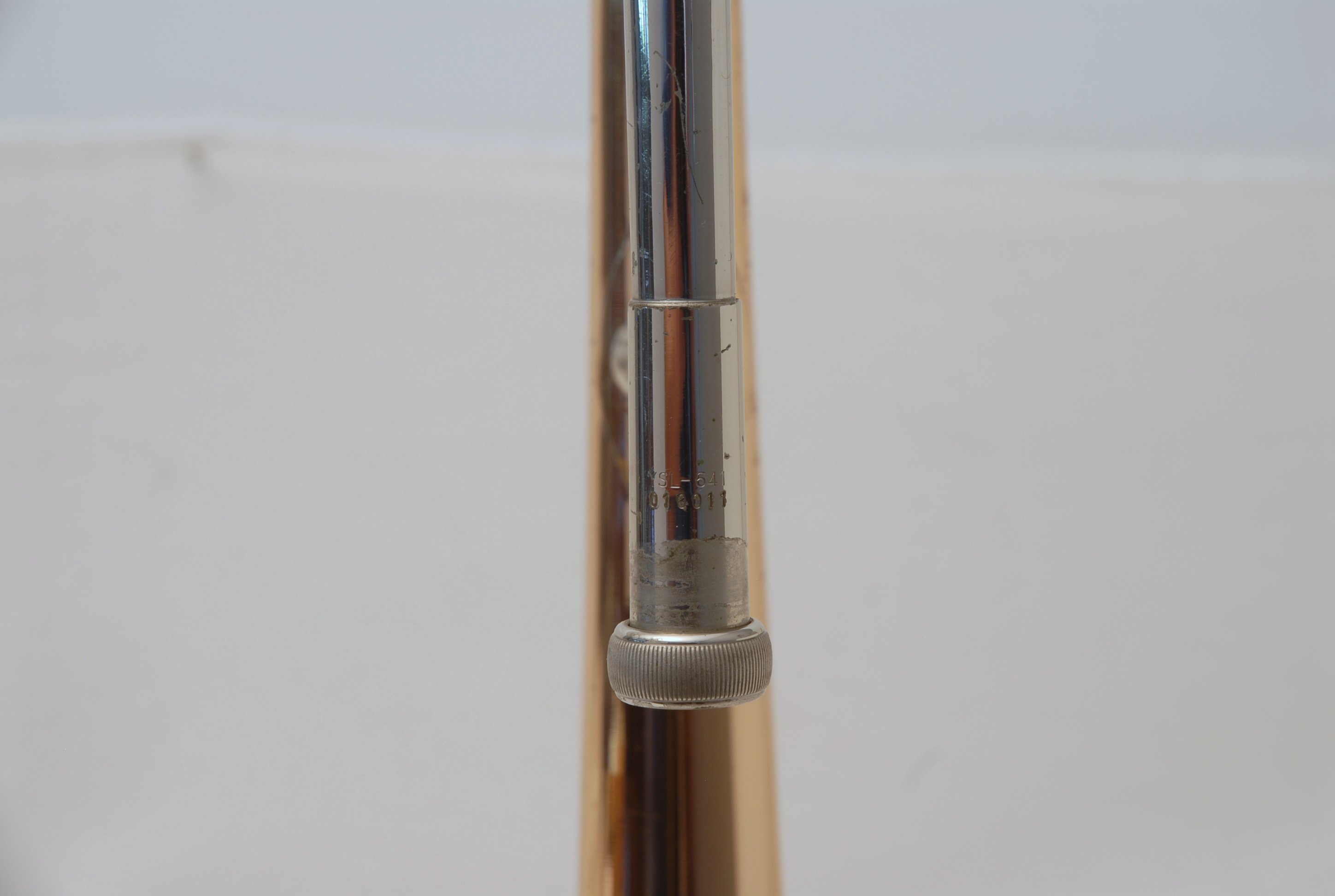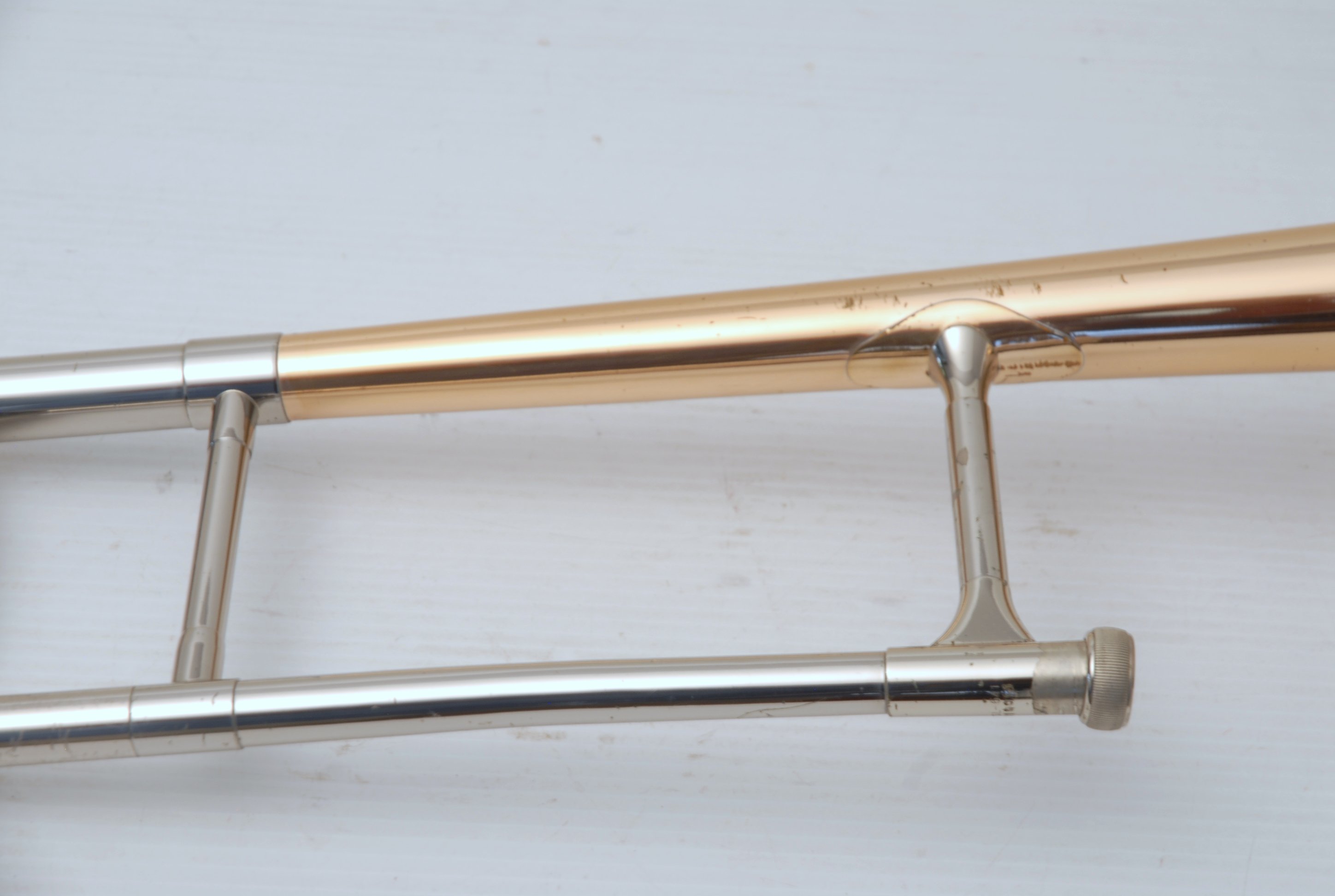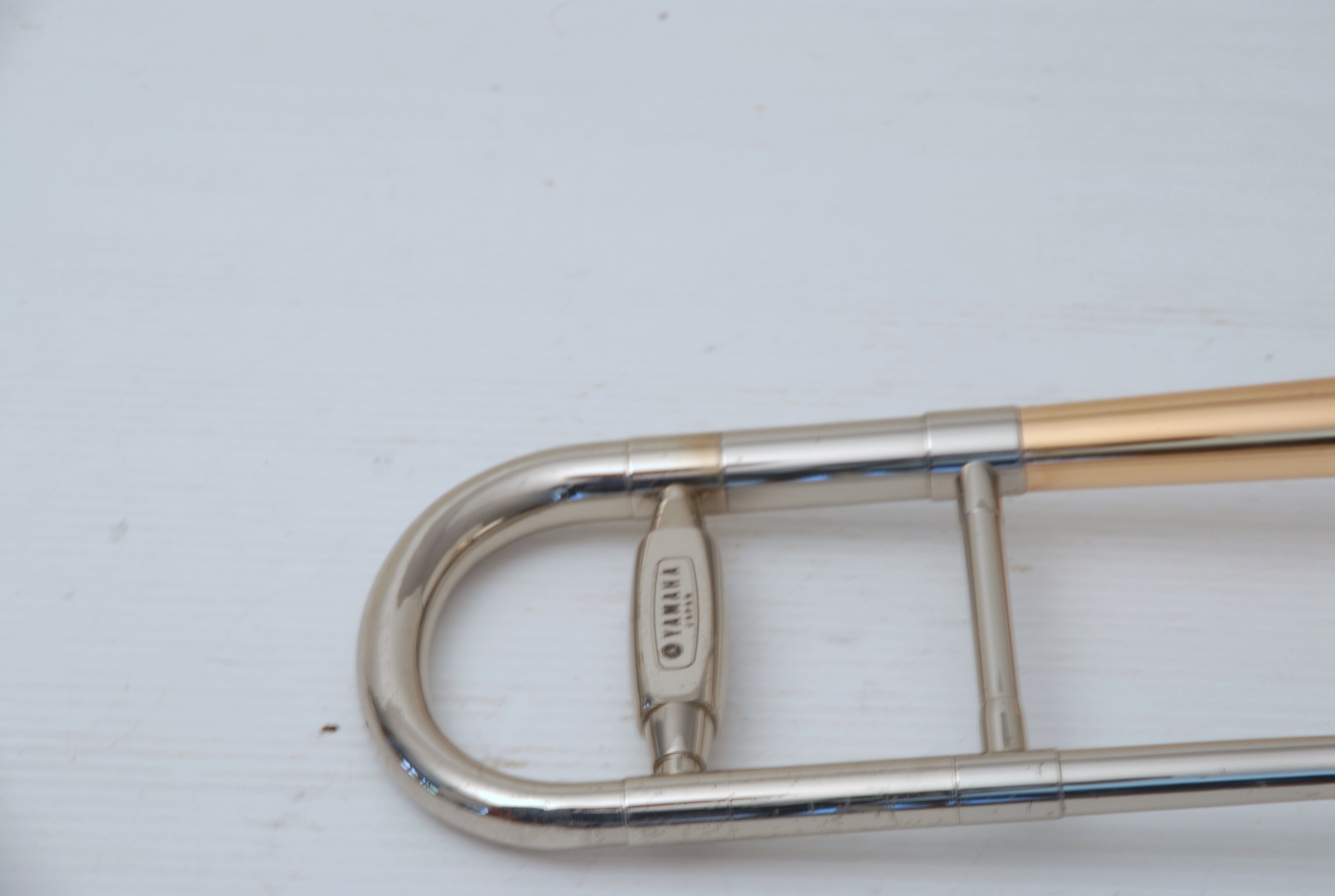 Yamaha YSL-641 Large Bore Tenor.  Has Rose Brass Bell, with .547 bore lightweight nickel silver handslide.  This is a used horn with some lacquer wear and surface scratching, yet no dent's or dings.  Handslide is very straight and smooth, plays easily.  Some discoloration on the nickel inners around 2-3 position, but is still a very good slide.  Comes with excellent condition Yamaha case.  Would make a great large tenor for advancing student or adult player looking for more sound than just a basic student horn.  This was a top of the line model in the 1970's & 80's.