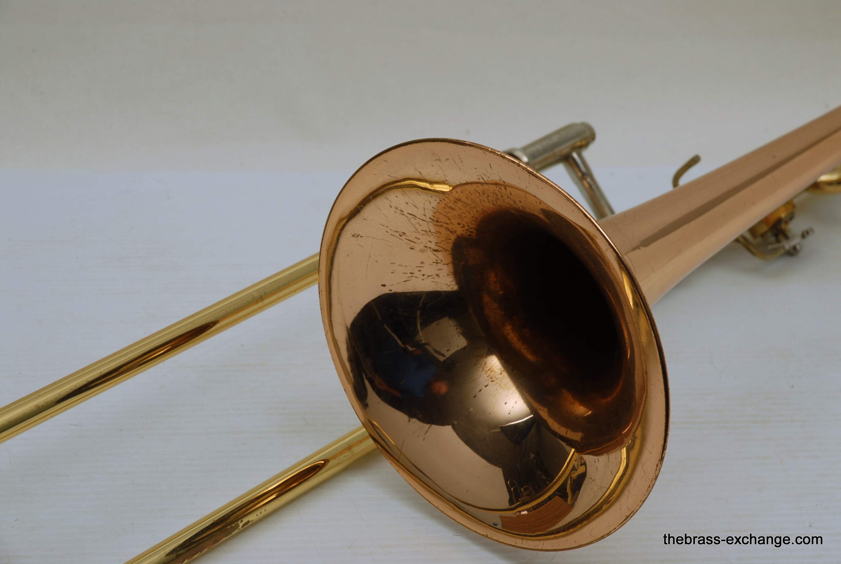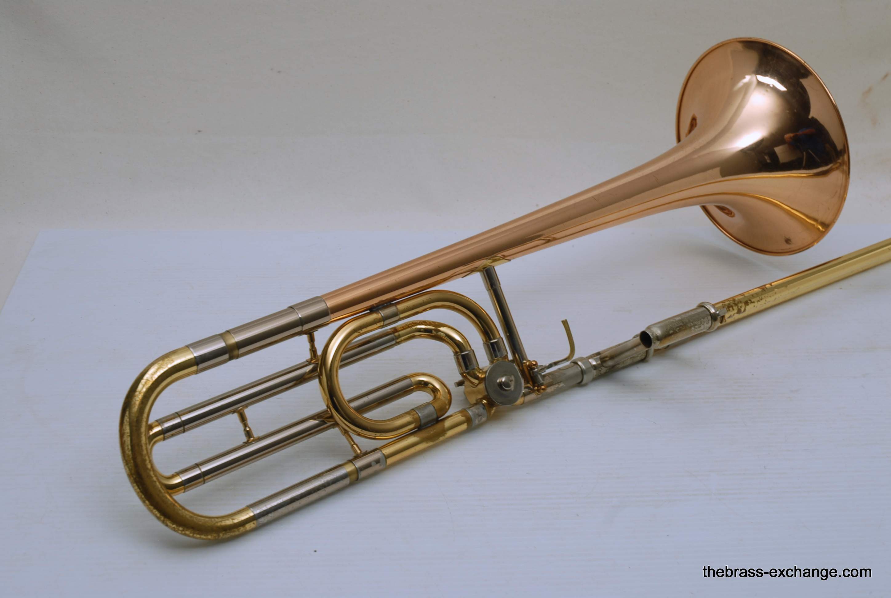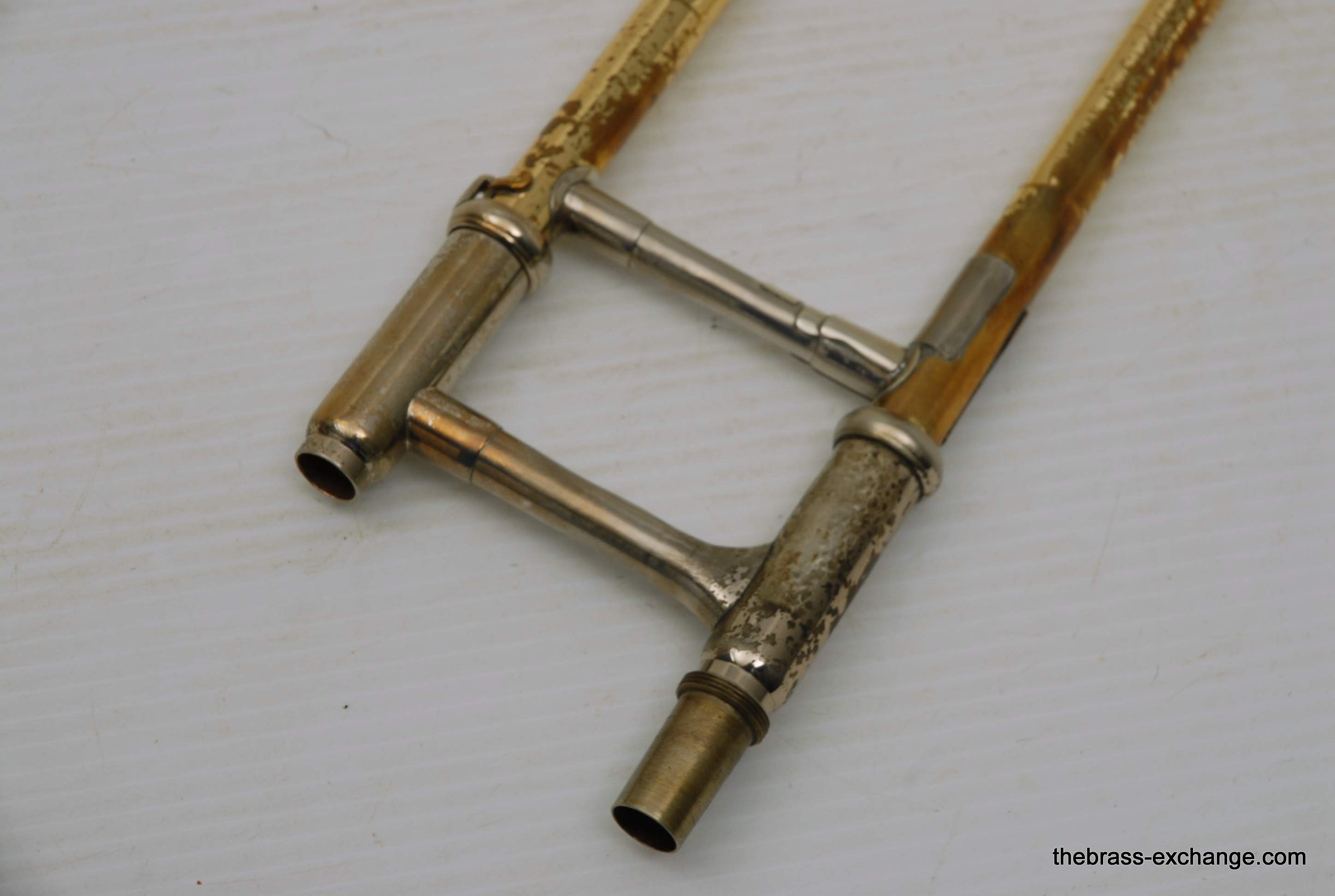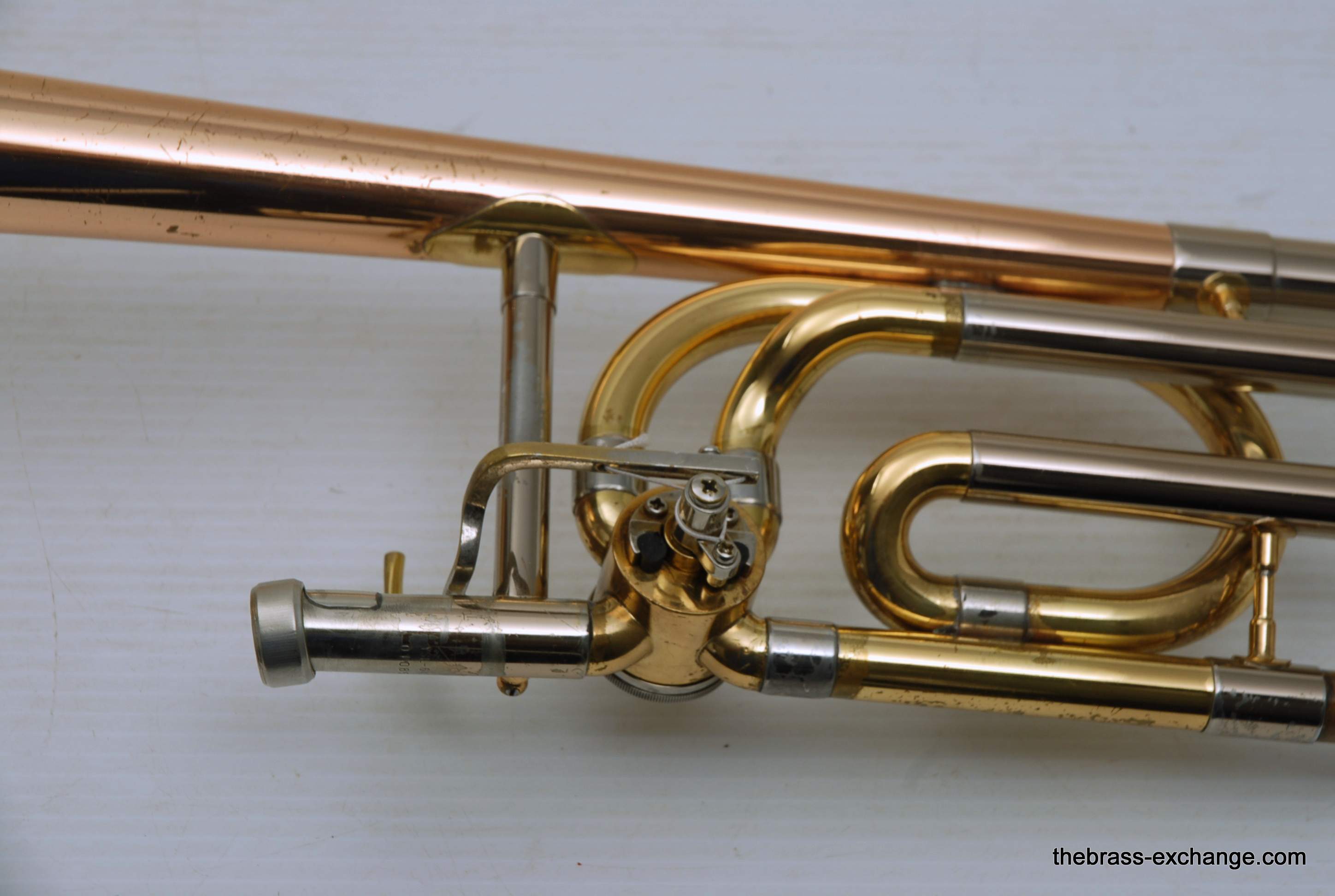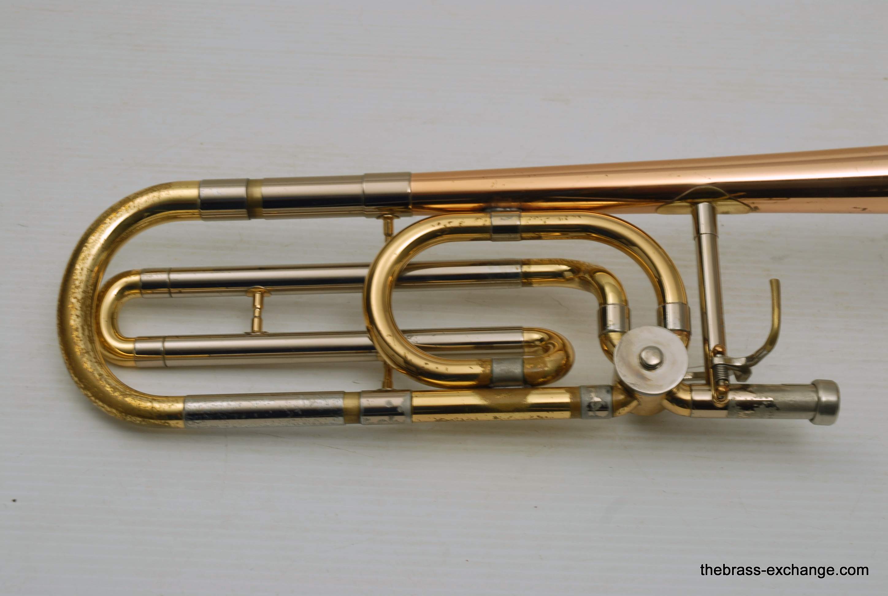 Yamaha YSL-643II Experienced Large Bore Tenor. This is the classic Yamaha model similar to the Conn 88H. Has the 8.5" rose brass bell and large bore .547 tenor handslide. This one has been played on quite a bit, it's mainly just lacquer wear. Everything else is good, rotor, handslide, although there is a patch brace on the slide grip area. Original case and mouthpiece included. Not many pro level tenors with .547 bore and f-attachment under $1000 in playable conditon these days. Would make a perfect first trigger horn for anyone looking at this price point. In-stock for immediate delivery.
