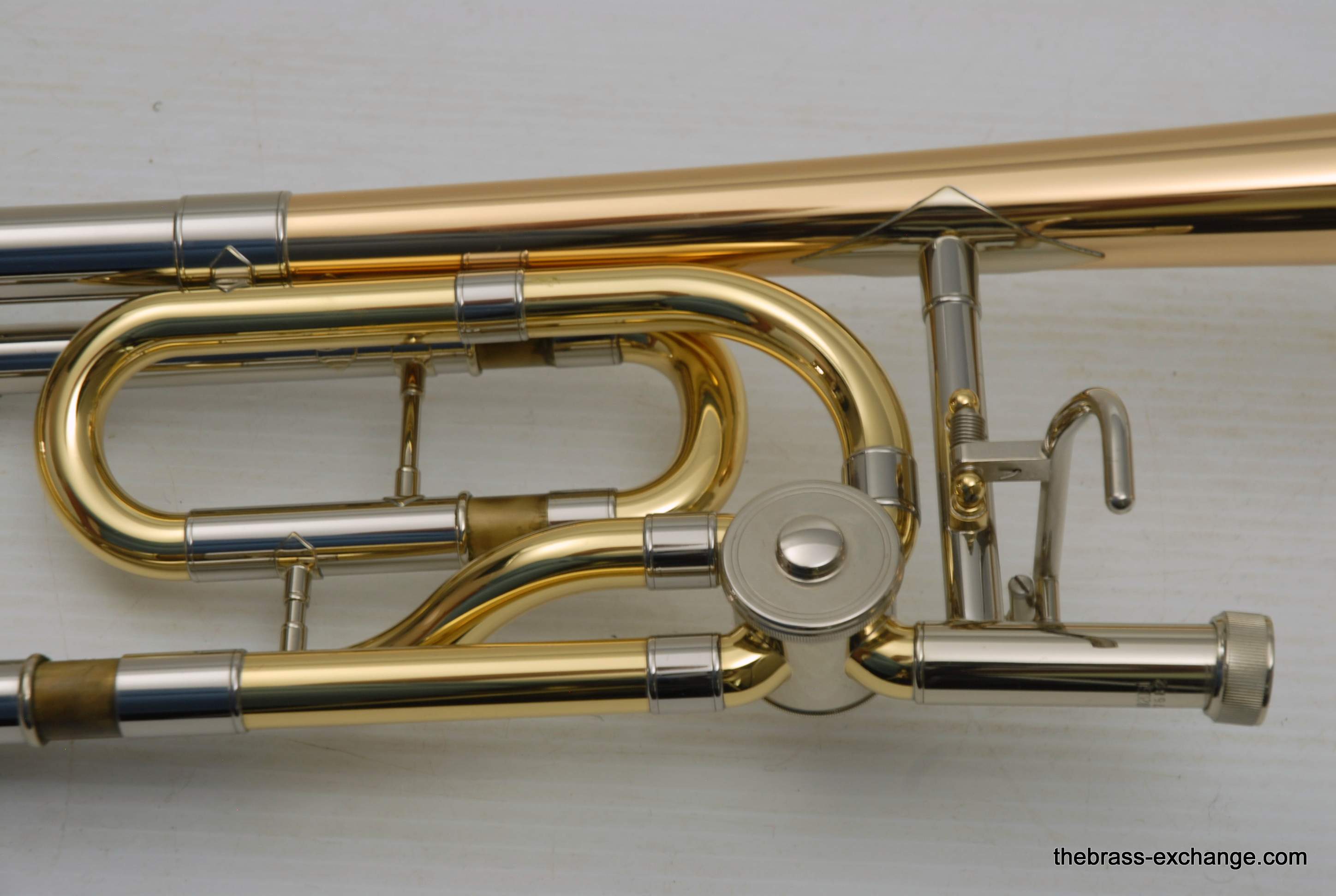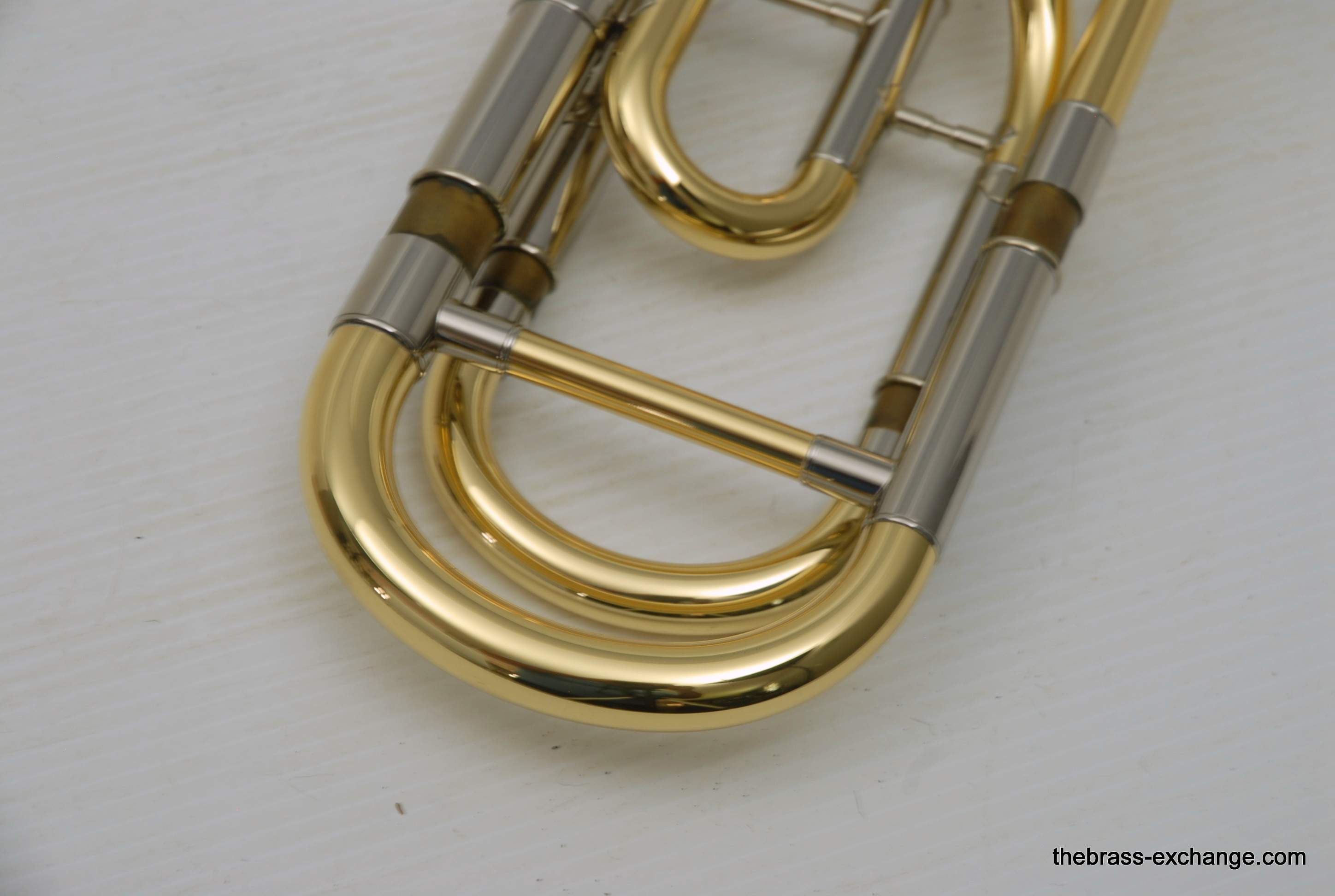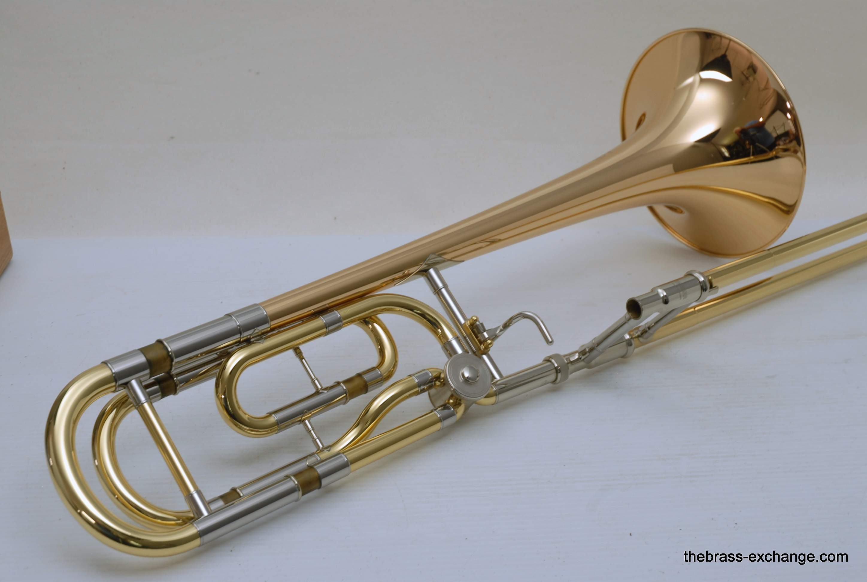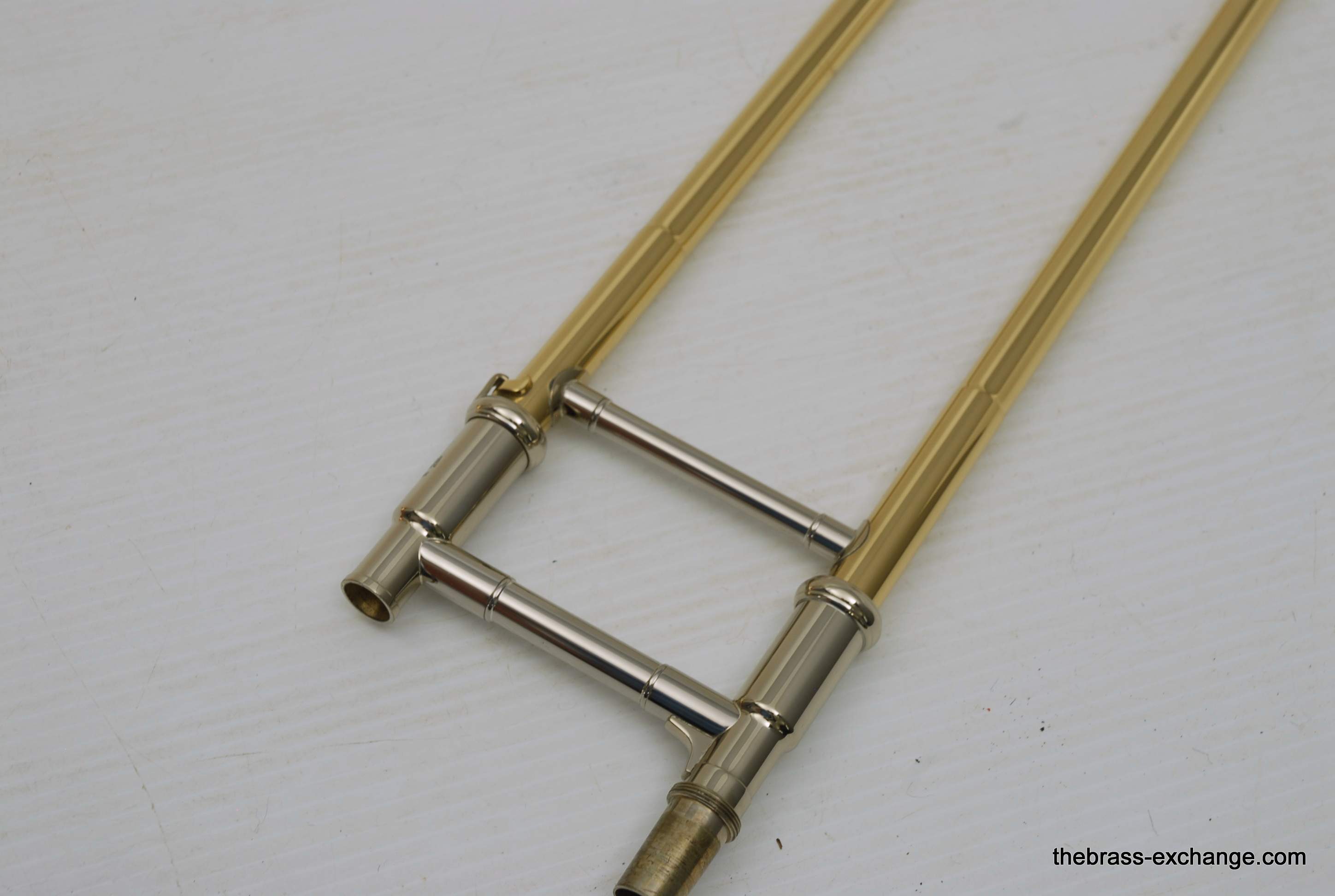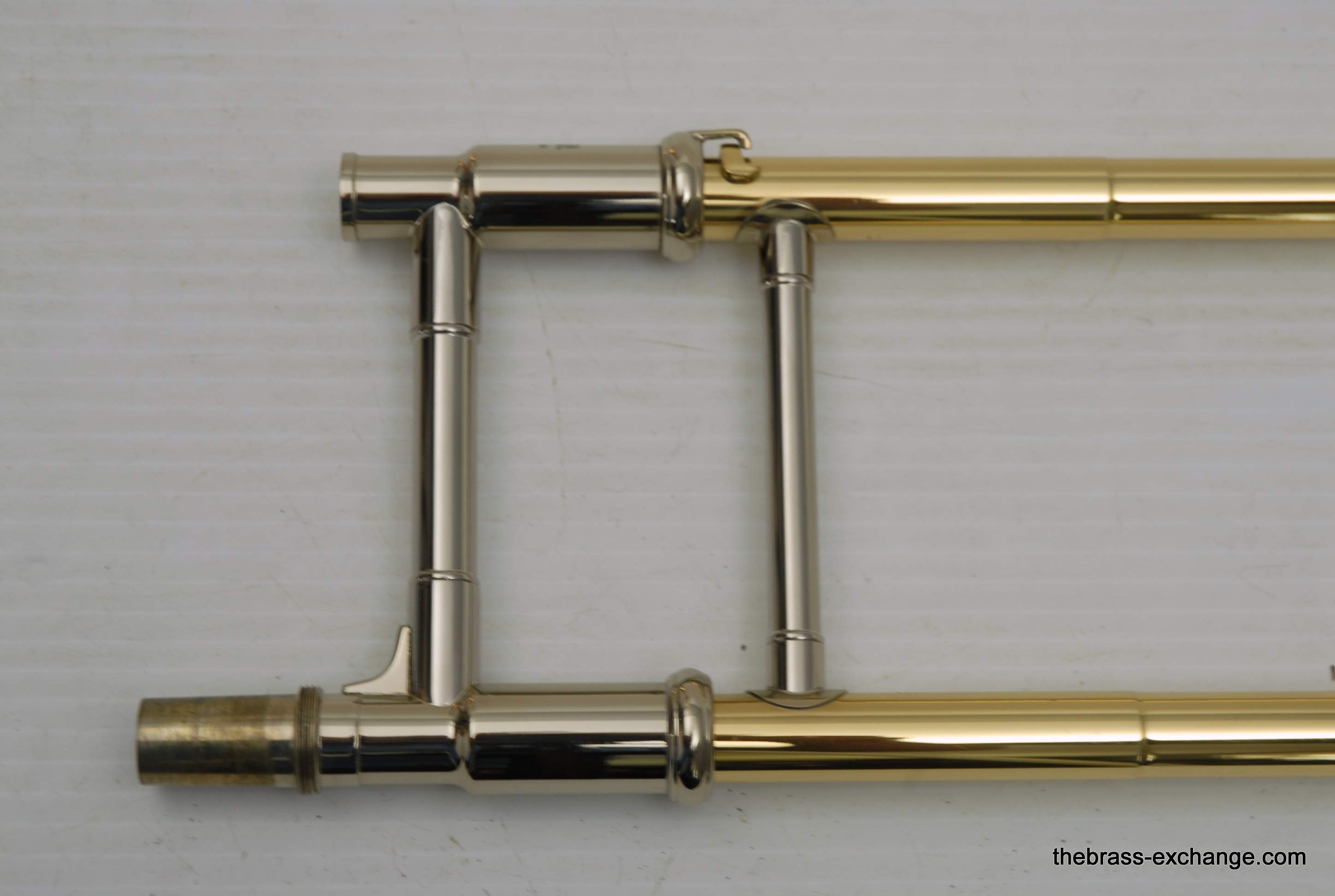 Yamaha YSL-820GD Very Mint Japan Only Model. Large bore tenor .547 bore with 8.5" gold brass bell, lightweight yellow brass handslide. This is a perfect condition Japan Only model from out trading partner in Japan. Has a lightweight gold brass bell. No previous damage or repairs. Single owner horn lightly played. Case and mouthpiece included. Would make an excellent first large bore trigger horn for any advancing player. In-stock for immediate delivery.
