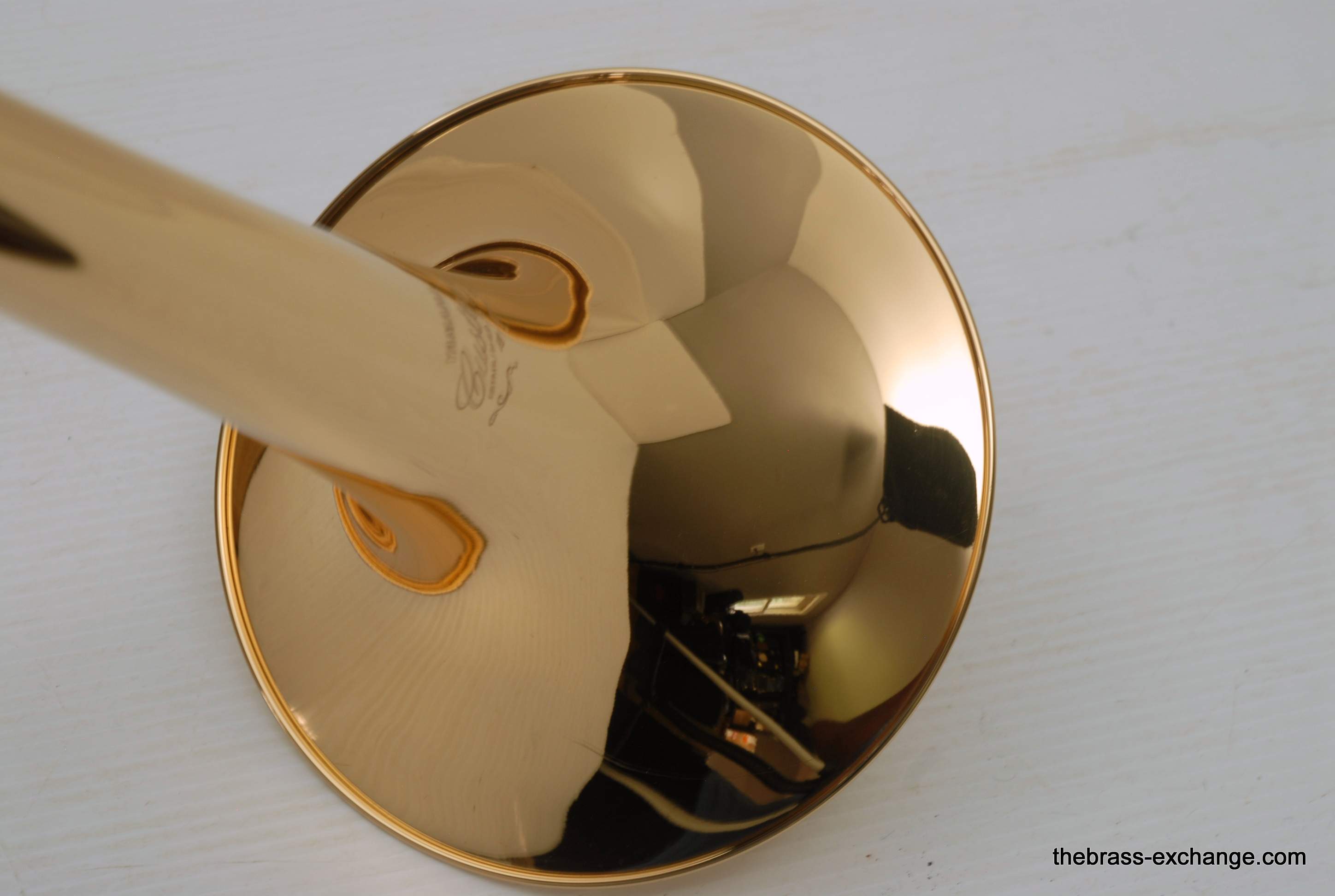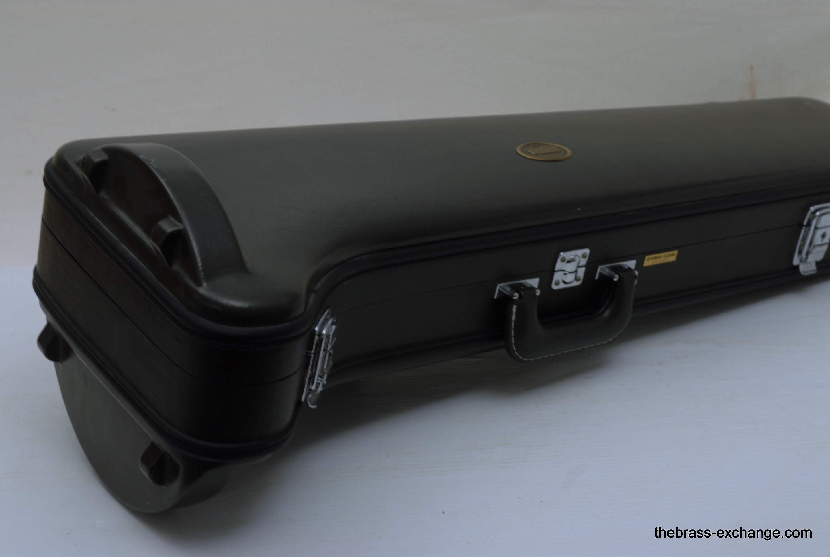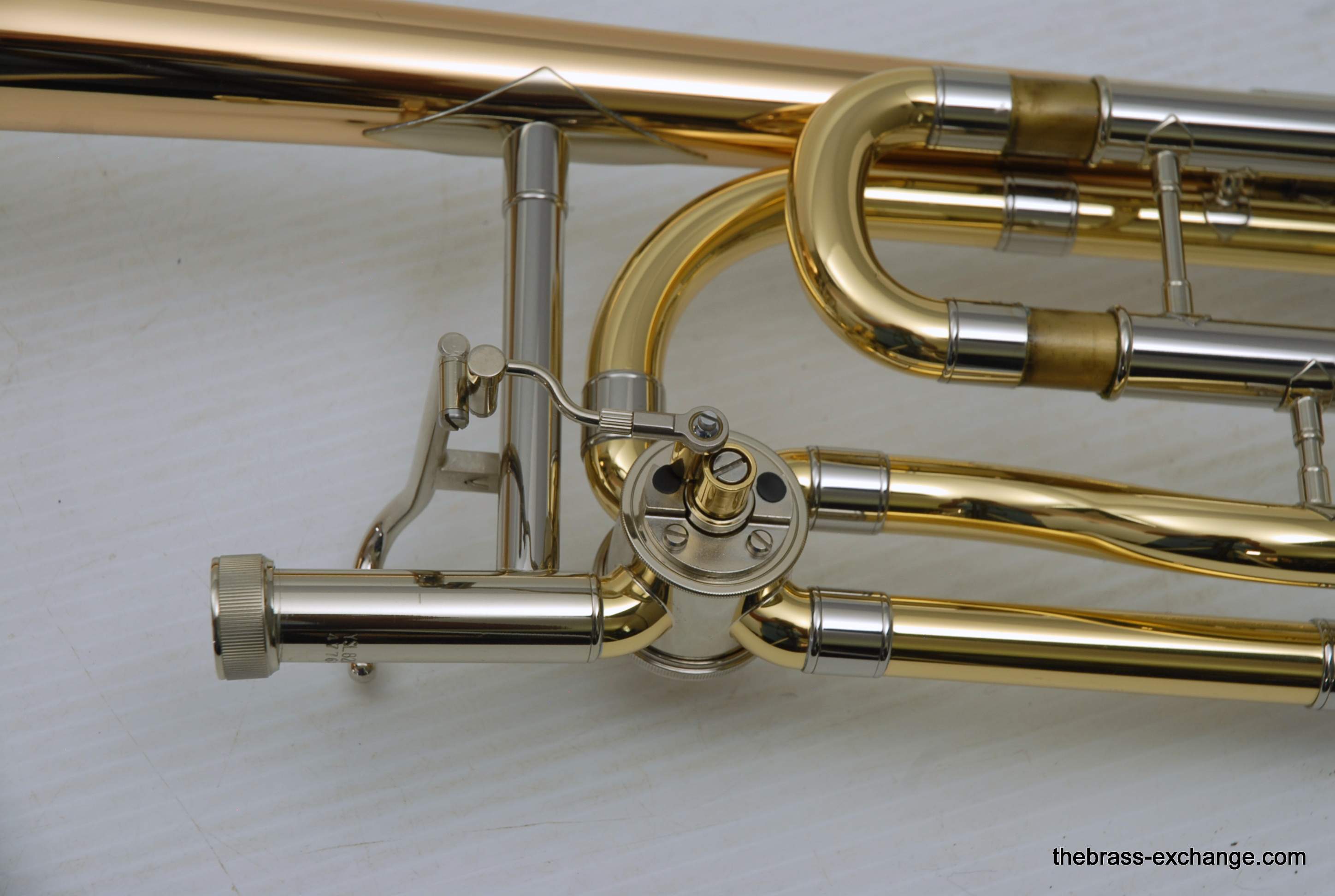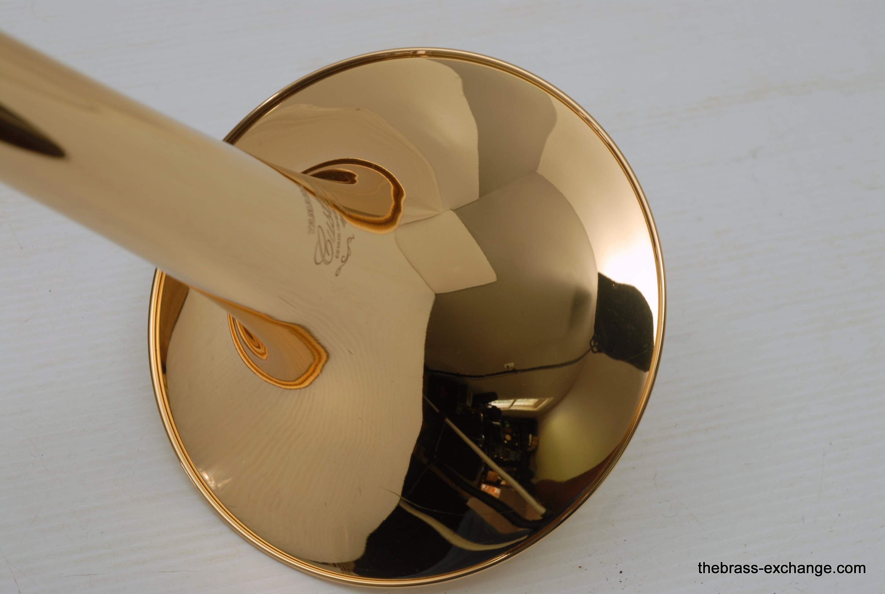 Yamaha YSL-820GD Very Mint Japan Only Model. Large bore tenor .547 bore with 8.5" gold brass bell, lightweight yellow brass handslide. This is a perfect condition Japan Only model from out trading partner in Japan. Has a lightweight gold brass bell. No previous damage or repairs. Single owner horn lightly played. Case and mouthpiece included. Would make an excellent first large bore trigger horn for any advancing player. In-stock for immediate delivery.