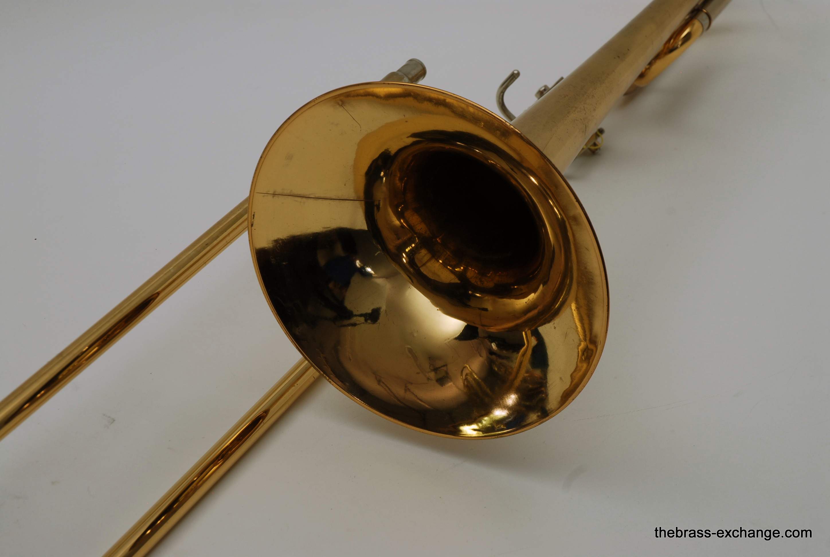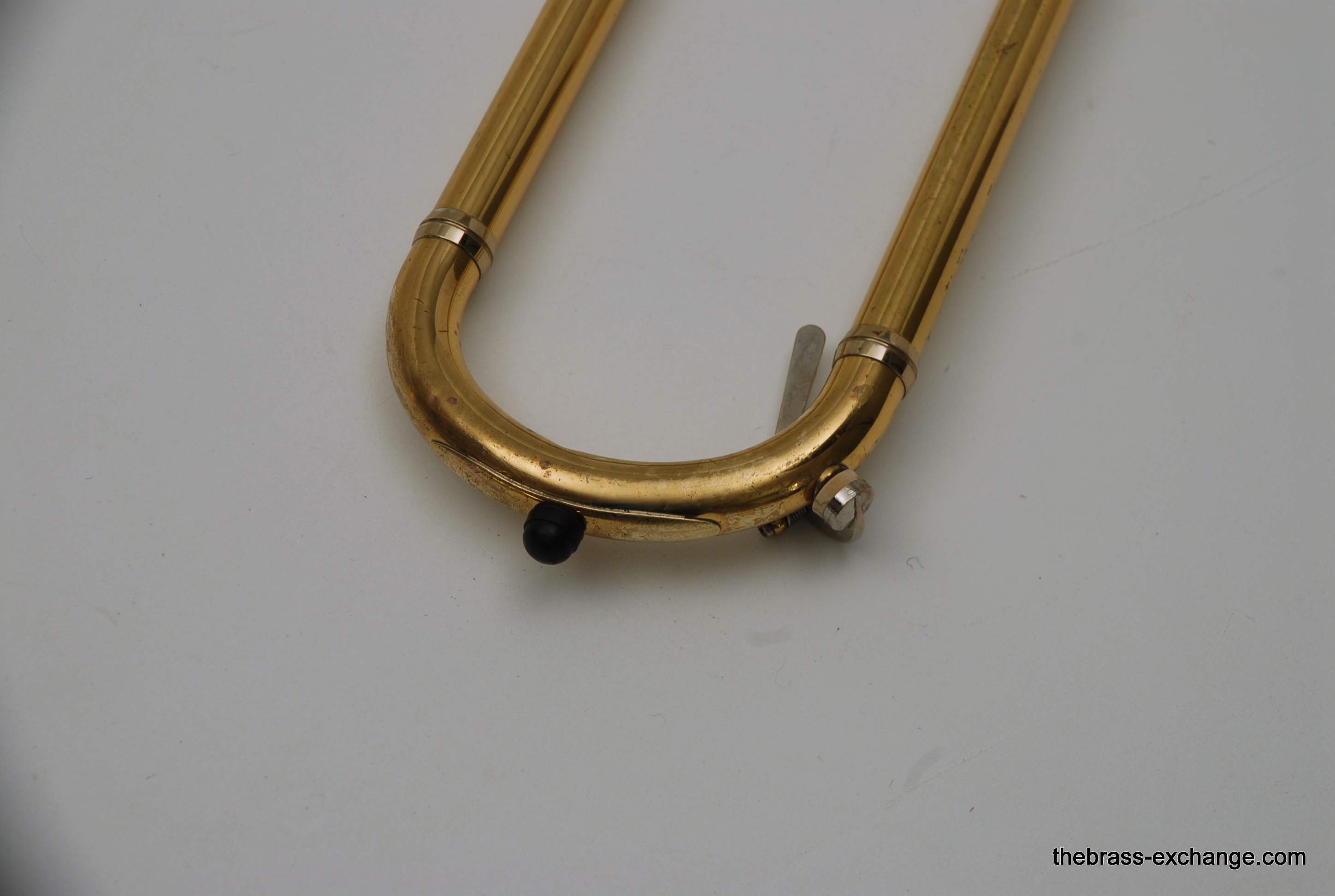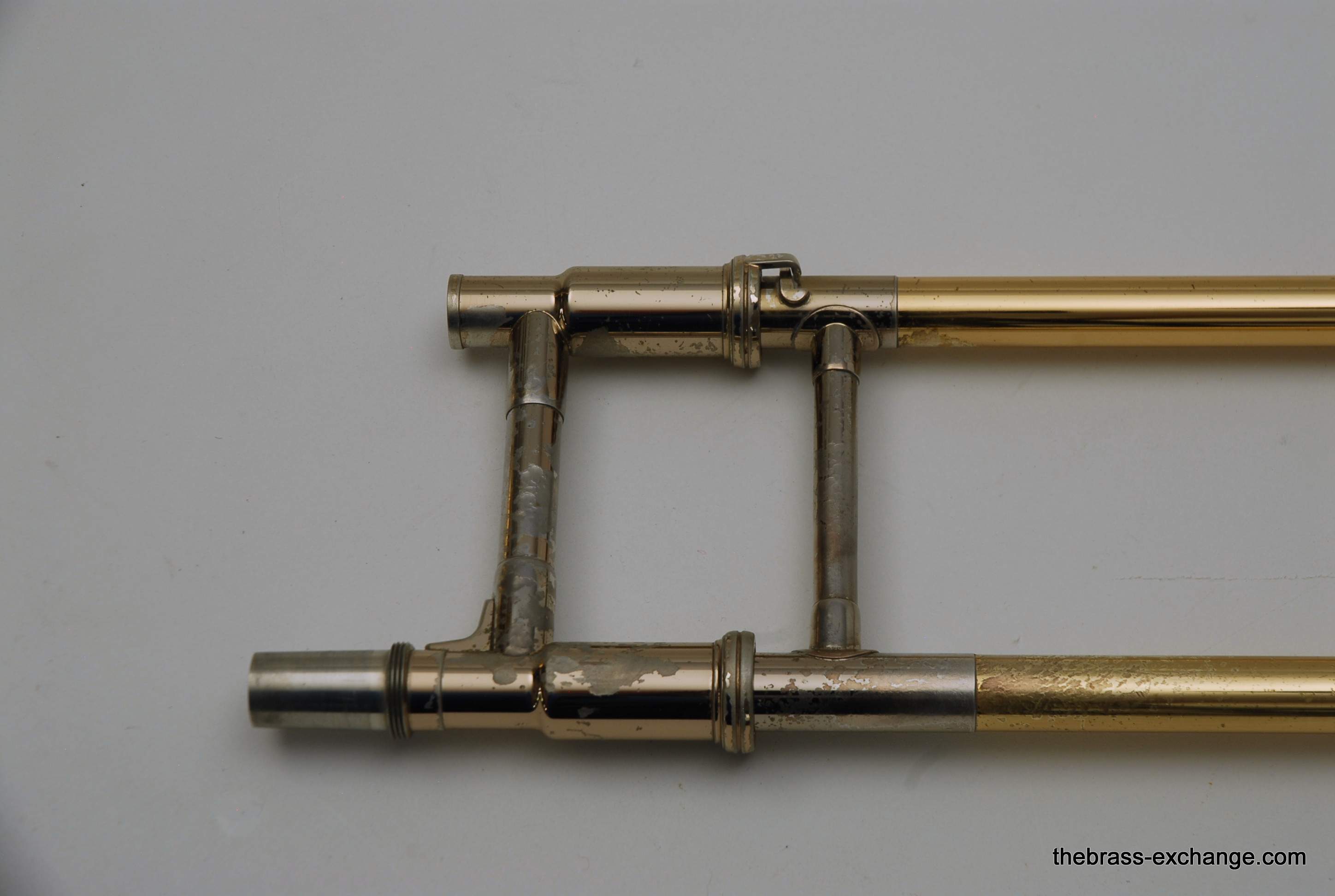 Although the instrument showed typical age-related lacquer wear on the slide grip and a few cosmetic spots, there were no structural issues or service needs affecting playability.