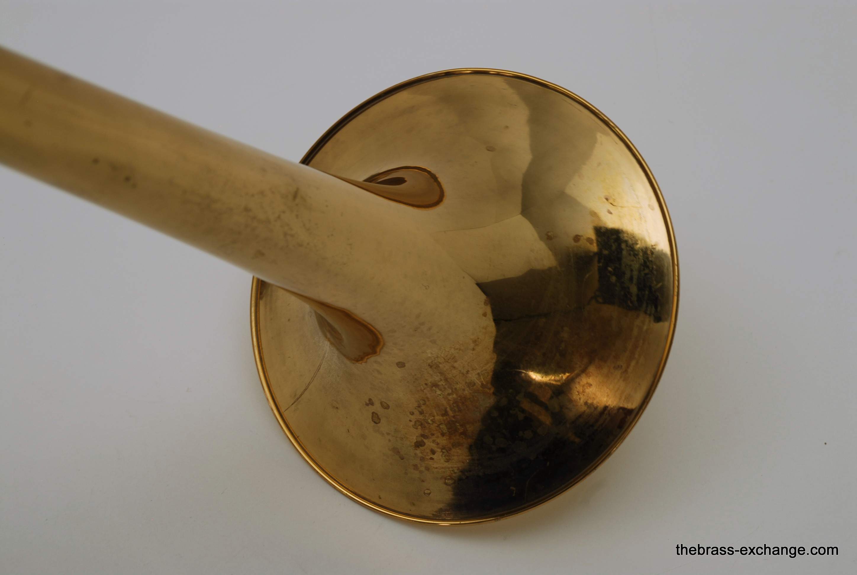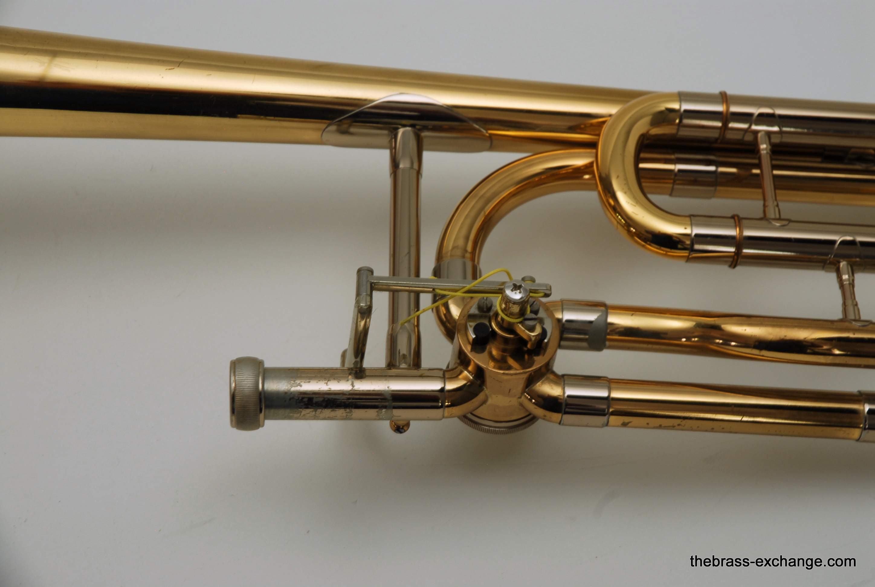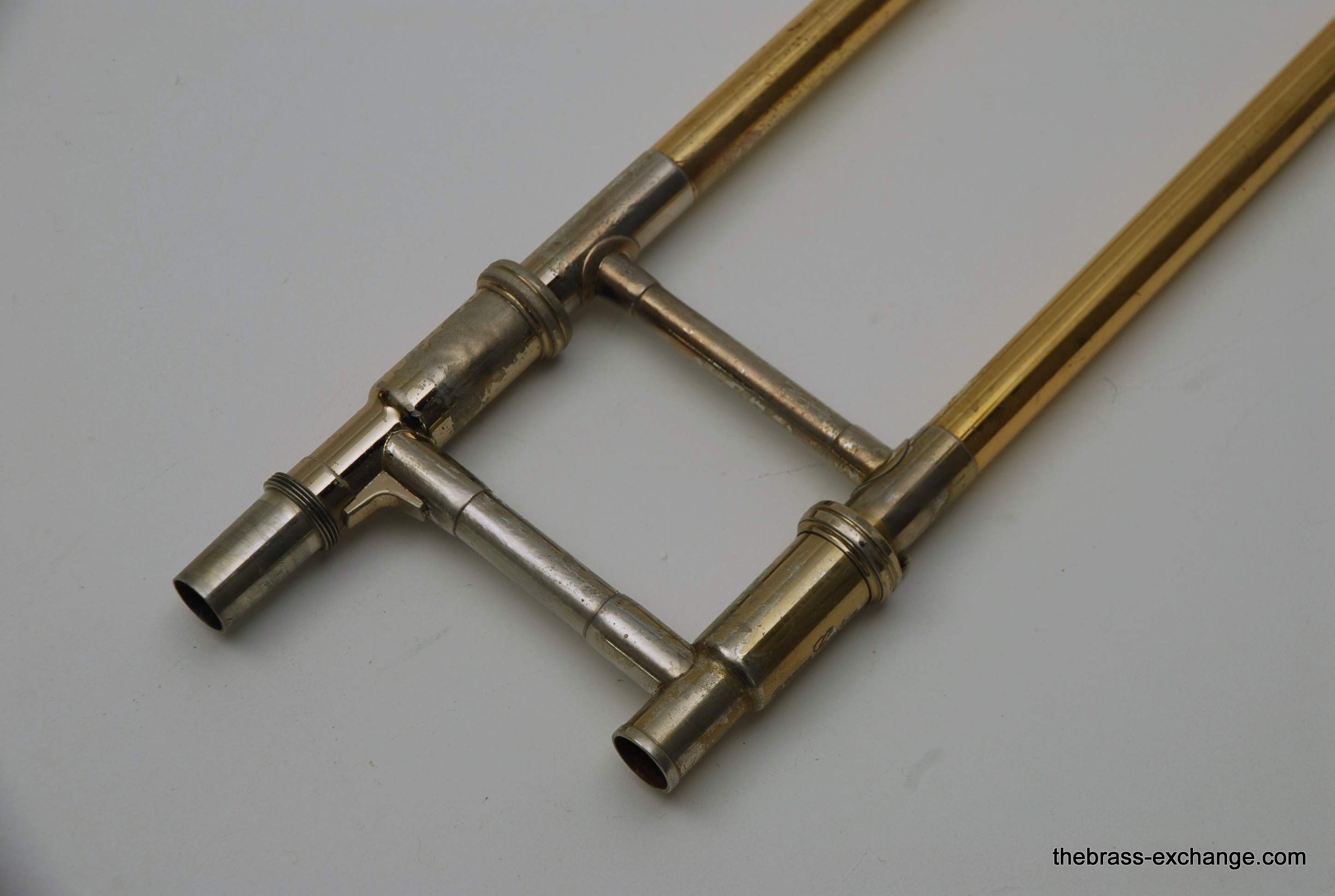 Although the instrument showed typical age-related lacquer wear on the slide grip and a few cosmetic spots, there were no structural issues or service needs affecting playability.