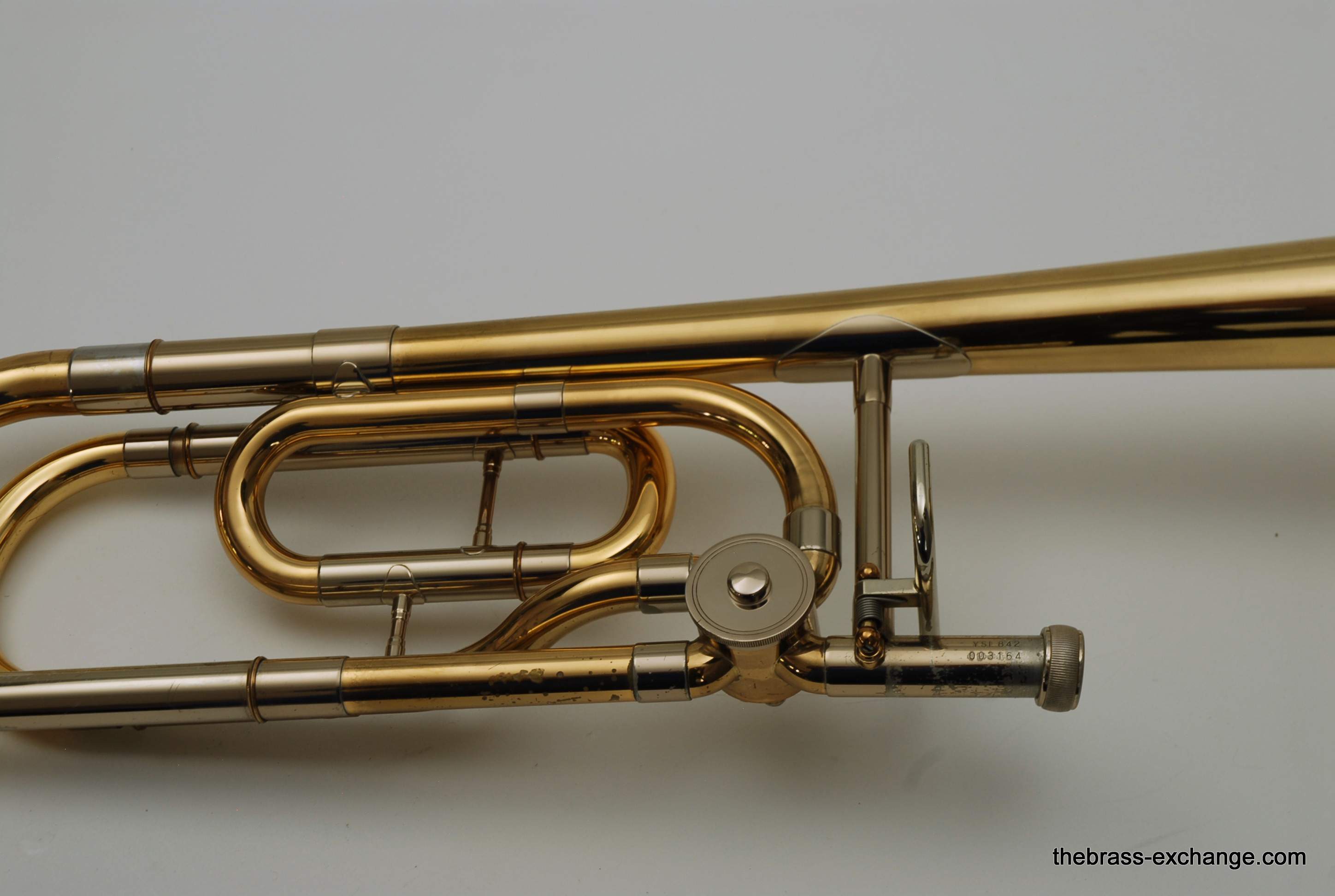 This Yamaha YSL-842 large-bore tenor trombone (SN 003164) dates to the 1980s — the pre-Xeno era of Yamaha professional trombones.