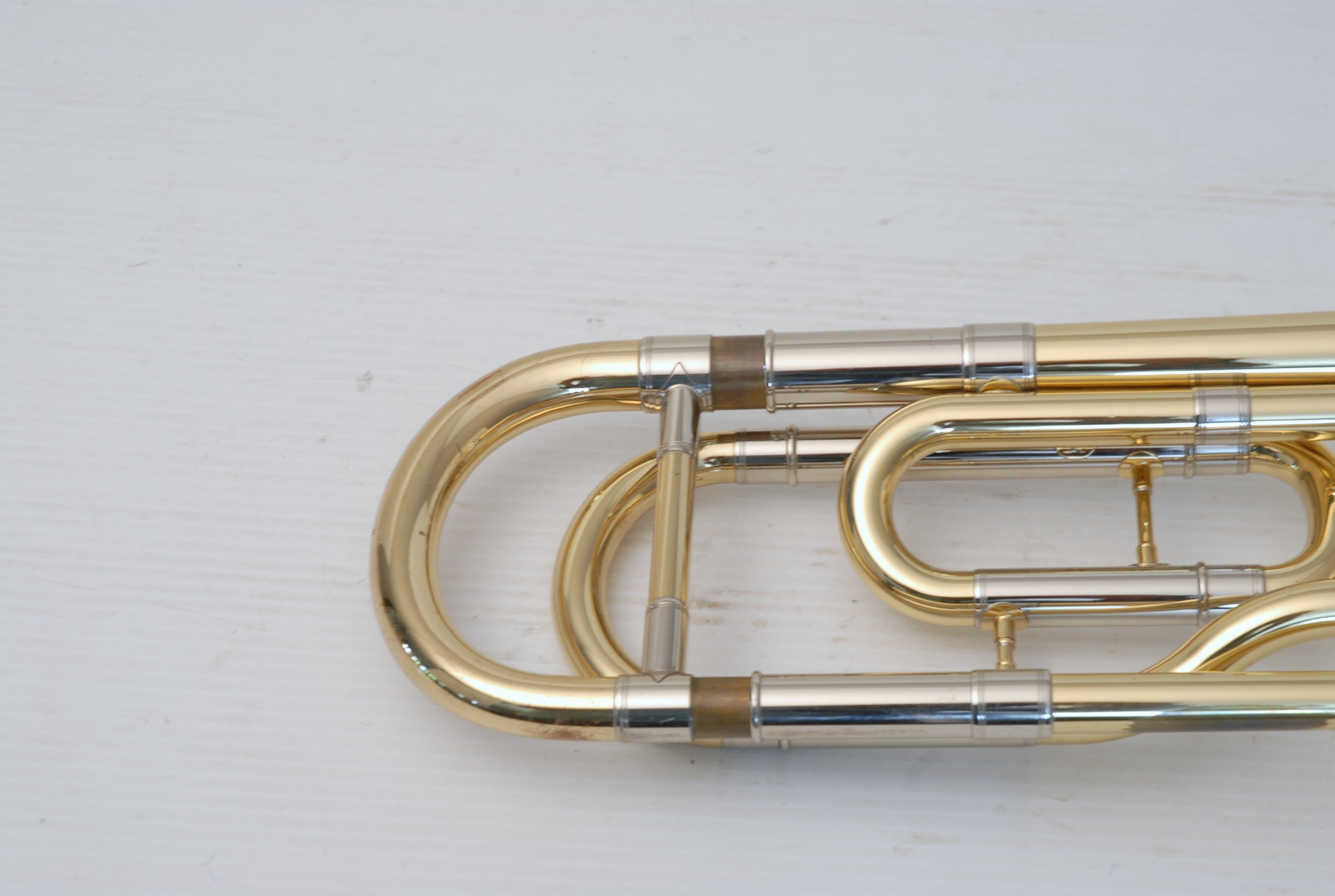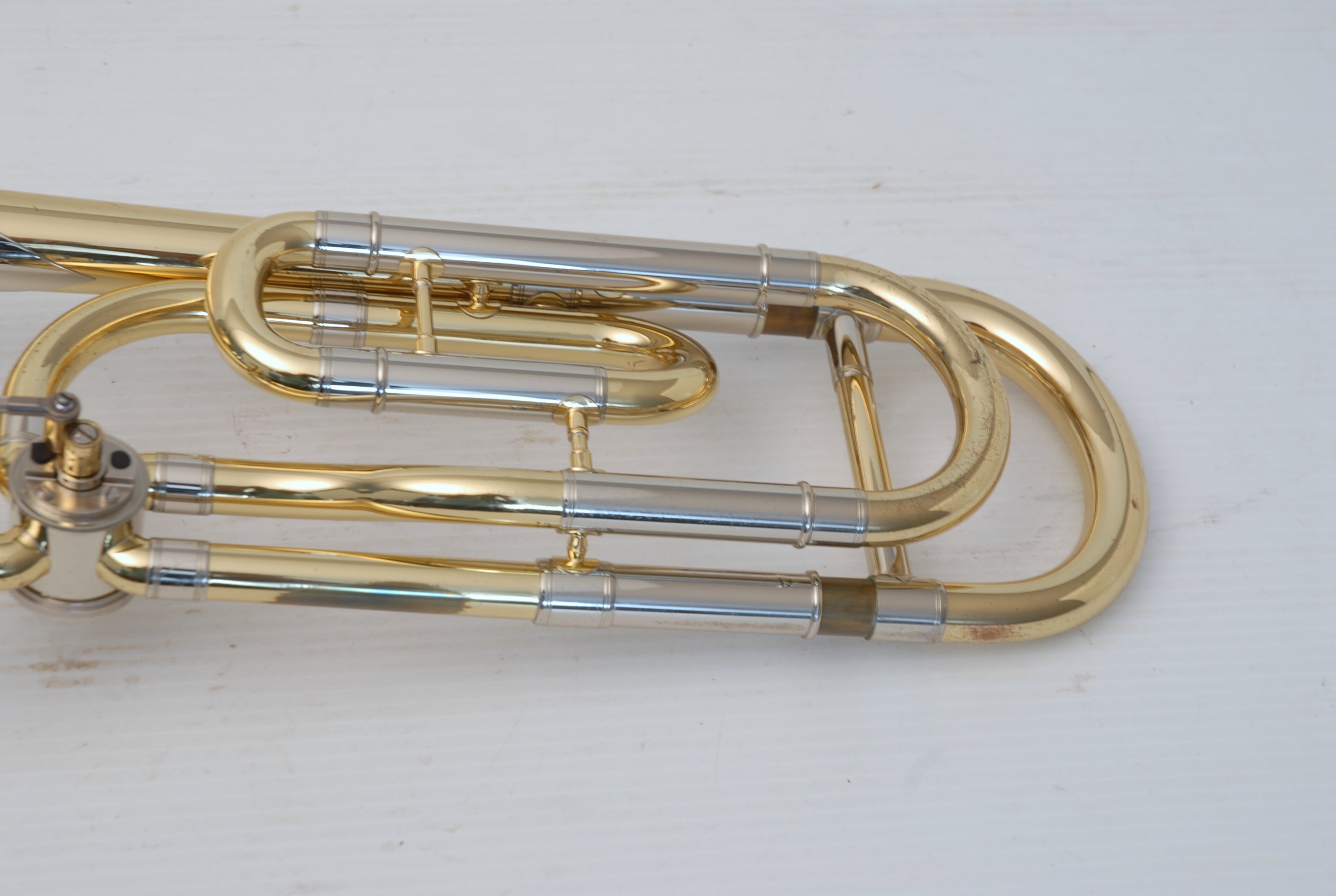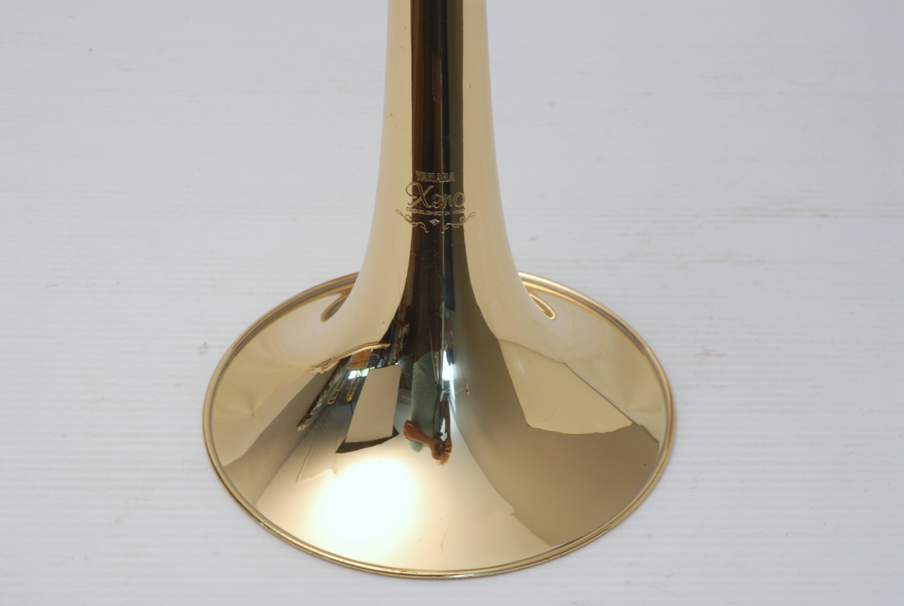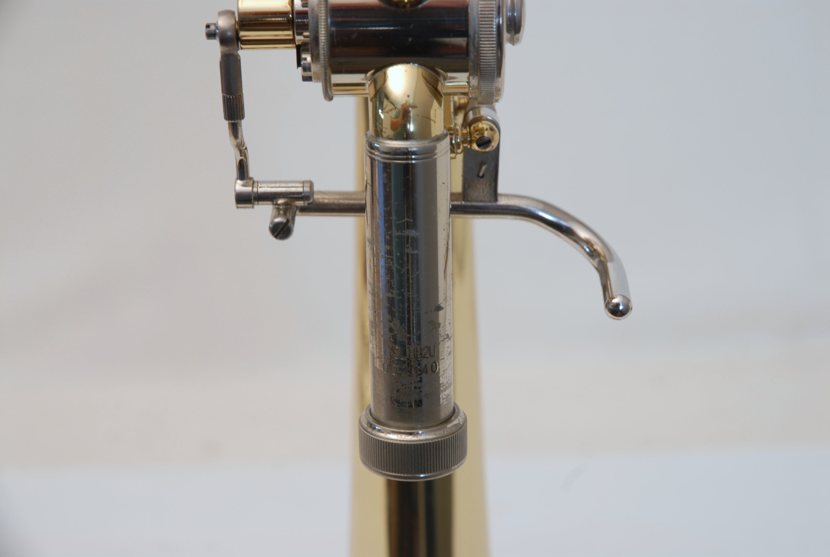 Yamaha YSL-882U Large Bore Tenor, Traditional Wrap.  This is a model only available in Japan.  Has the 882 Xeno 8.5" yellow brass bell, standard rotor, and light weight nickel silver .547 handslide.  Is in very good condition and plays perfectly.  Handslide is very straight and smooth.  No additional service needed to improve playability.  Comes with Yamaha Xeno flight case and mouthpiece.  Would make an excellent choice for an advancing student looking for first F-attachment horn.