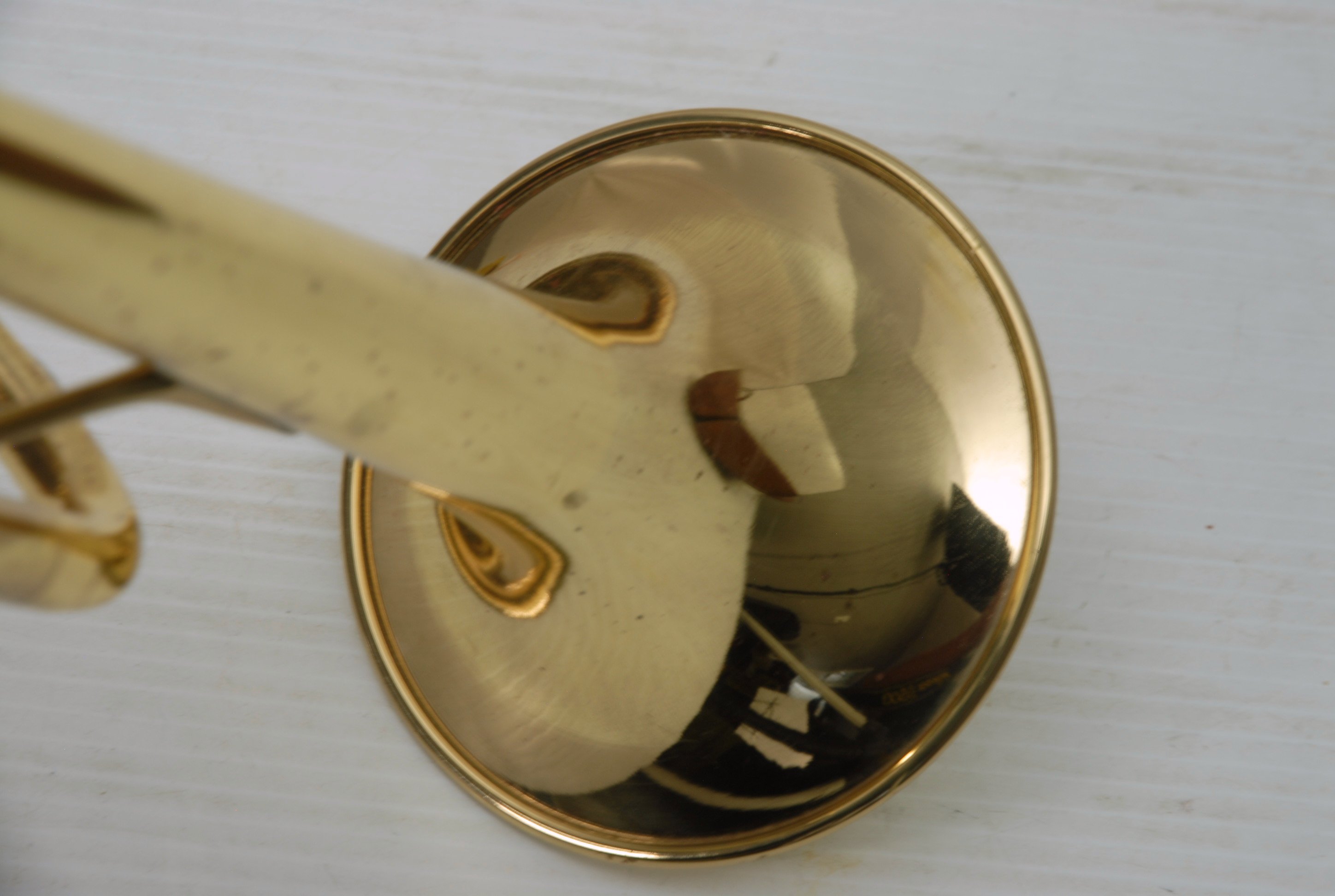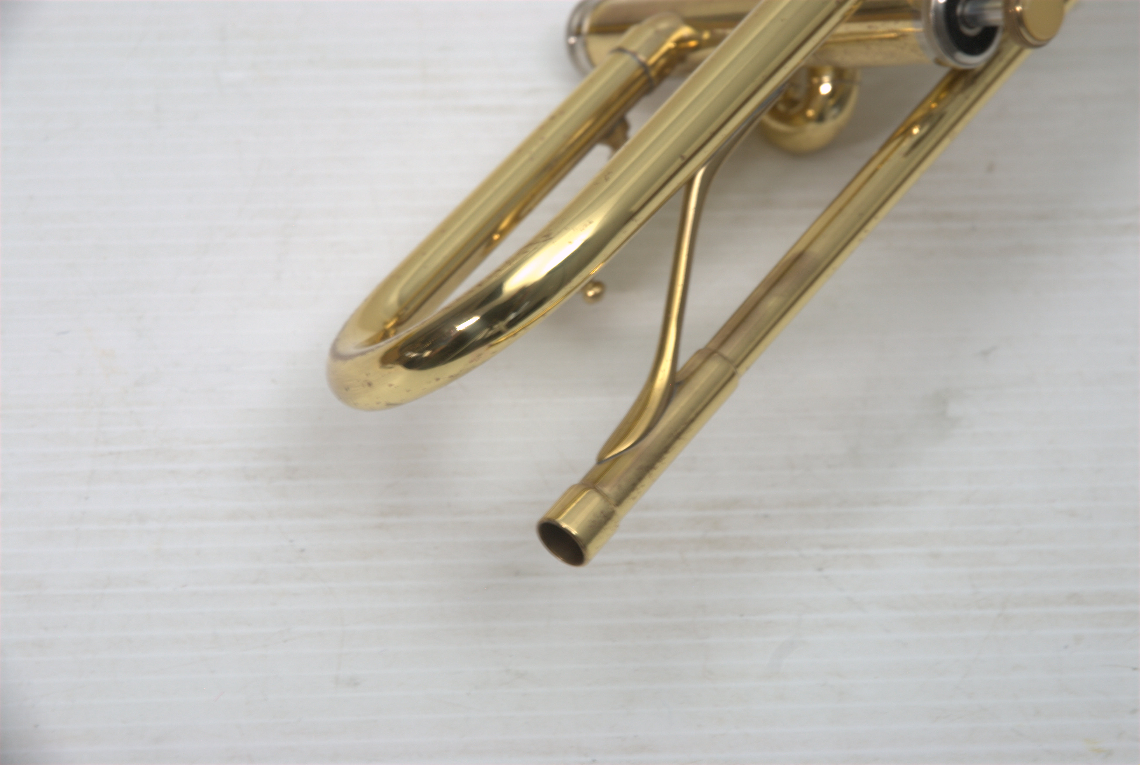 Yamaha YTR-233 Bb Trumpet with Vintage Leather Hard Shell case. This is a vintage trumpet that has had full shop service, chemical bath, pads, felts, ect. No service needs to improve playability. Some lacquer wear. Excellent valve action. Would make an excellent first trumpet for a new student or perhaps a come back player looking for something that doesn't need shop work. Mouthpiece not included.