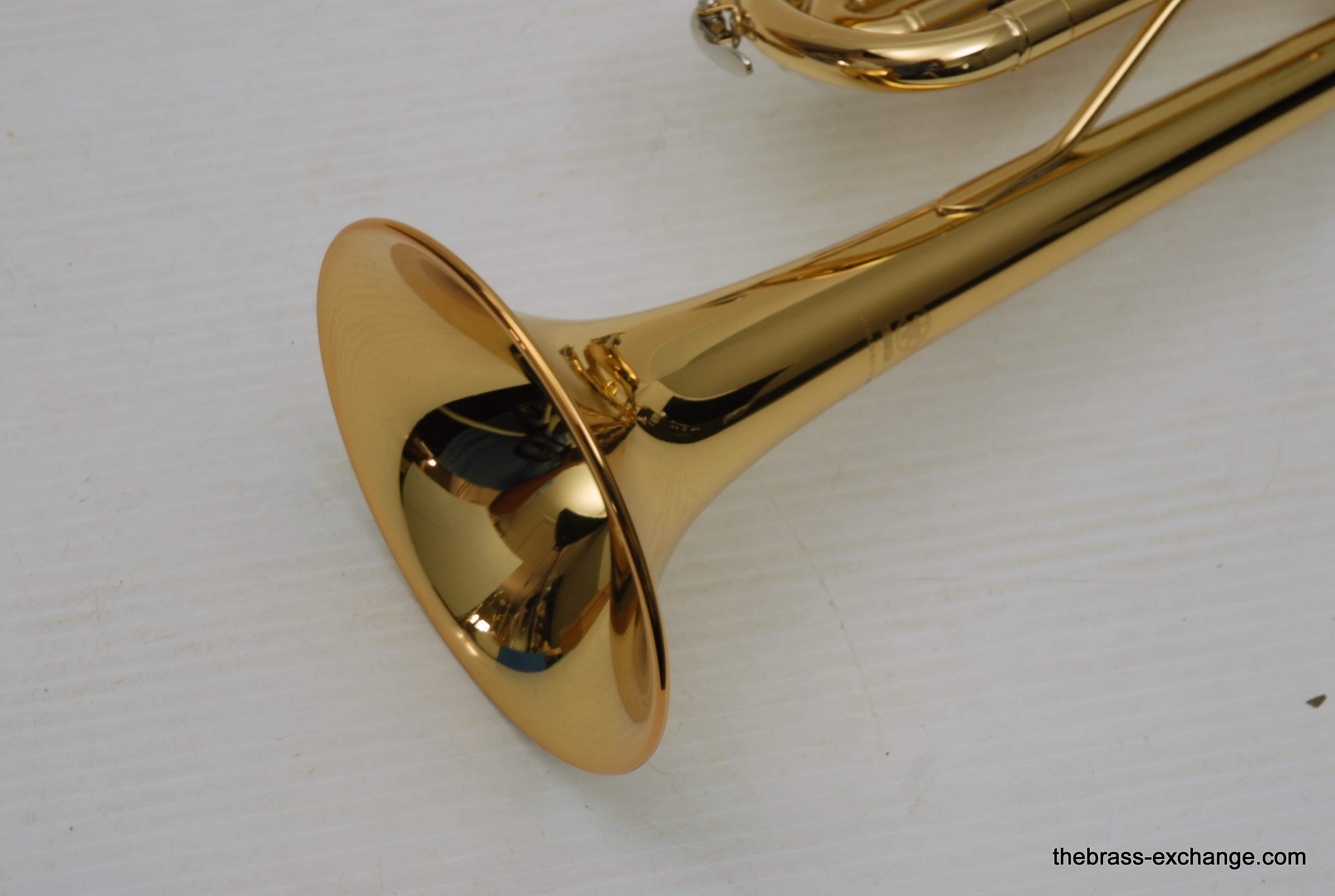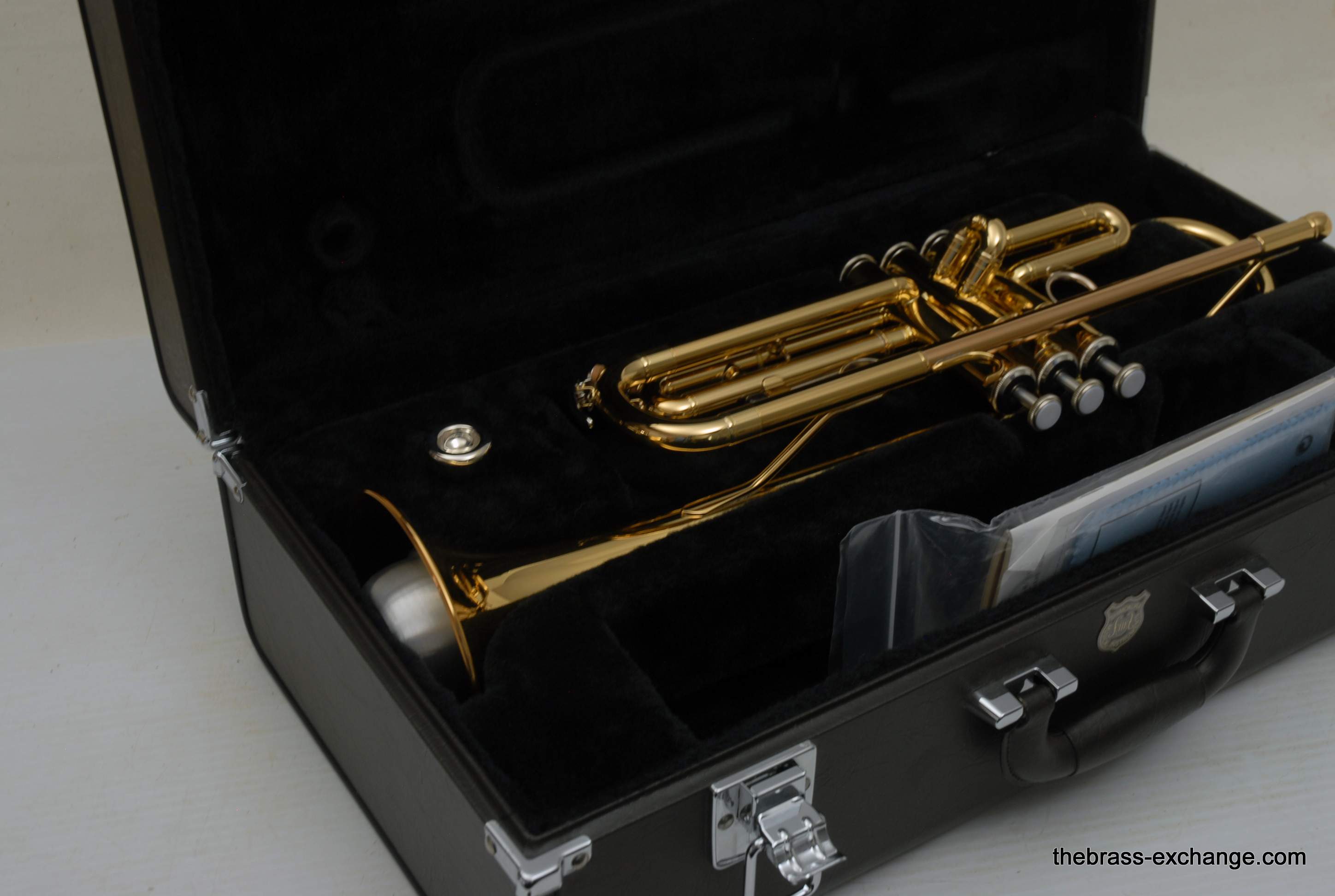 This pre-owned example was barely used and came with all original accessories, including a factory case, mouthpiece, and practice mute. It showed no signs of damage or repair and was in excellent playing condition, making it indistinguishable from a new instrument in performance.